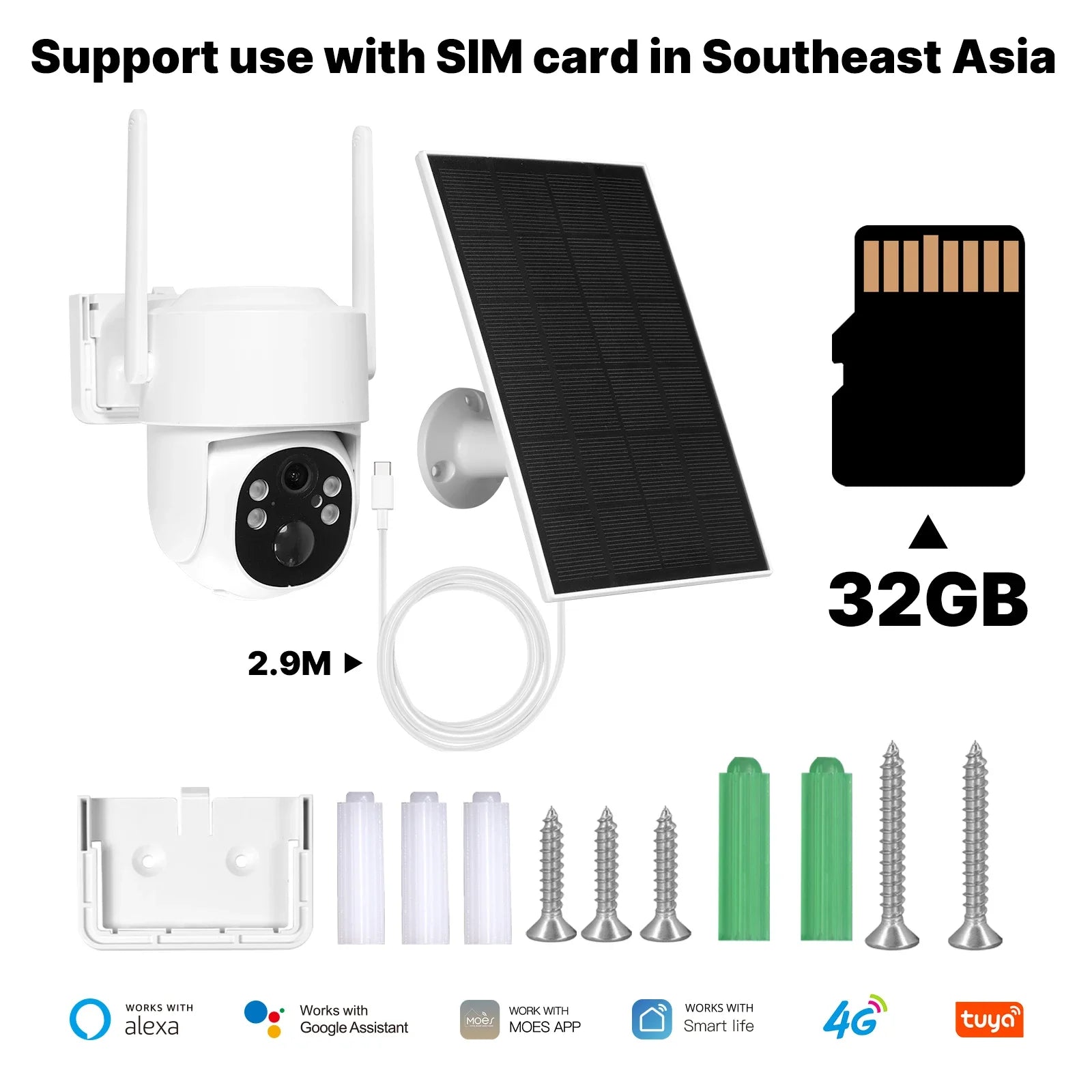 Moes Tuya 4G Wifi 4MP Surveillance Smart Security Camera Solar Charging Ip65