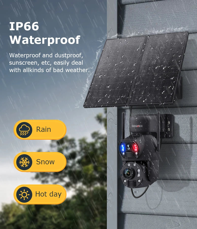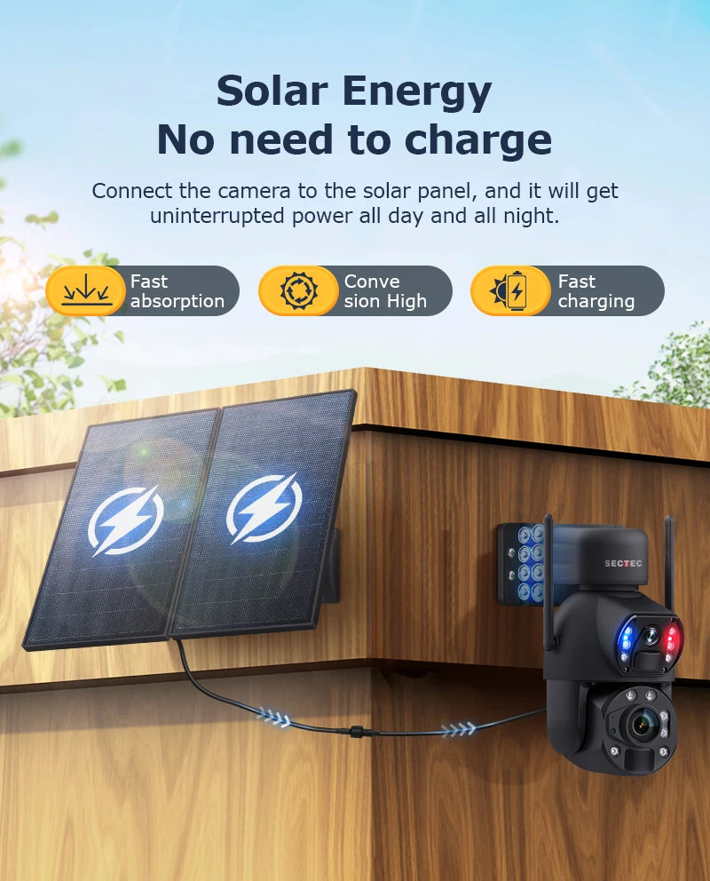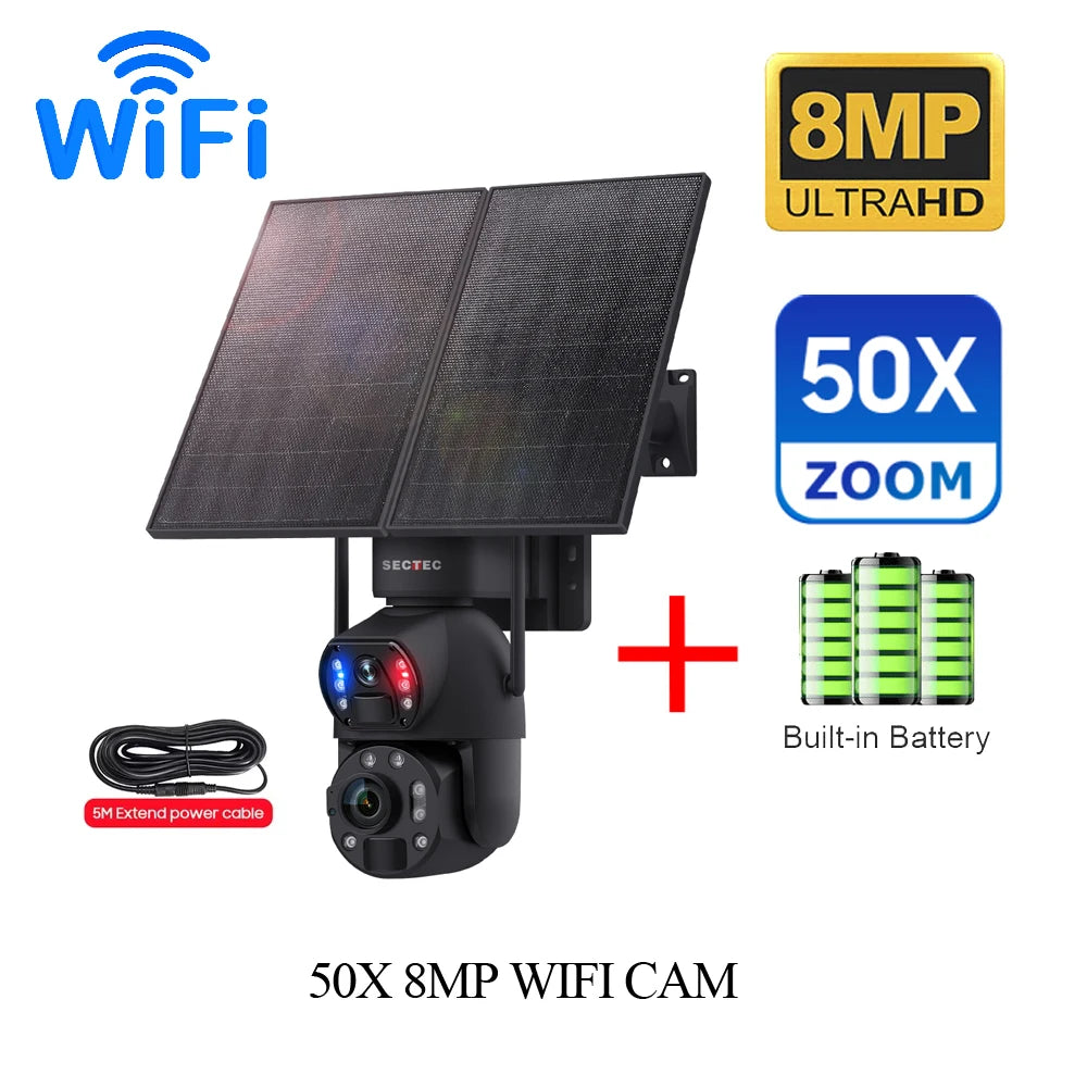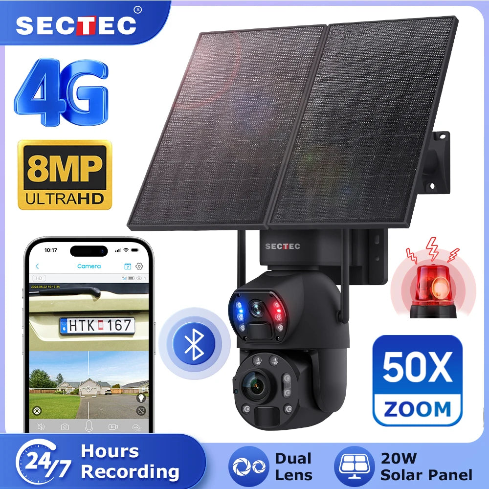 Sectec 50X Zoom 20W Solar Battery 8MP Camera Red Blue Alarm Floodlight PTZ Ca...