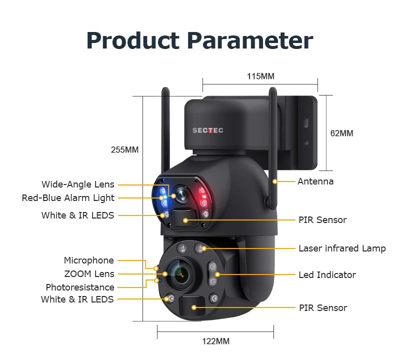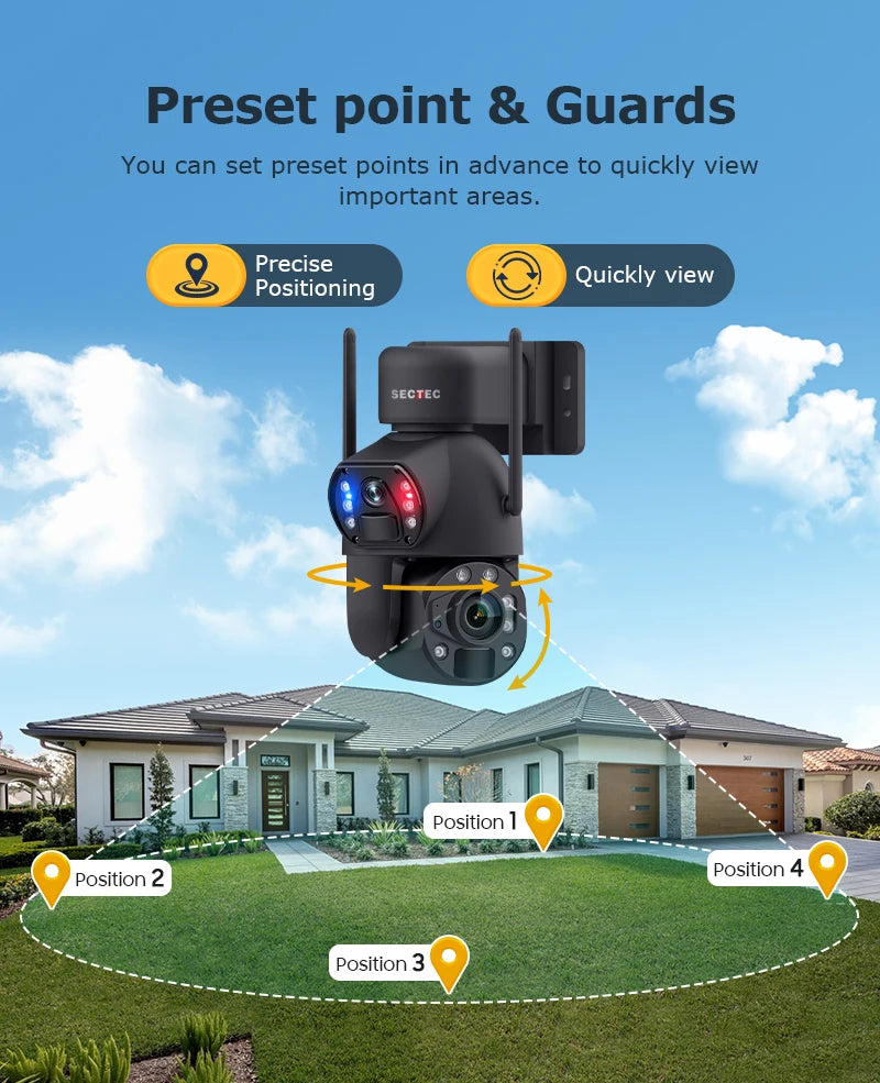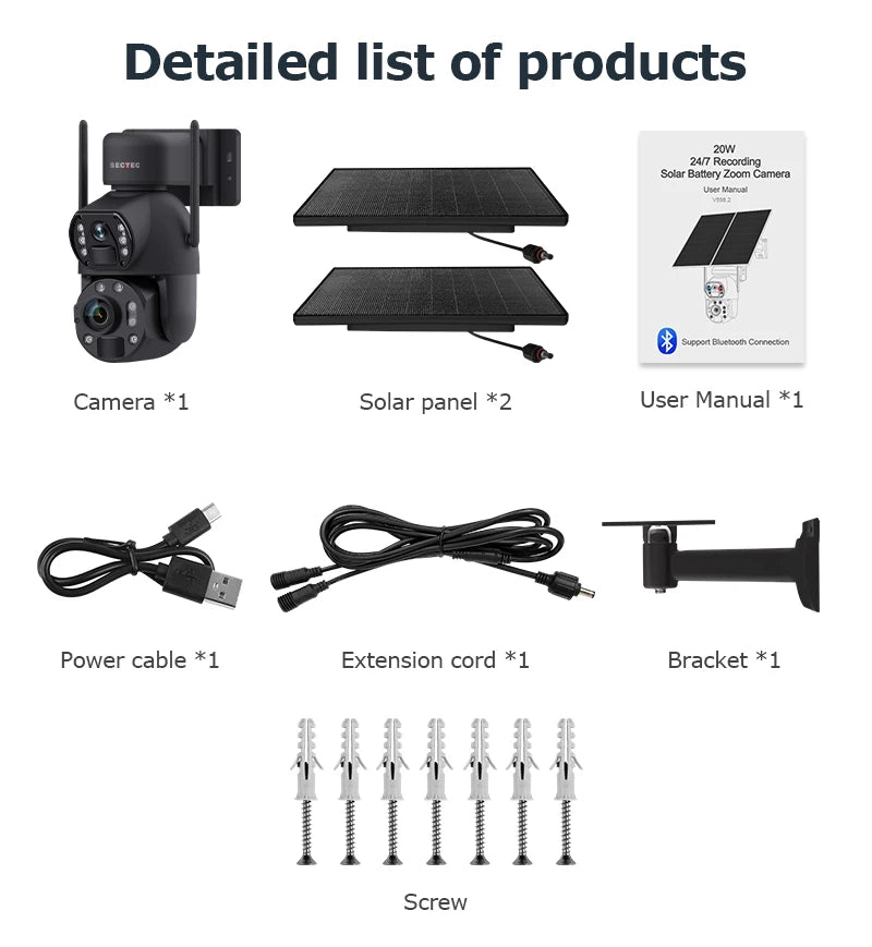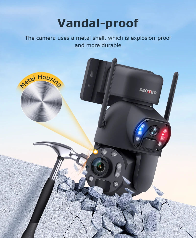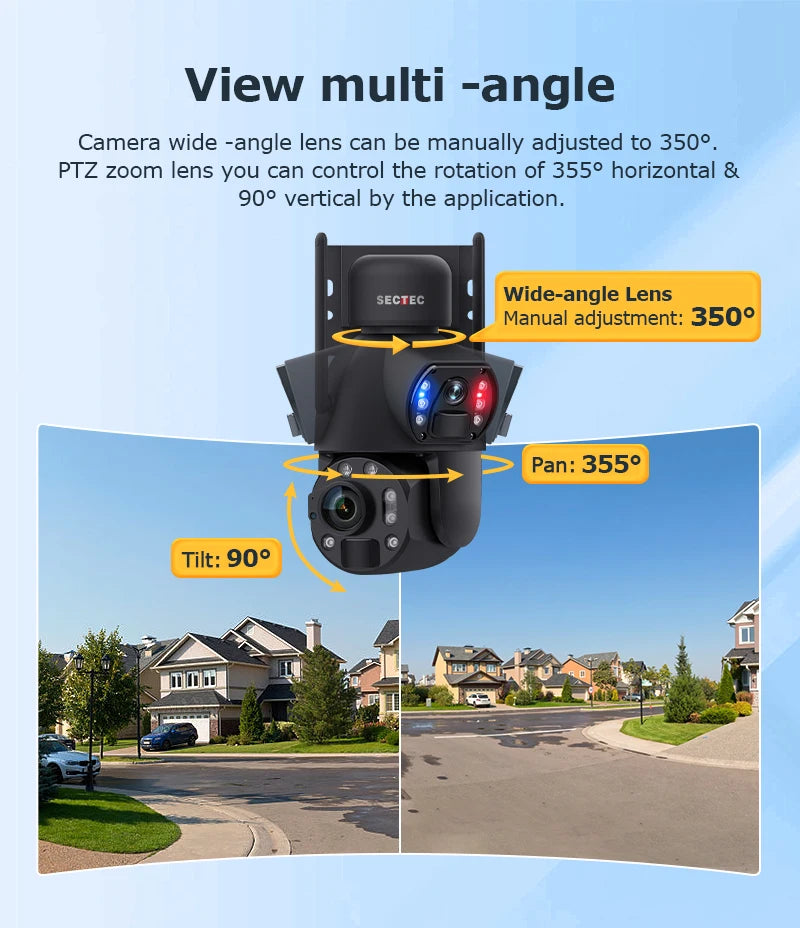Sectec 50X Zoom 20W Solar Battery 8MP Camera Red Blue Alarm Floodlight PTZ Ca...