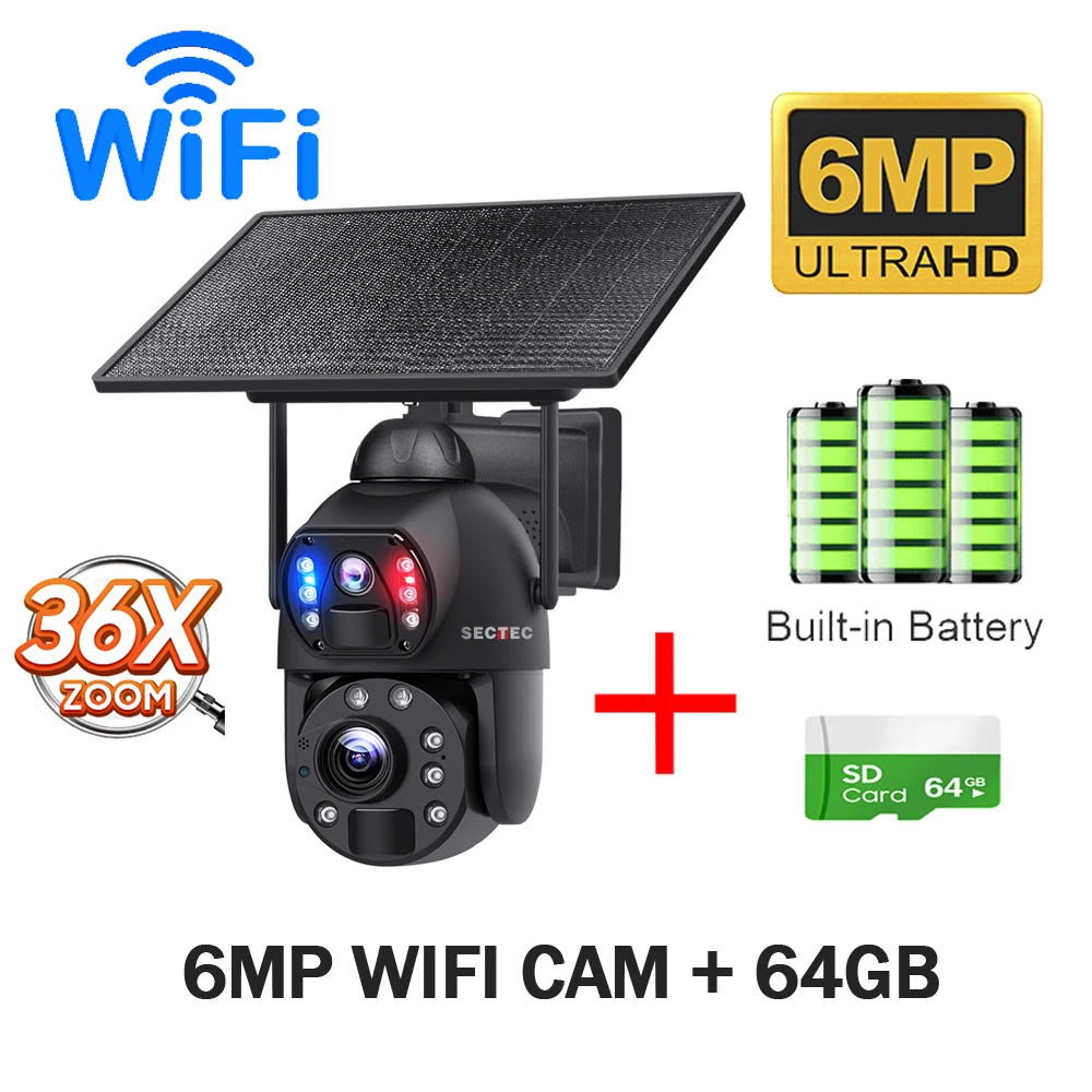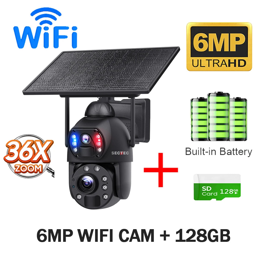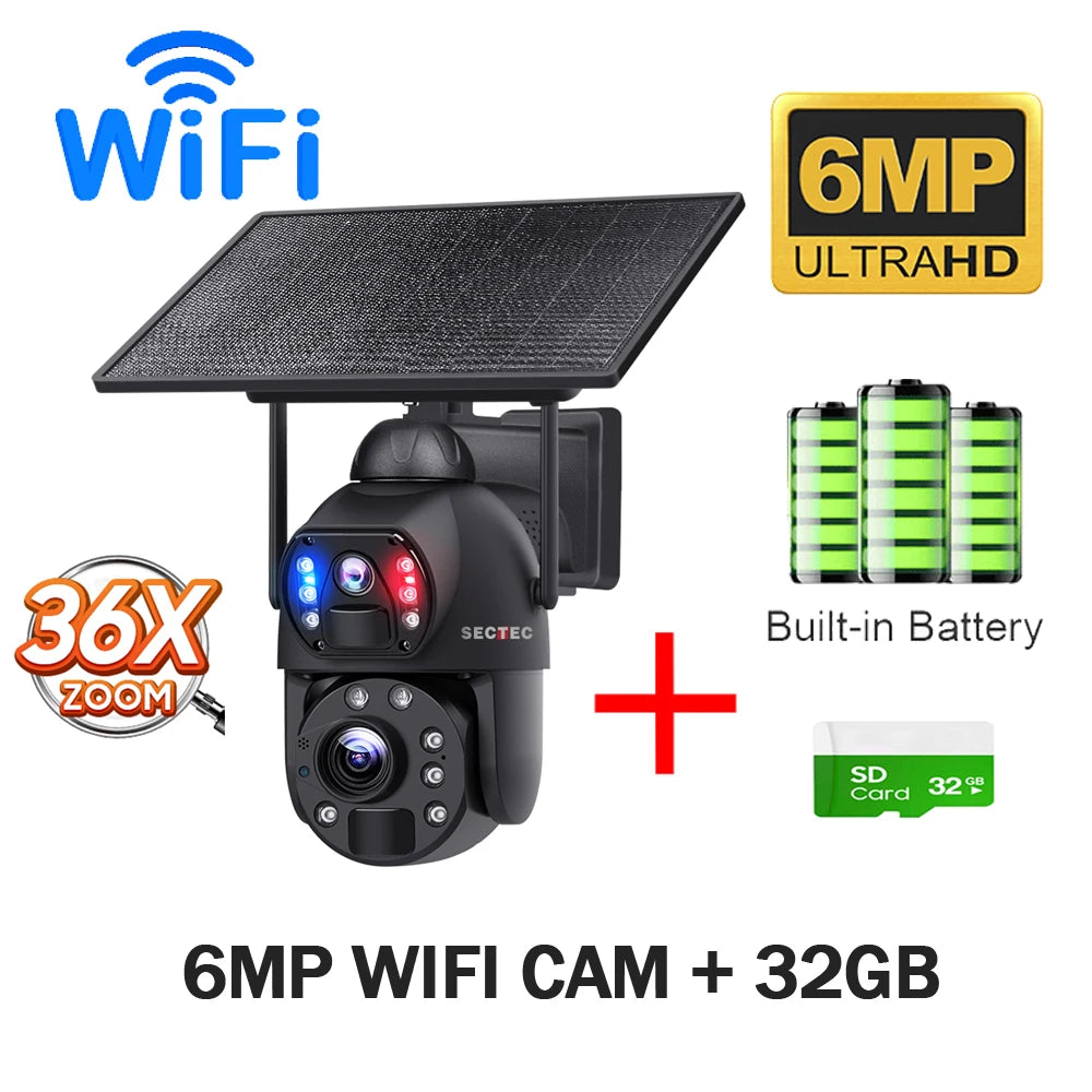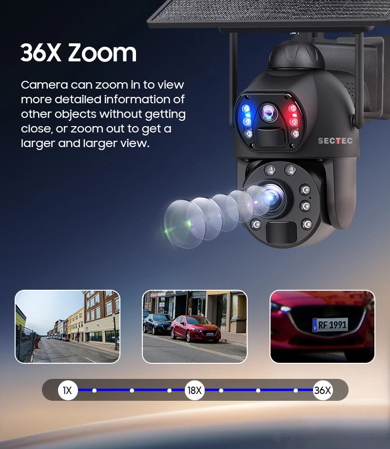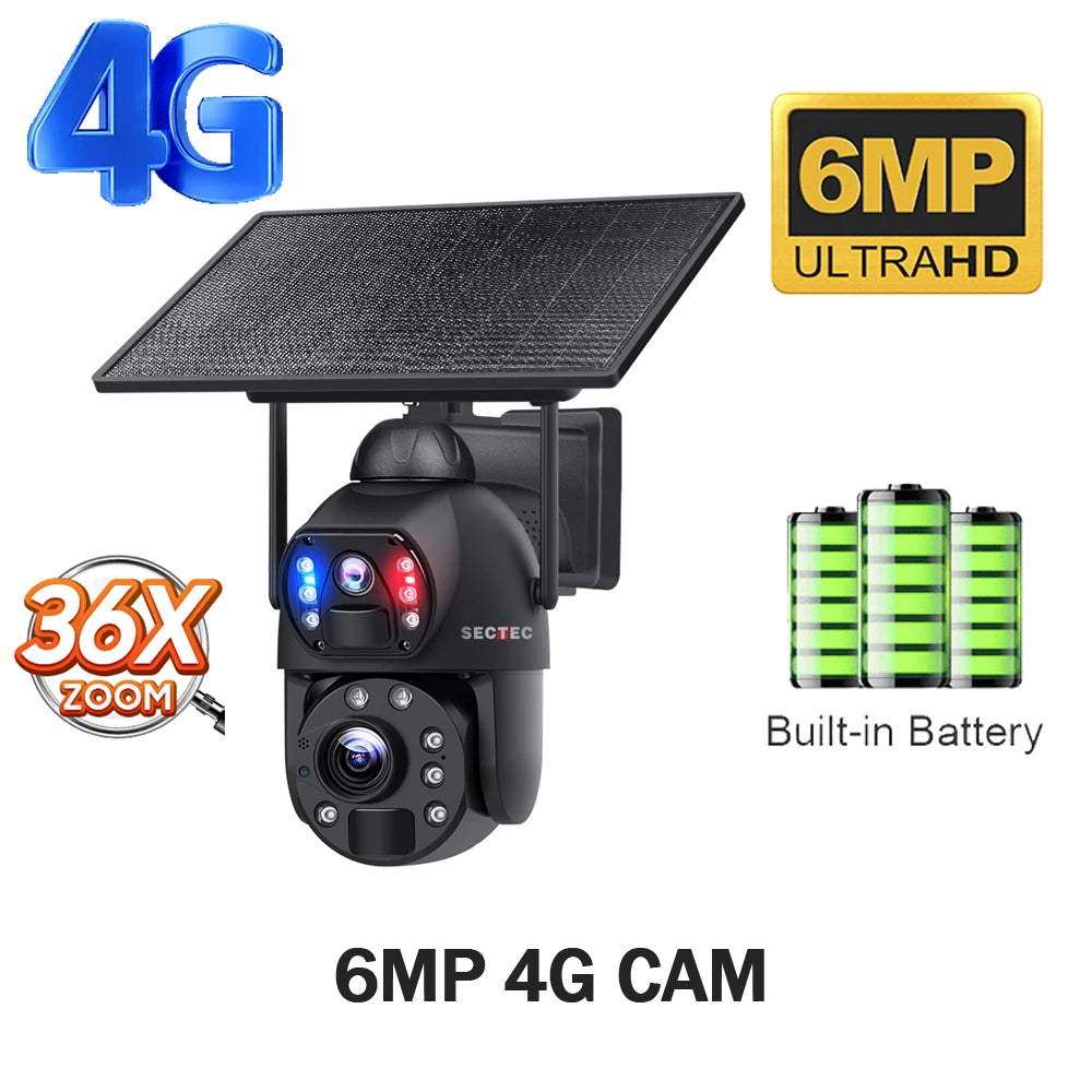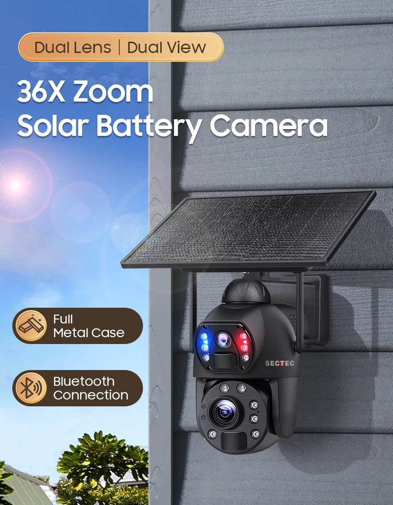 Sectec 6MP 36X Zoom Dual View Wifi Solar Battery Camera 4G Solar Outdoor Surv...