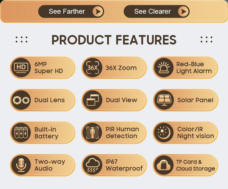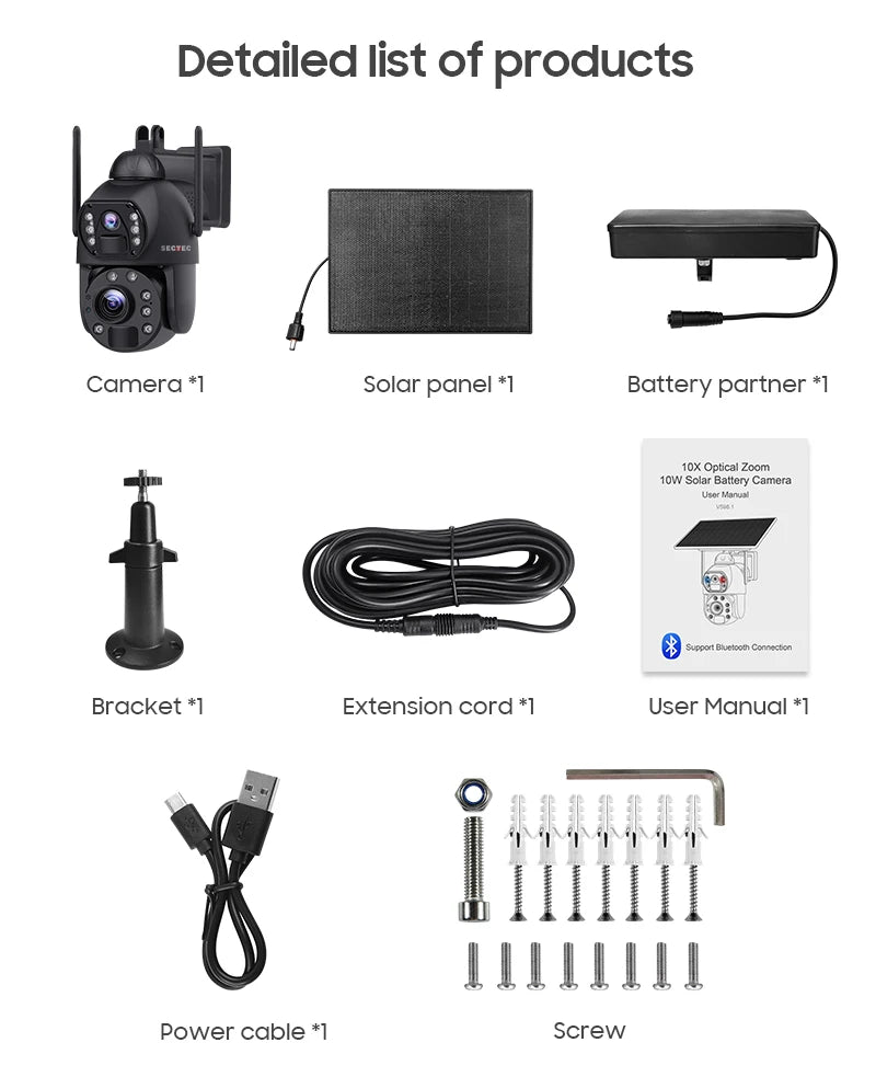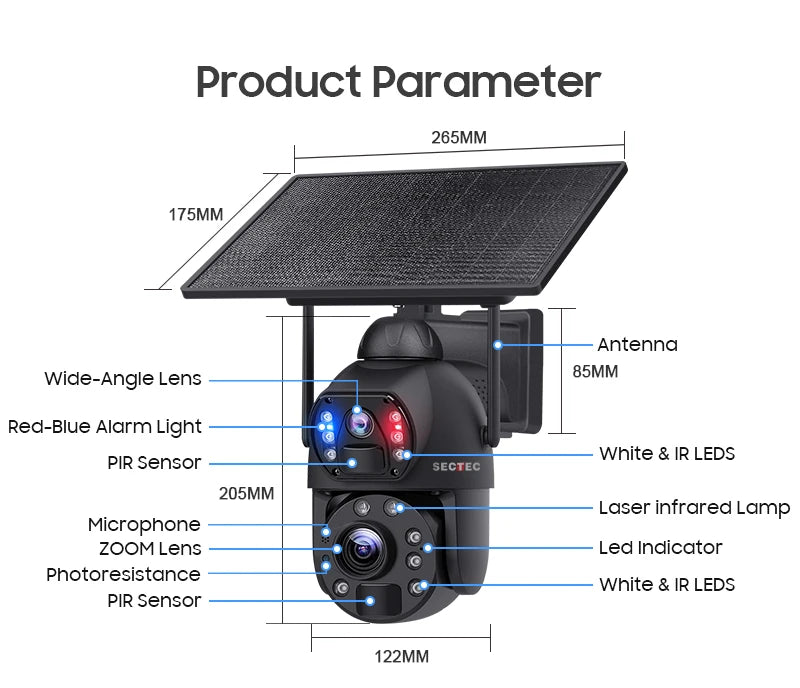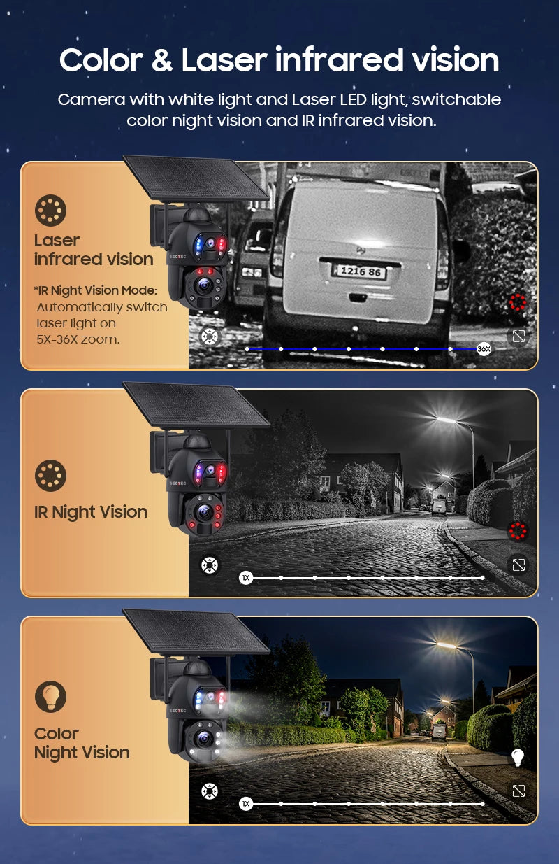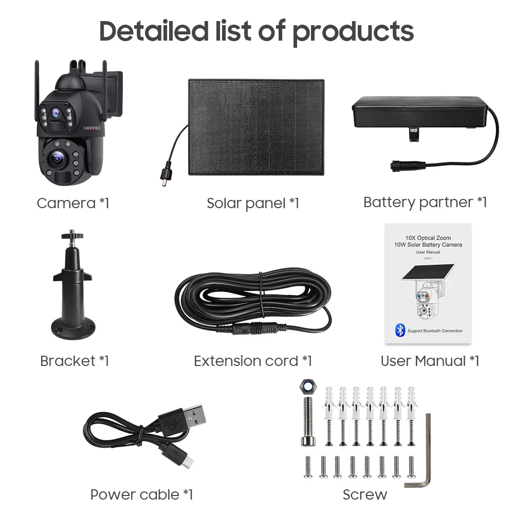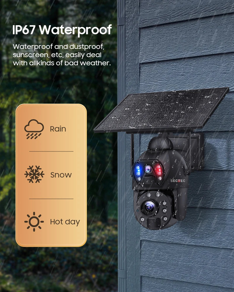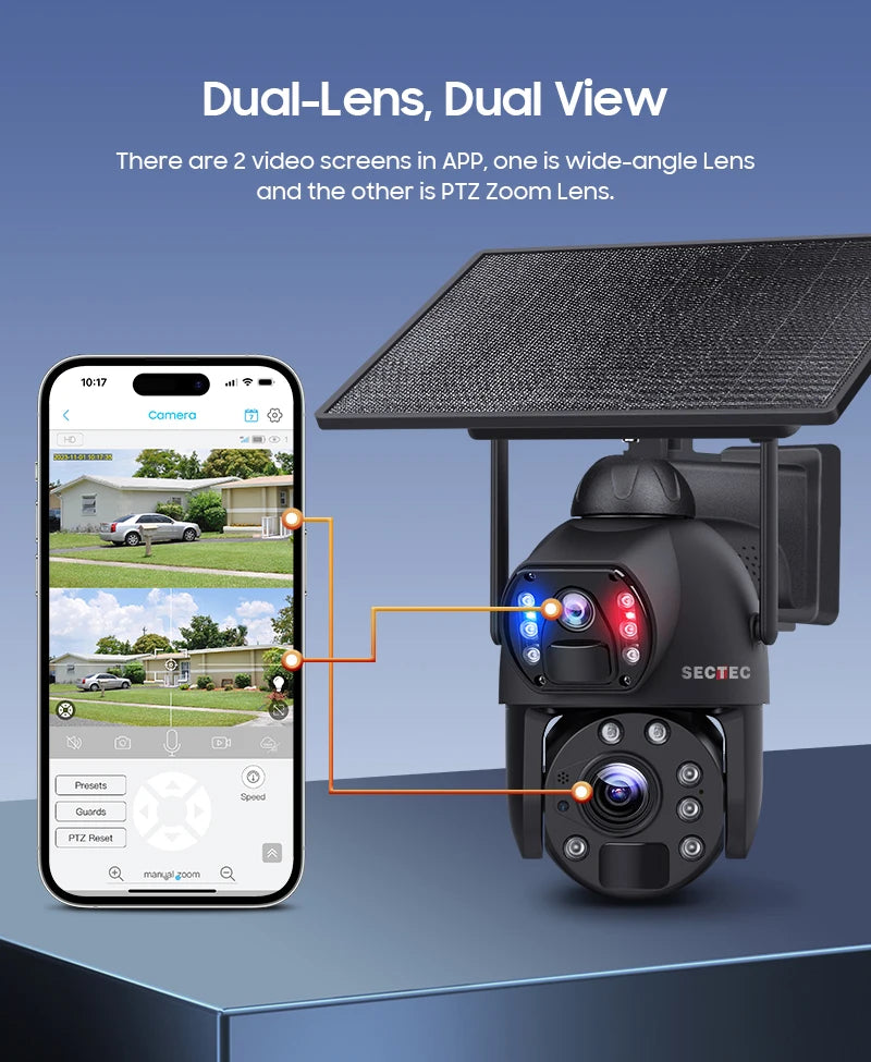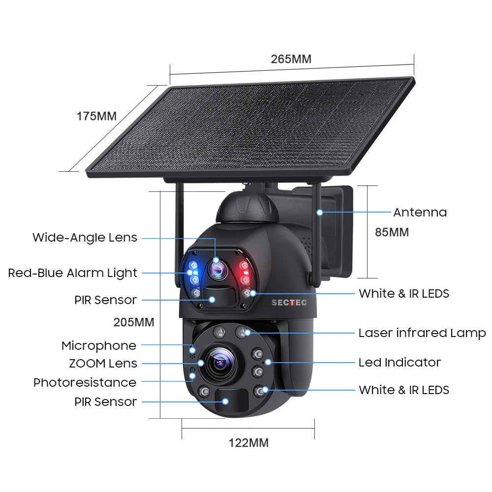 Sectec 6MP 36X Zoom Dual View Wifi Solar Battery Camera 4G Solar Outdoor Surv...