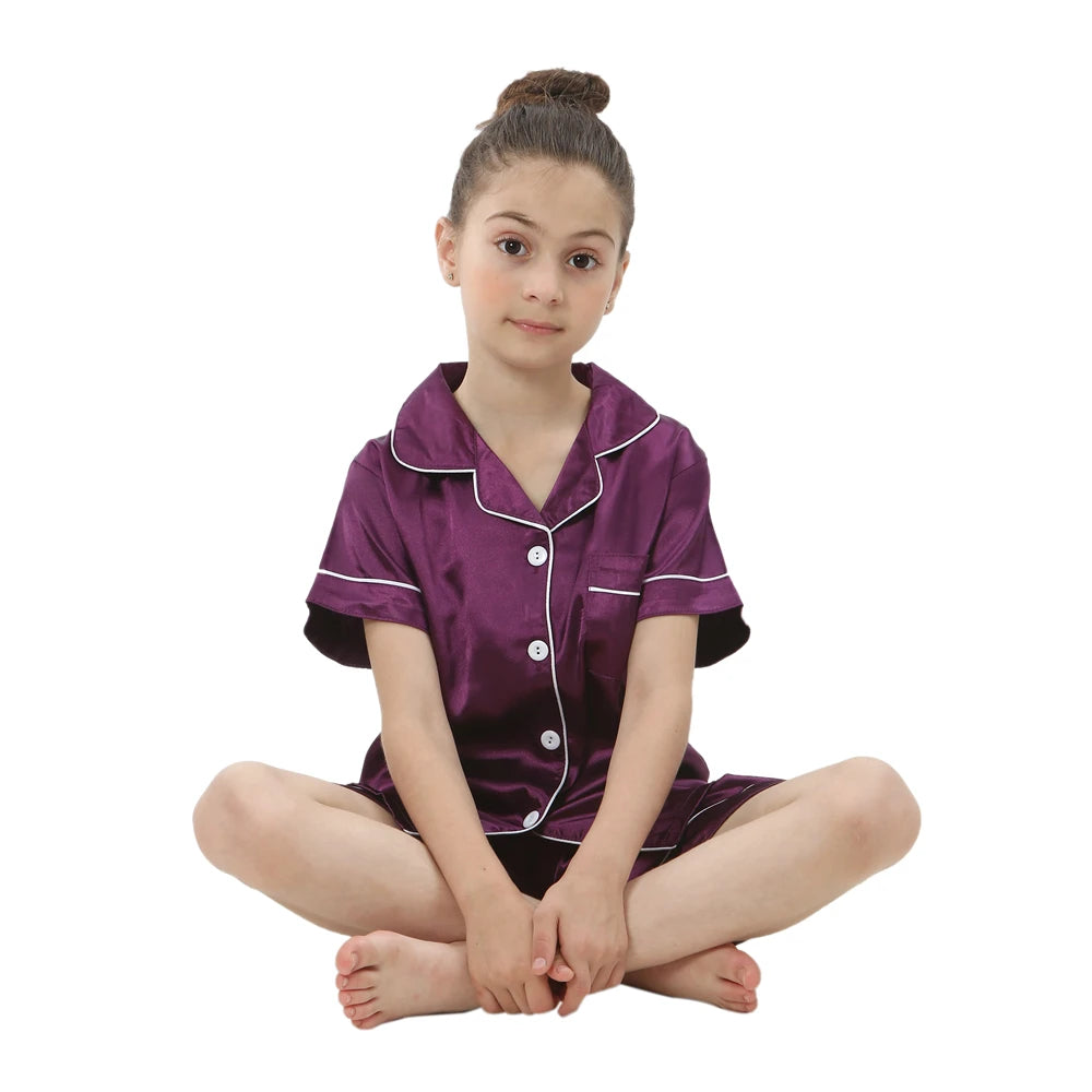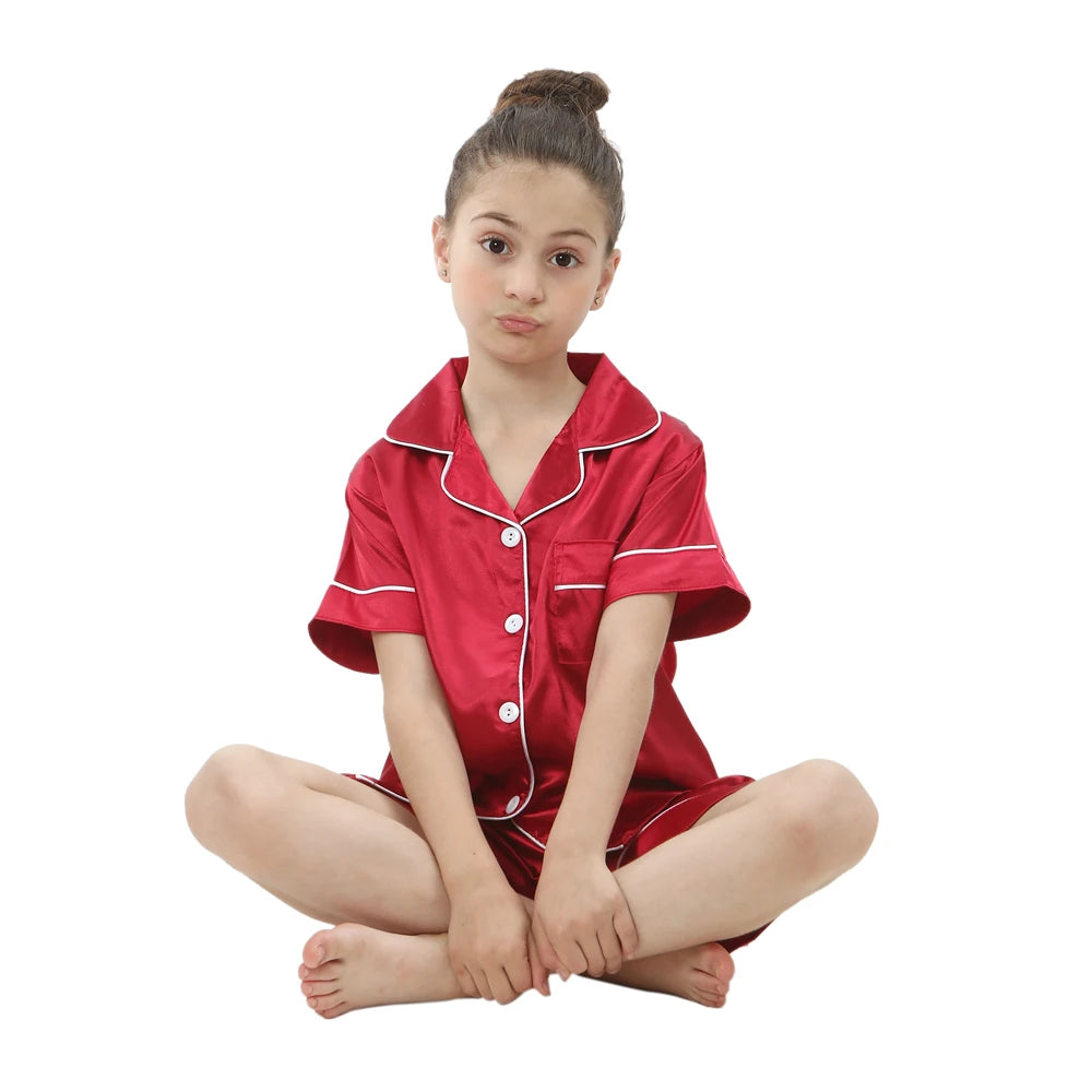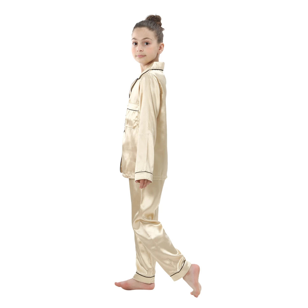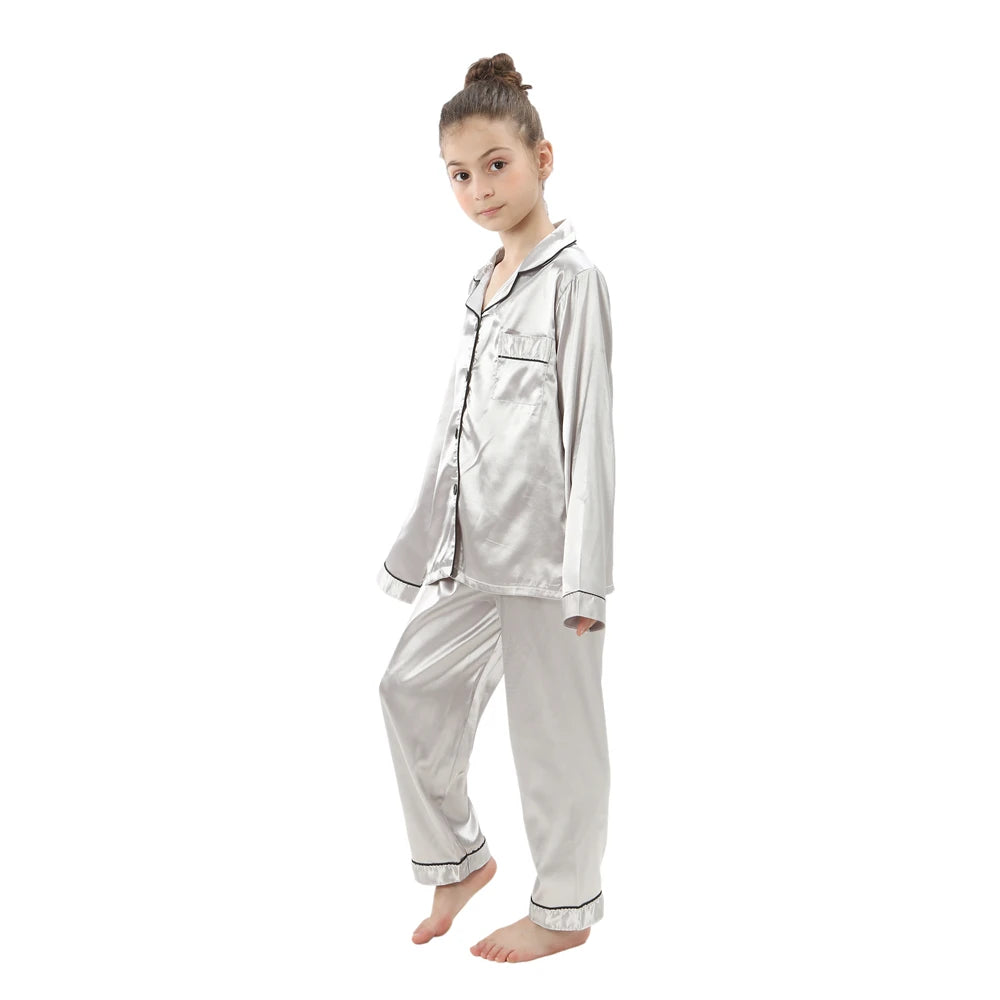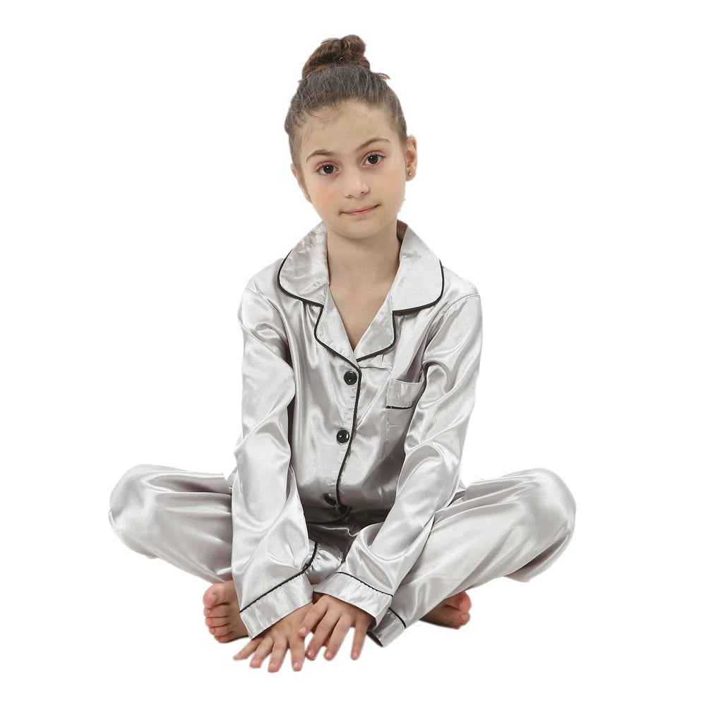 Boys Girls Satin Silk Pajamas Sets for Kids Toddler 2 to 3 4 5 6 7 8 9 10 11 12 13 14 Years Long/Short Sl...
