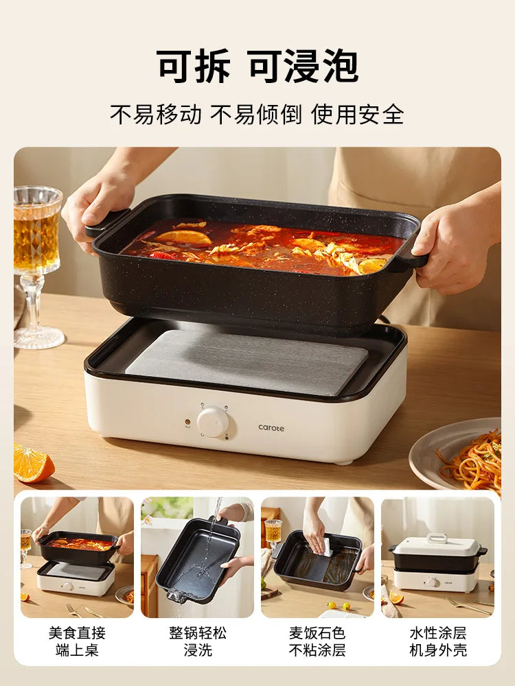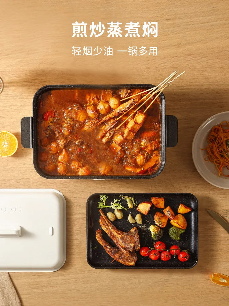 hot pot , household electric wok, integrated electric cooking pot, shabu barbecue pot, electric steamer
