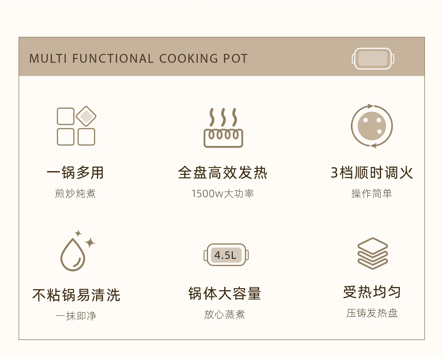 Electric heating/hot pot function: Fried, stir-fried, grilled, hot pot