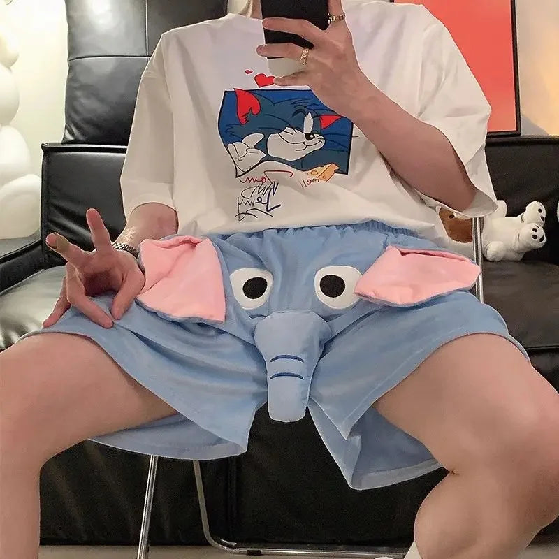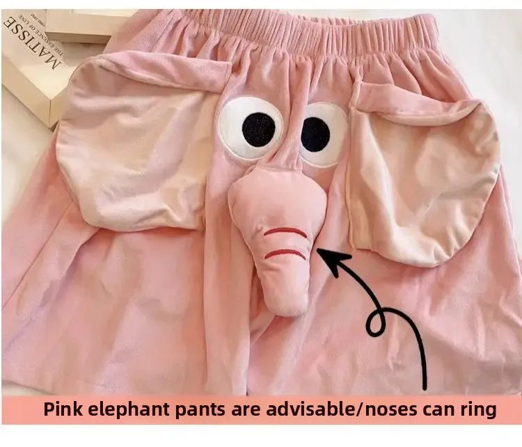 Men's And Women's Cute Little Flying Elephant Couple Sleepwear Student Long Pants Autumn Winter Funny Ele...