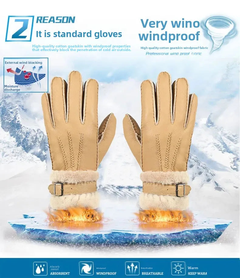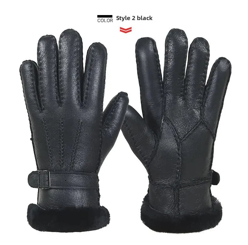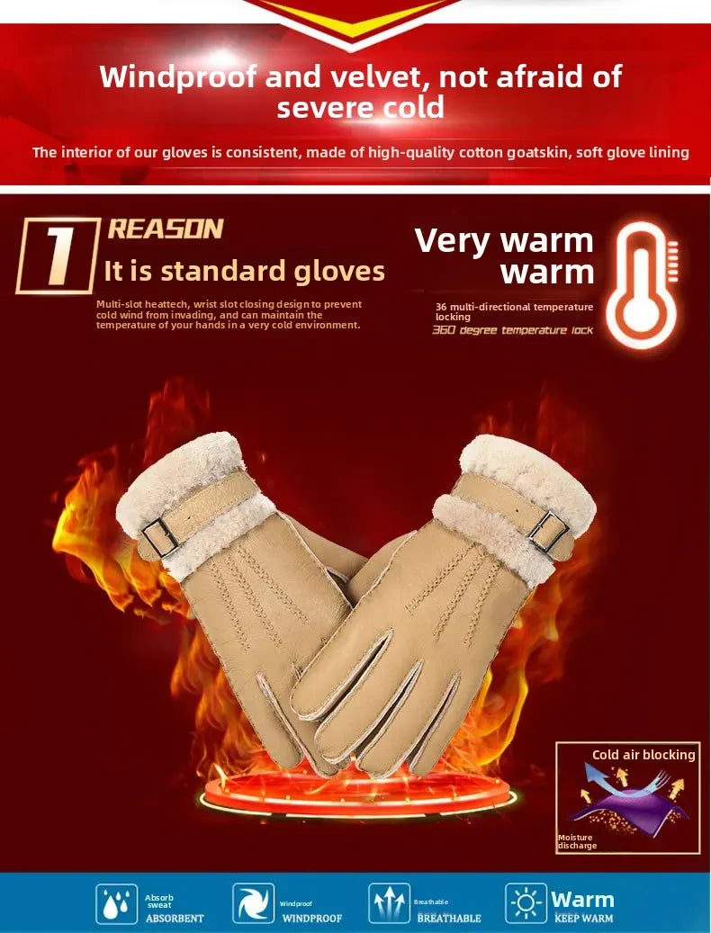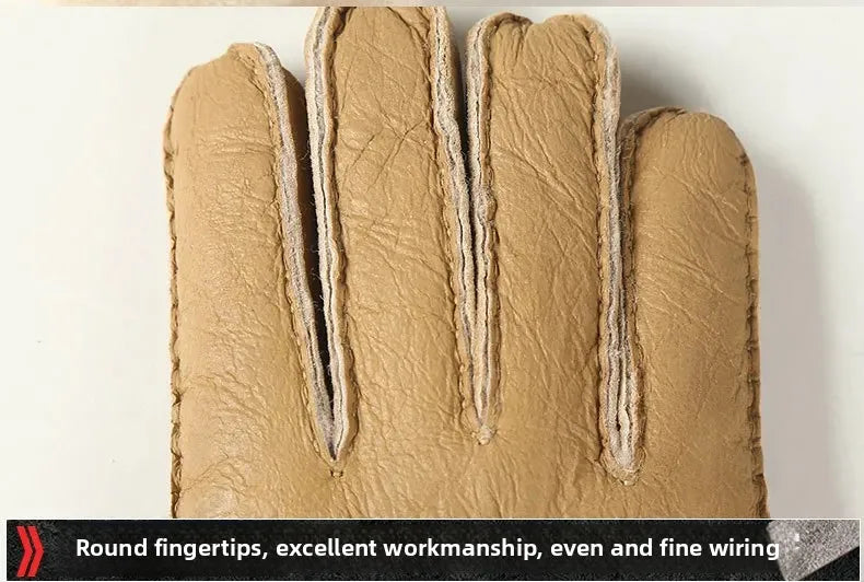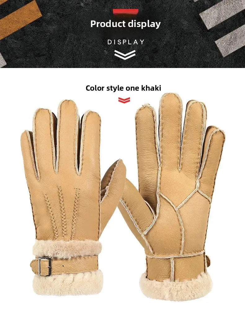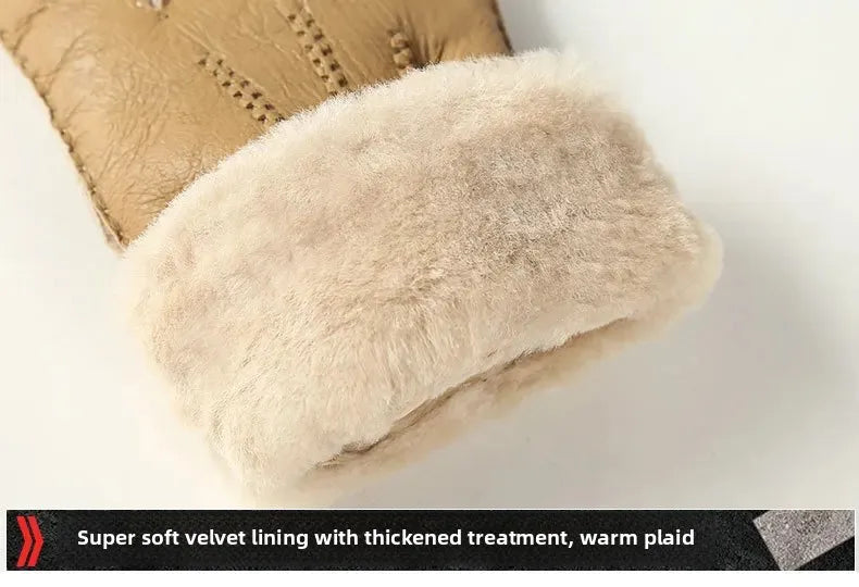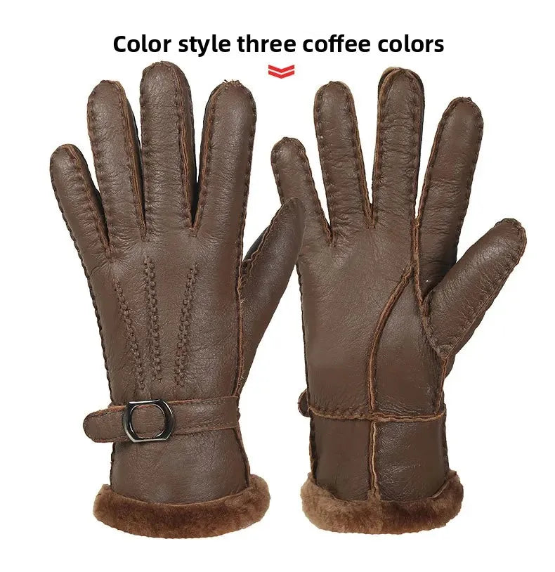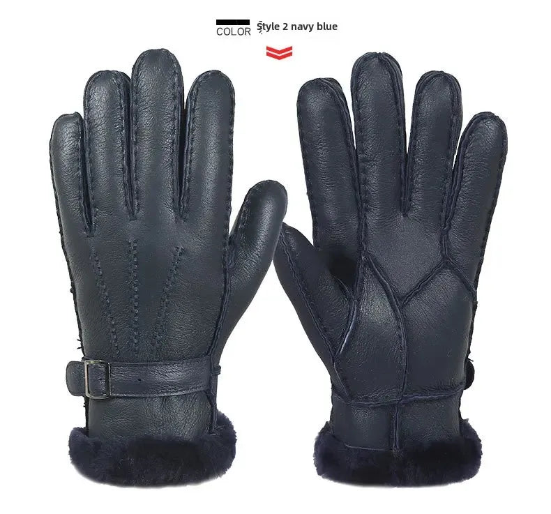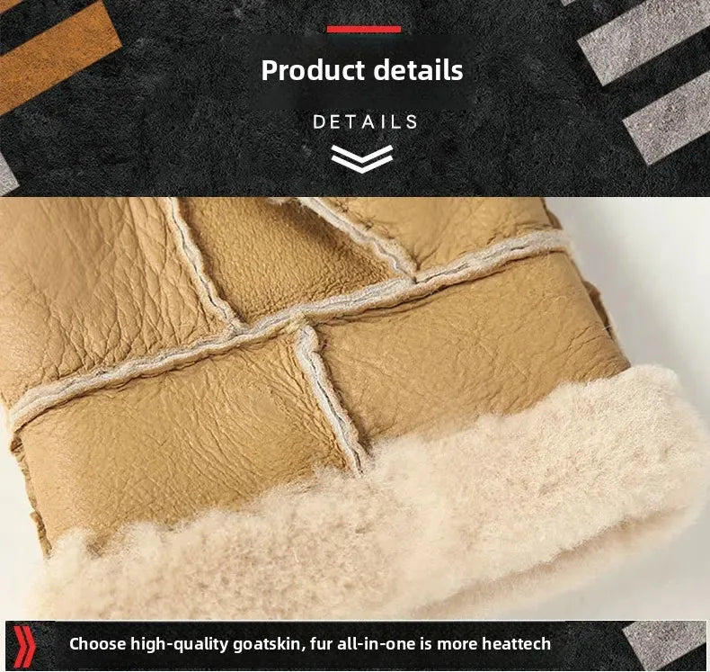 Men's Fashionable Thickened Genuine Sheepskin Leather Gloves Windproof Warm Winter Autumn Integrated Fing...