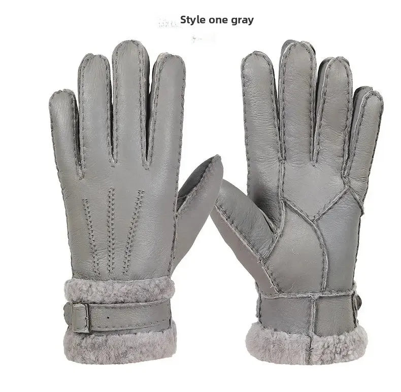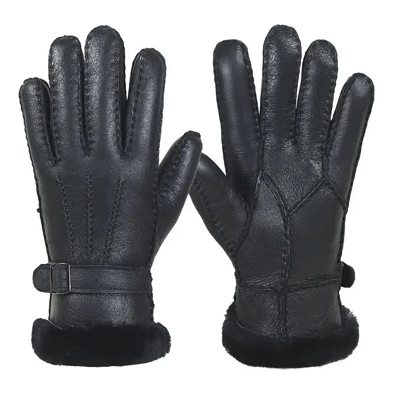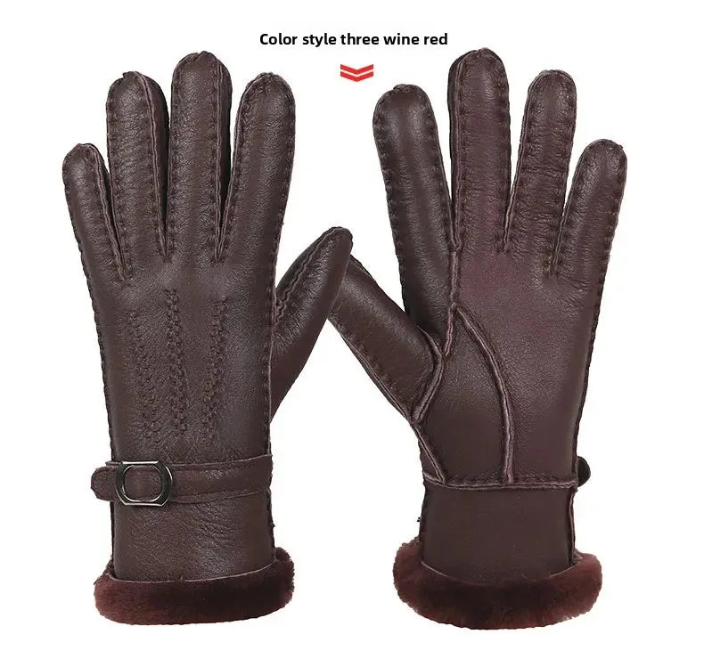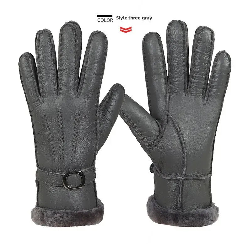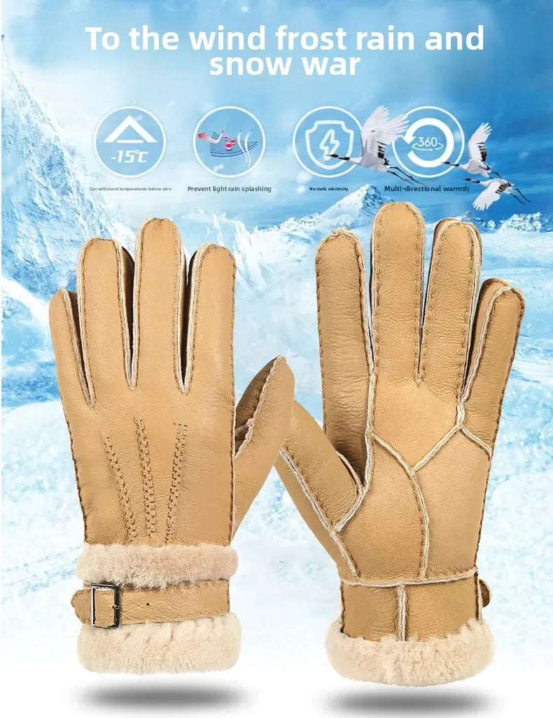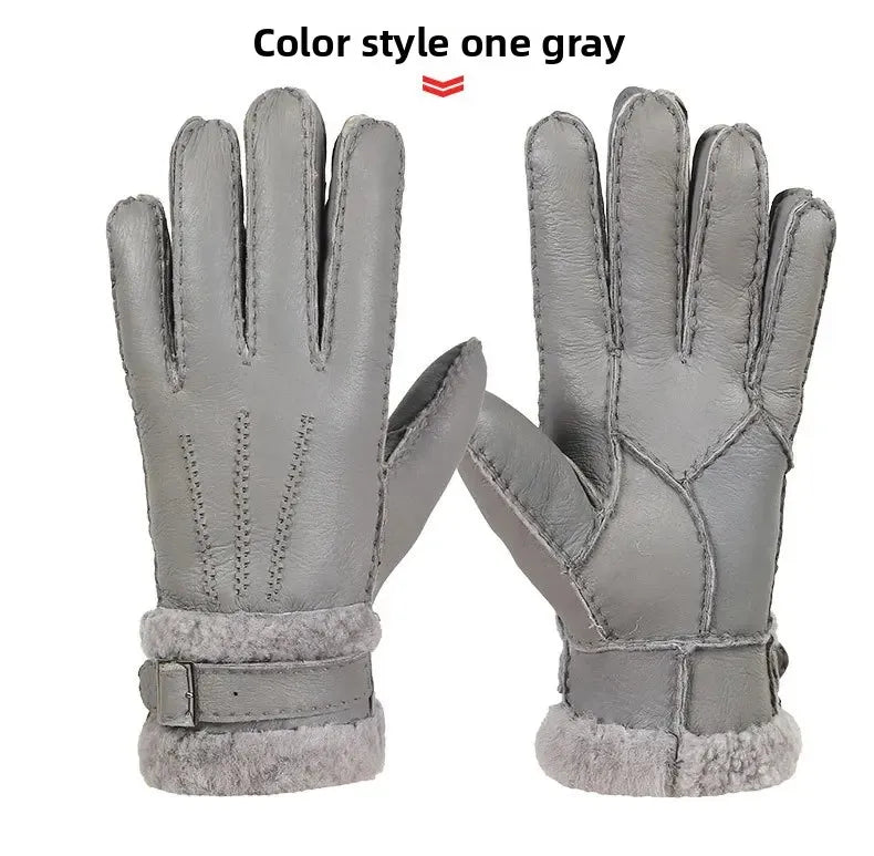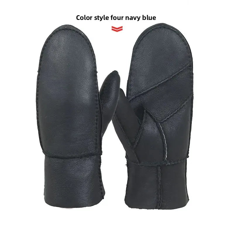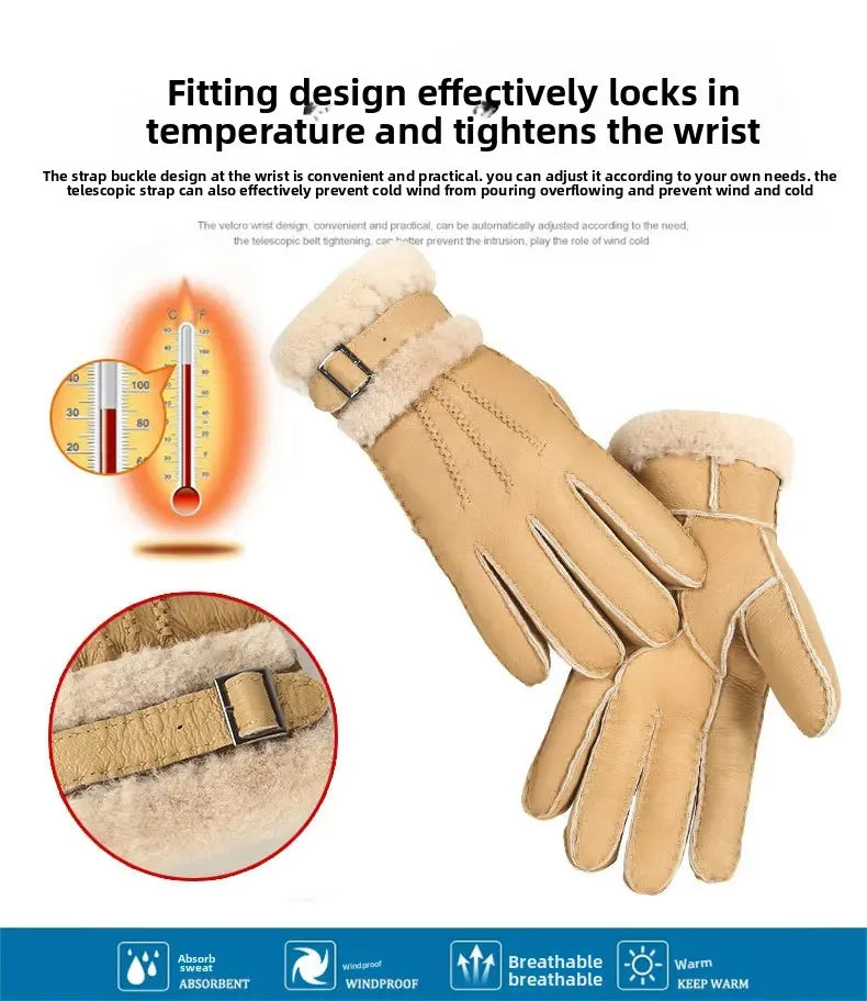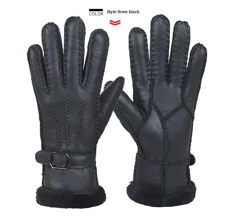 Men's Fashionable Thickened Genuine Sheepskin Leather Gloves Windproof Warm Winter Autumn Integrated Fing...