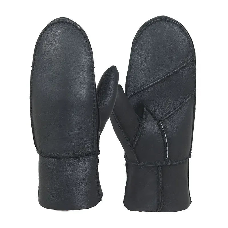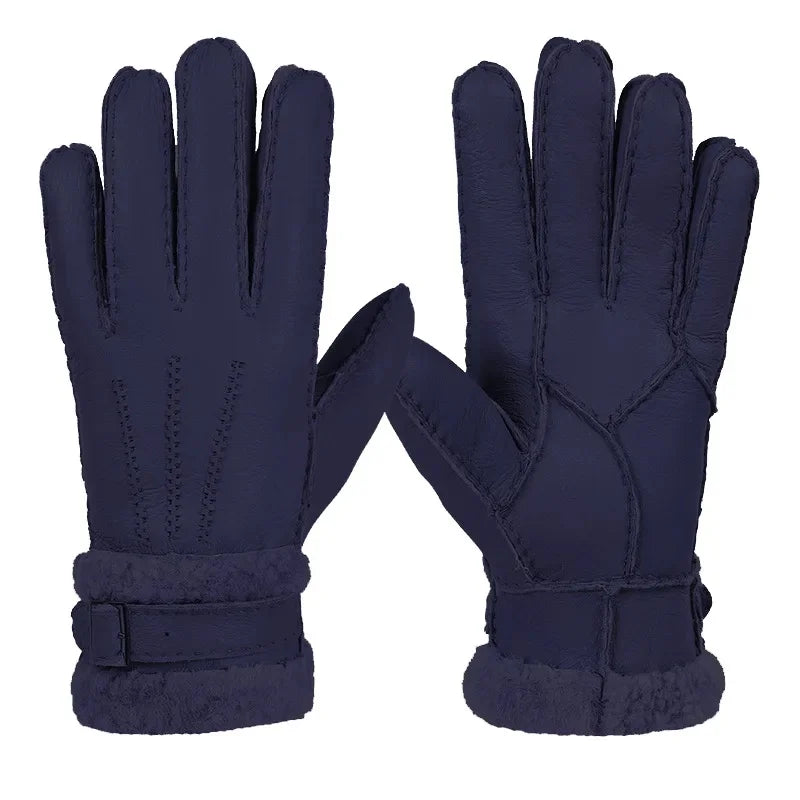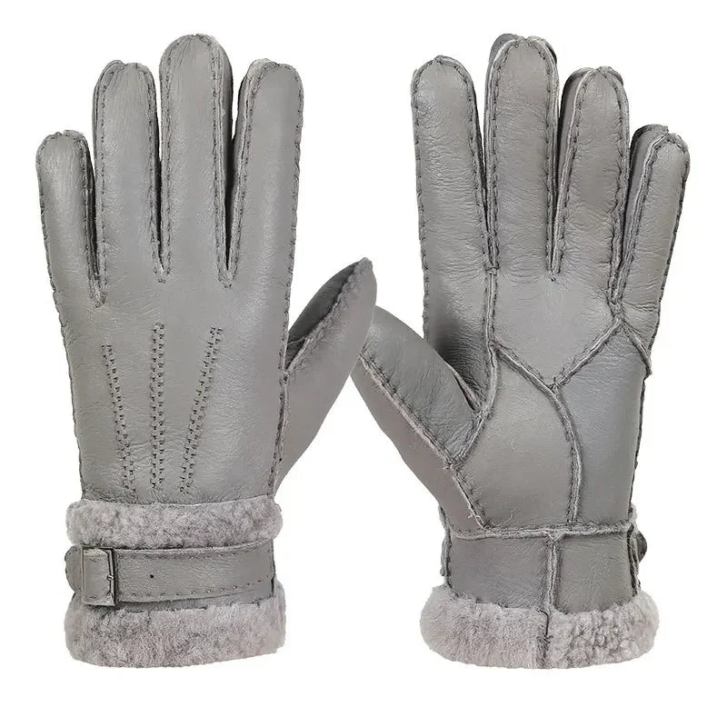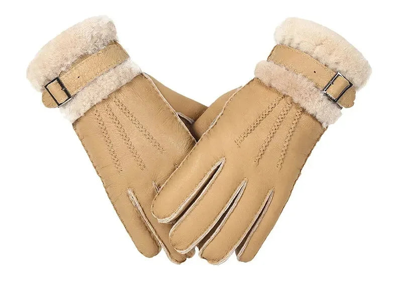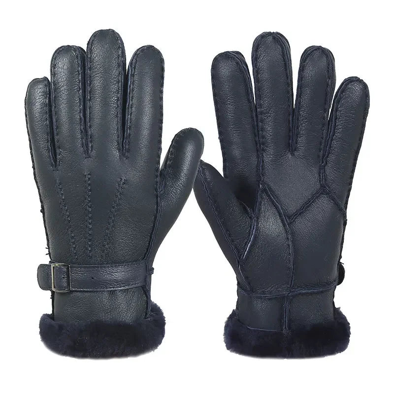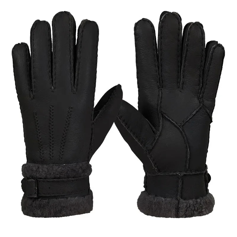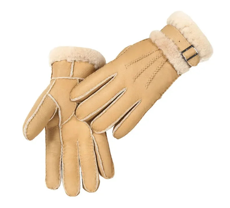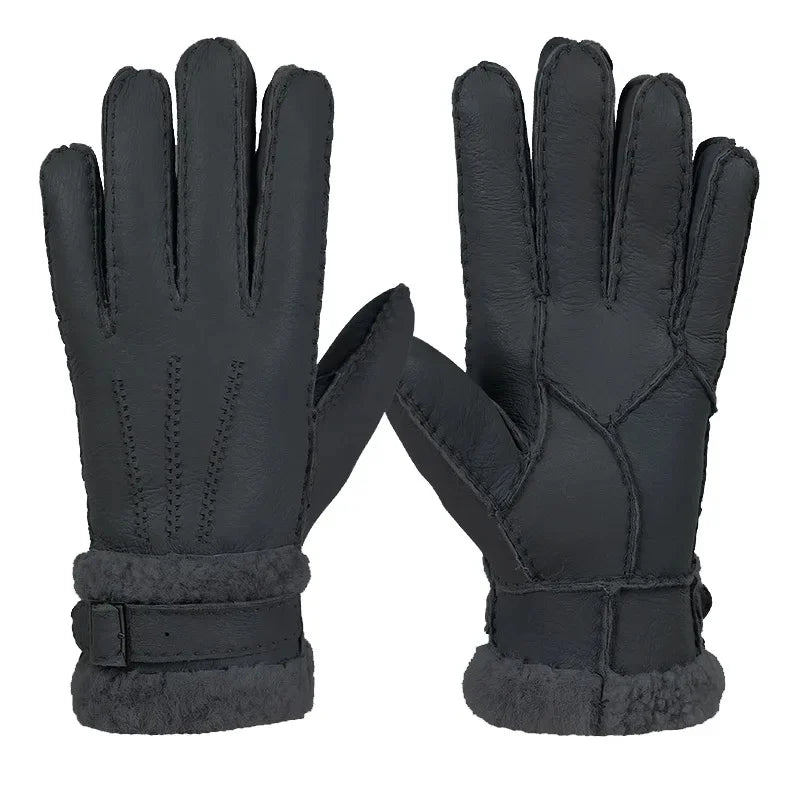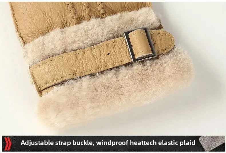Men's Fashionable Thickened Genuine Sheepskin Leather Gloves Windproof Warm Winter Autumn Integrated Fing...