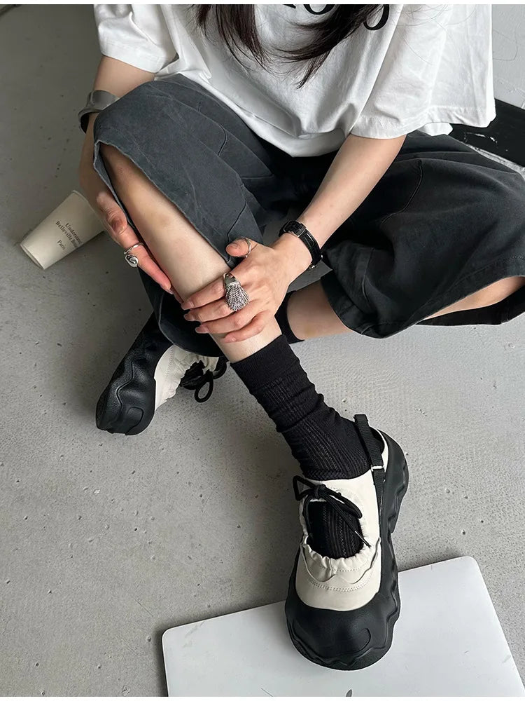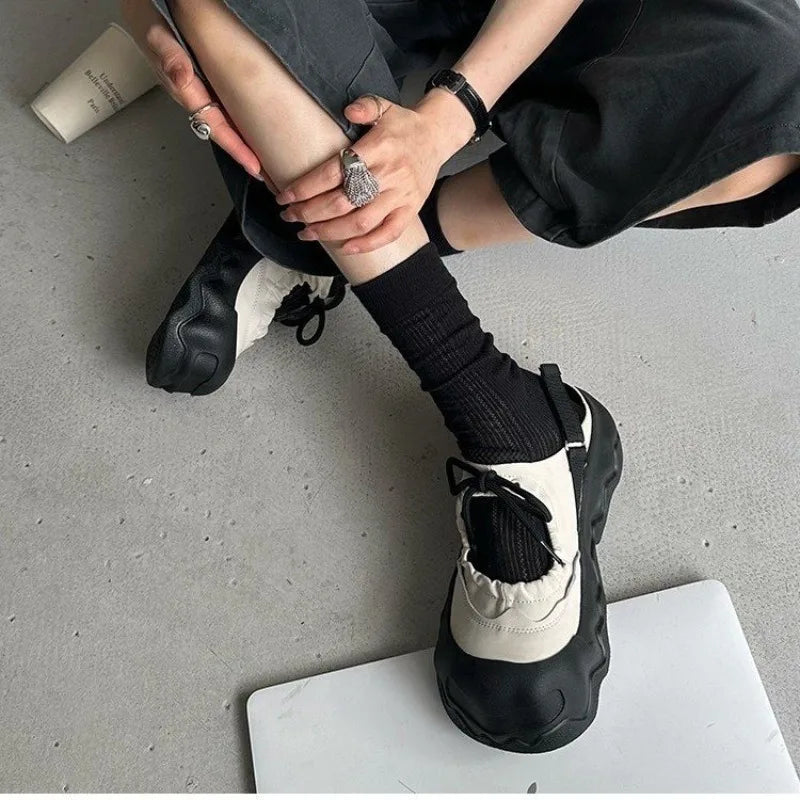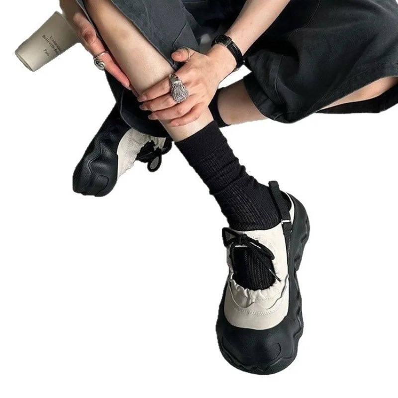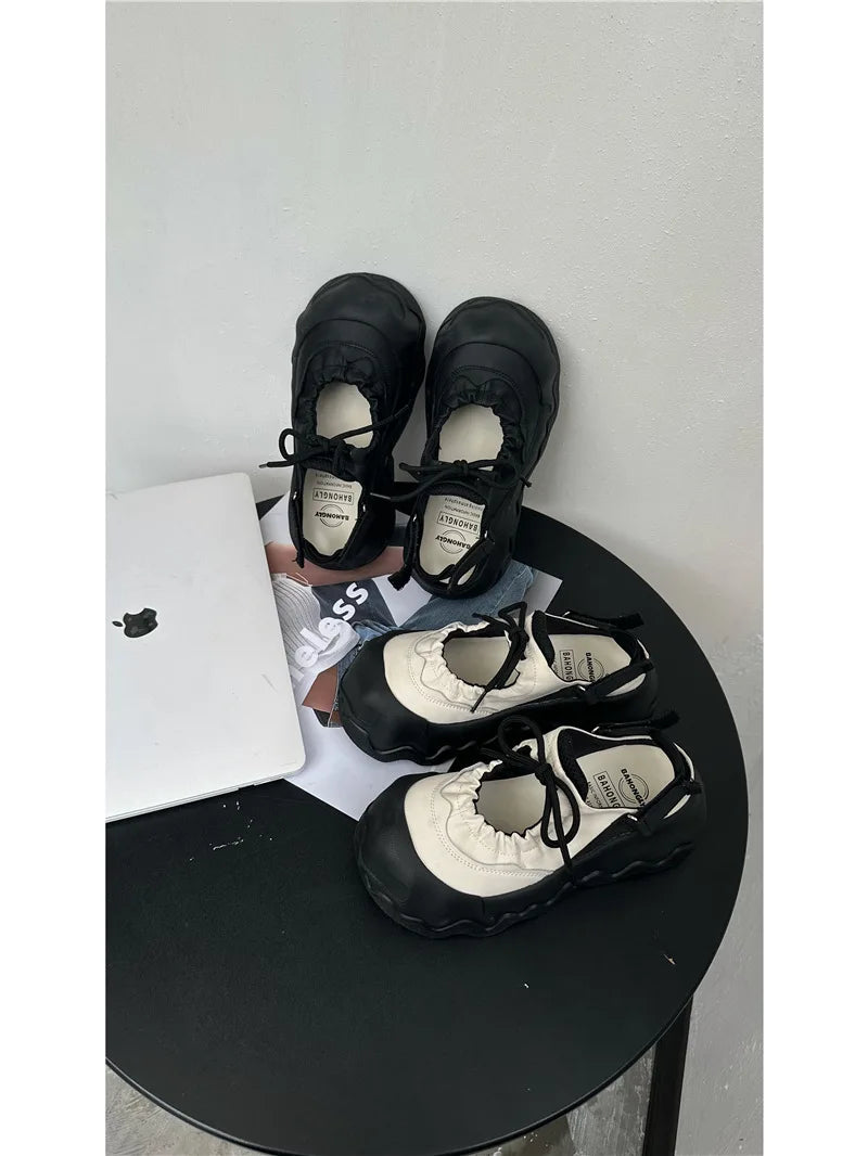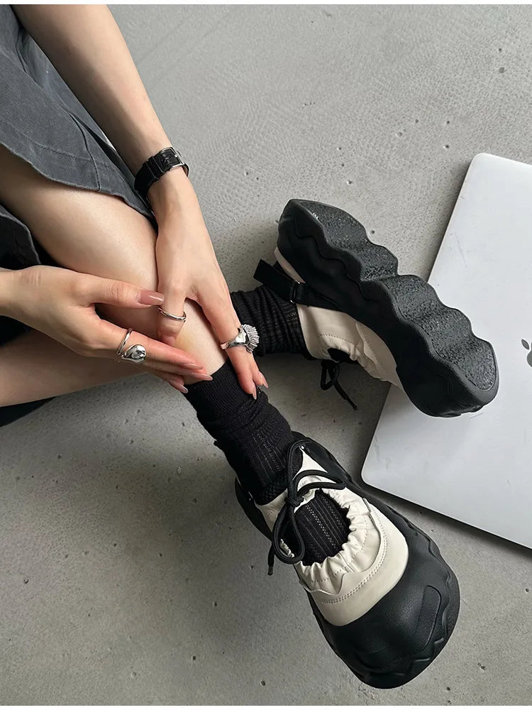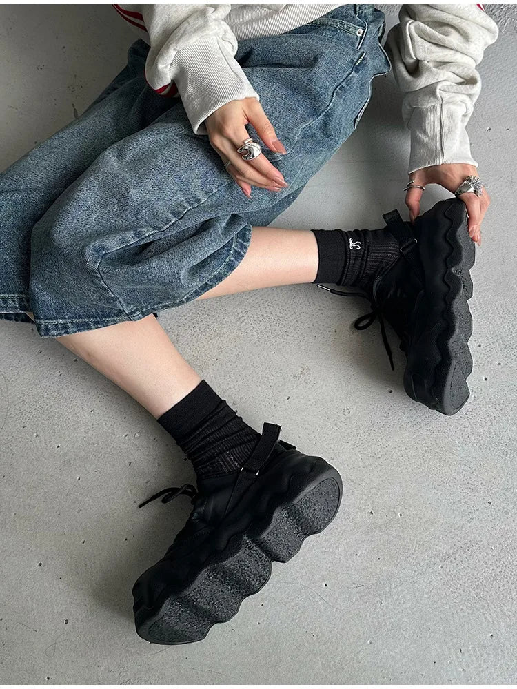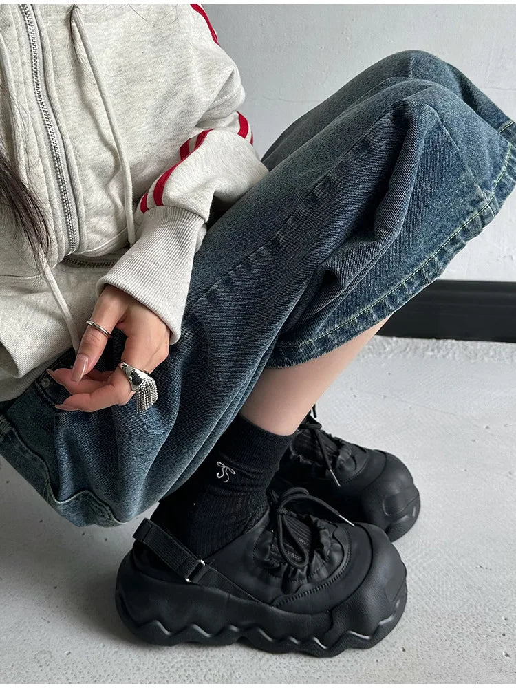 Summer Street Explosion 5CM Mary Jane Sandals Women's Wave Thick Bottom Lace Hollow Big Head Bread Shoes