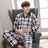 Fall 100% Cotton Pajamas Men's Comfortable Long-sleeved P...