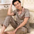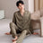 Men's Pajamas Trousers Suit Silk Pijama Sleepwear Printed...