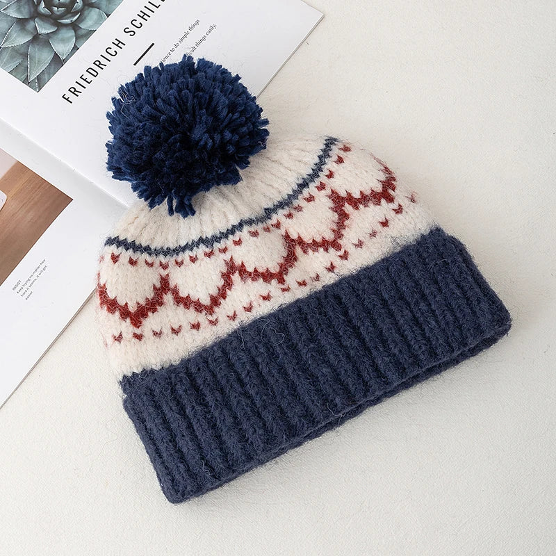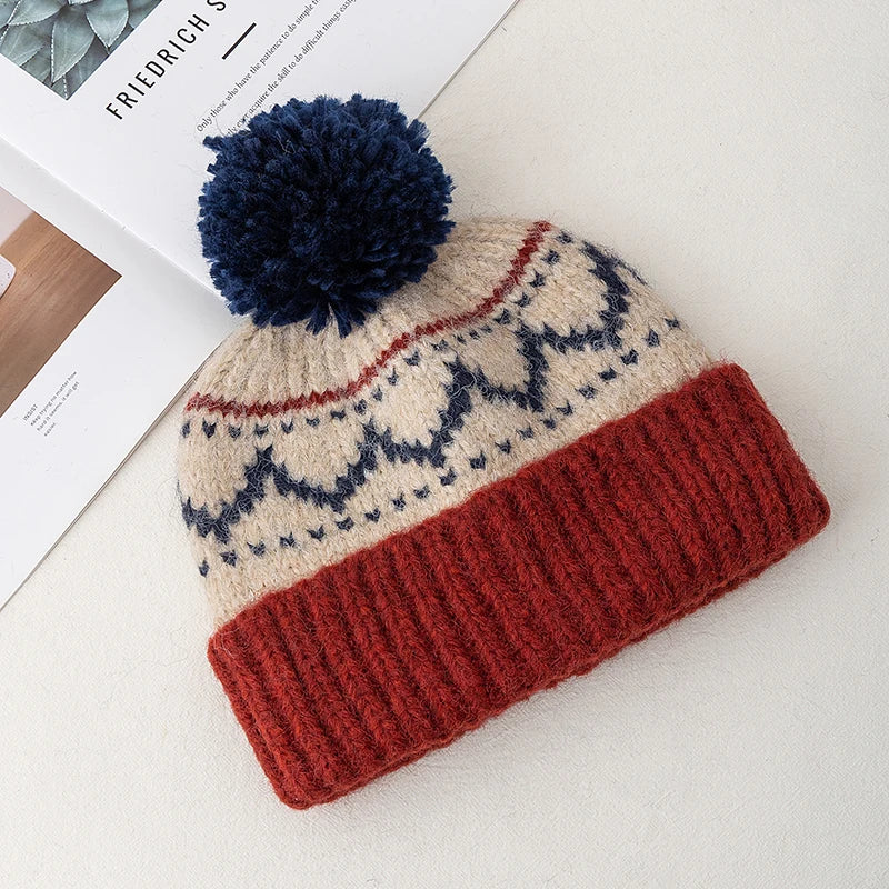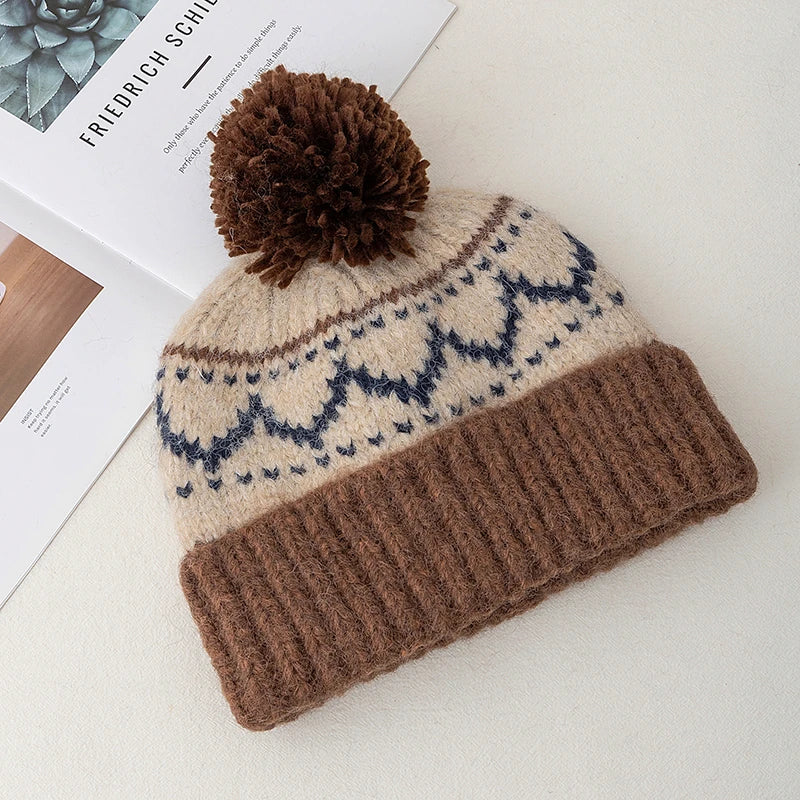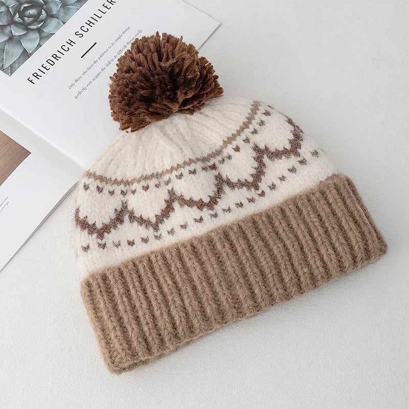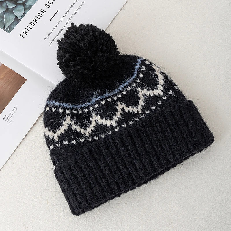 Women Winter Pompoms Knit Hat Fashion Fur Beanie Hats For Women Winter Gift