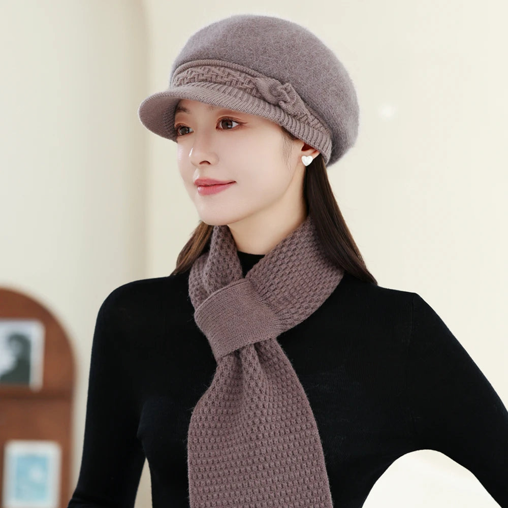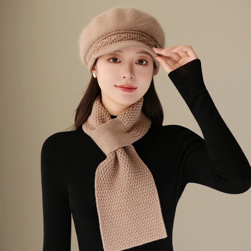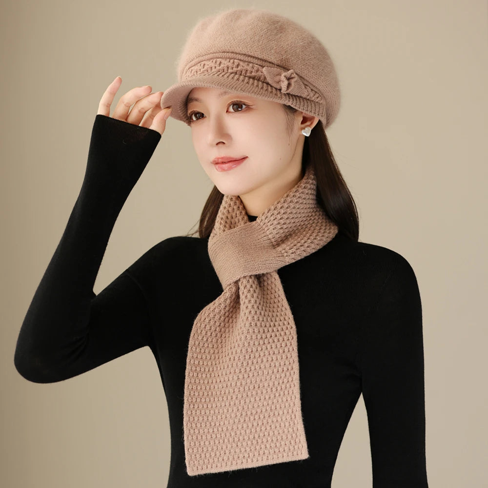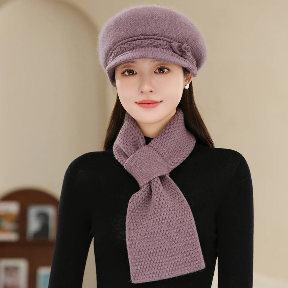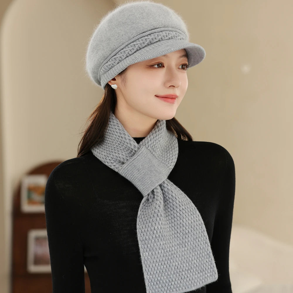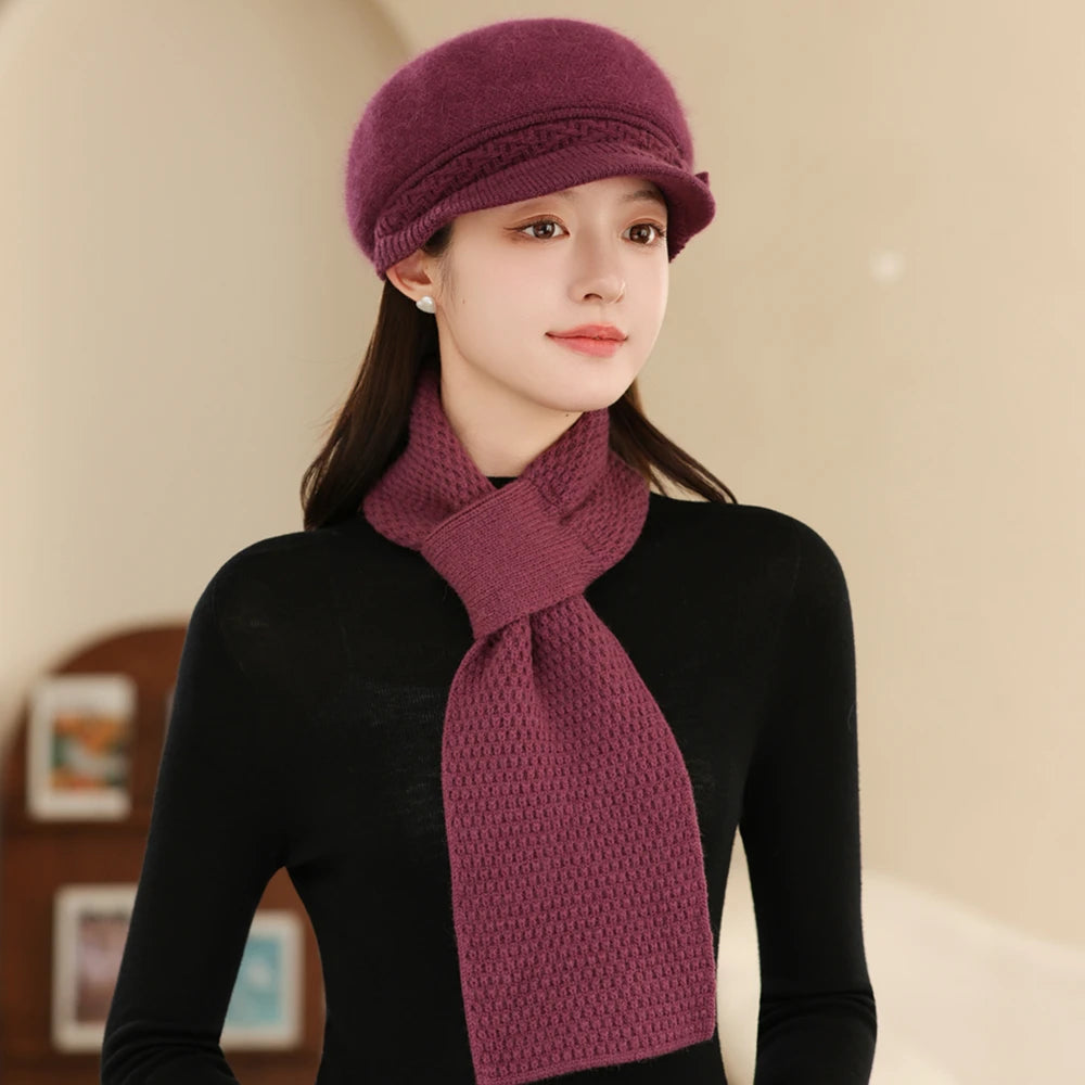 Women Fashion Winter Warm Suit Plush Fur Lined Warm Hats For Women Casual Rab...