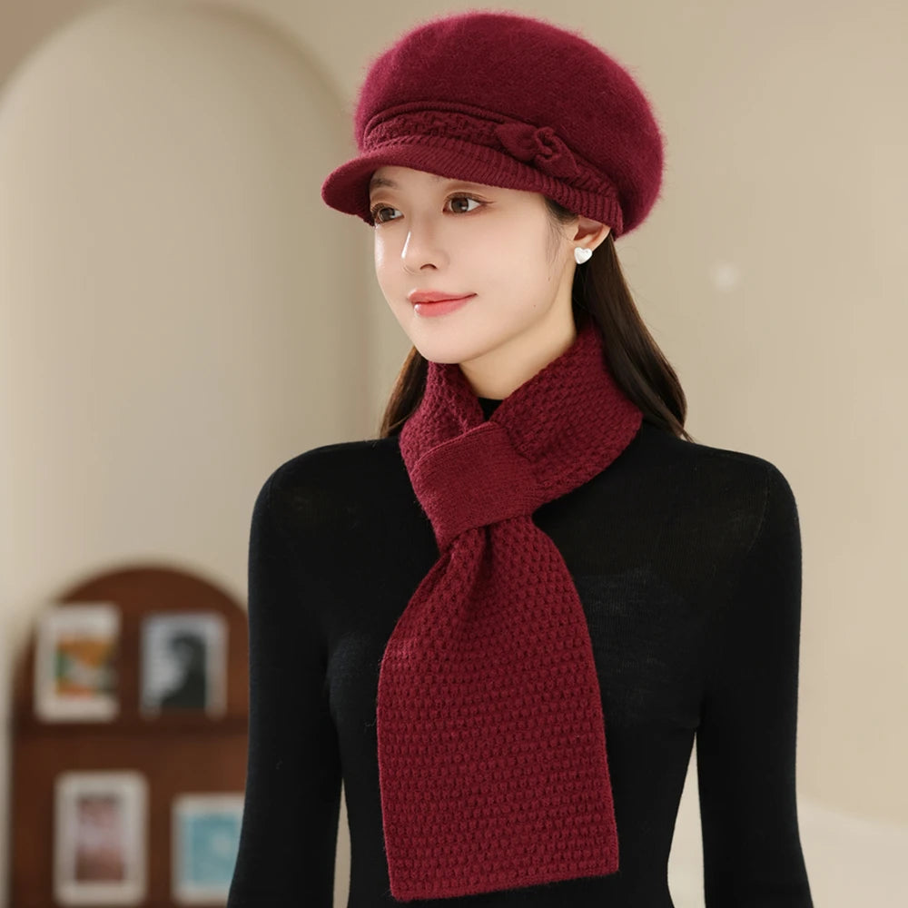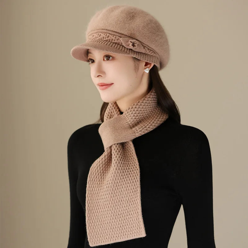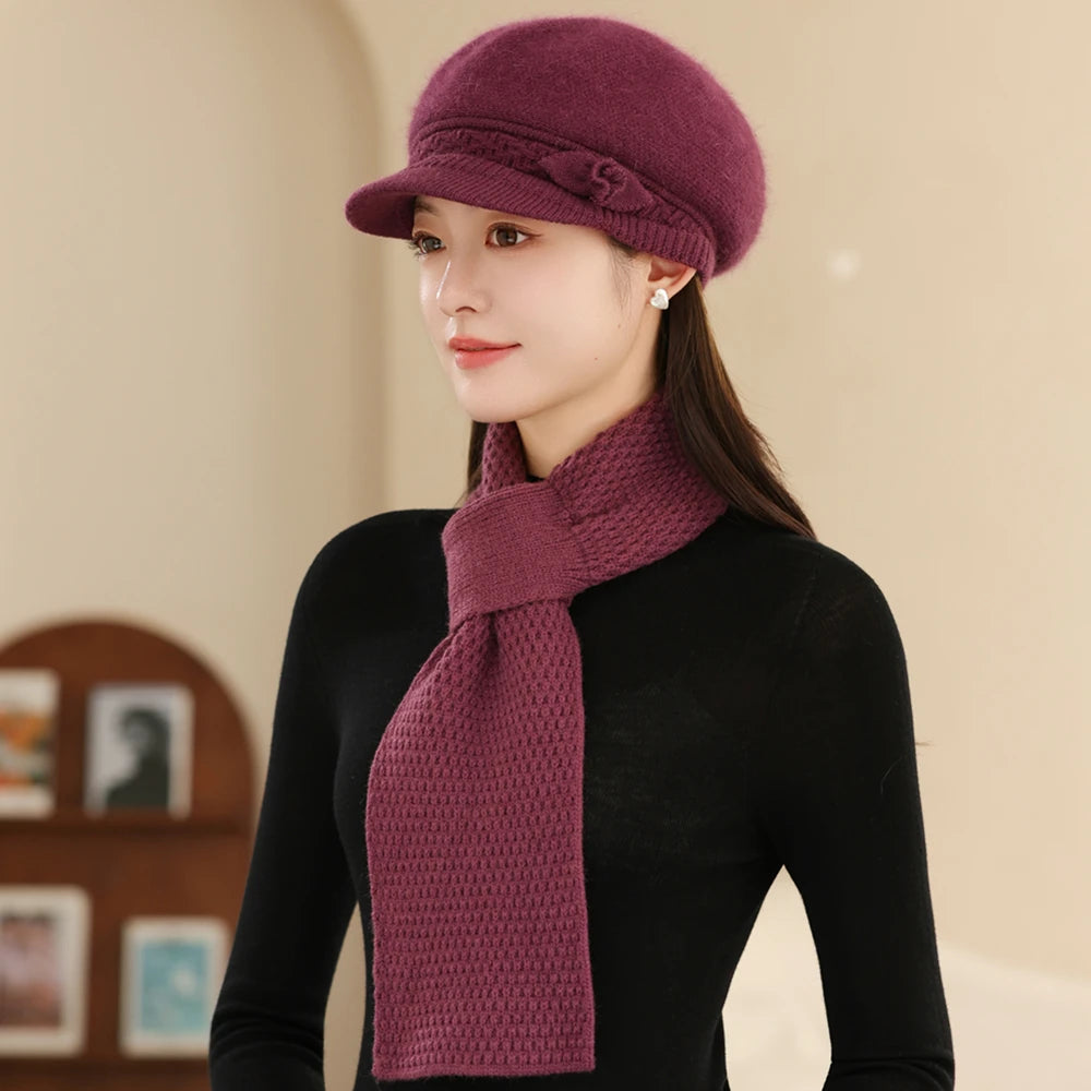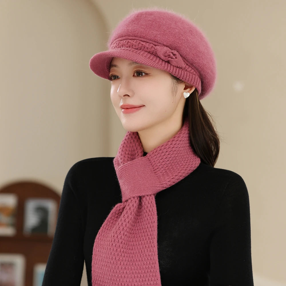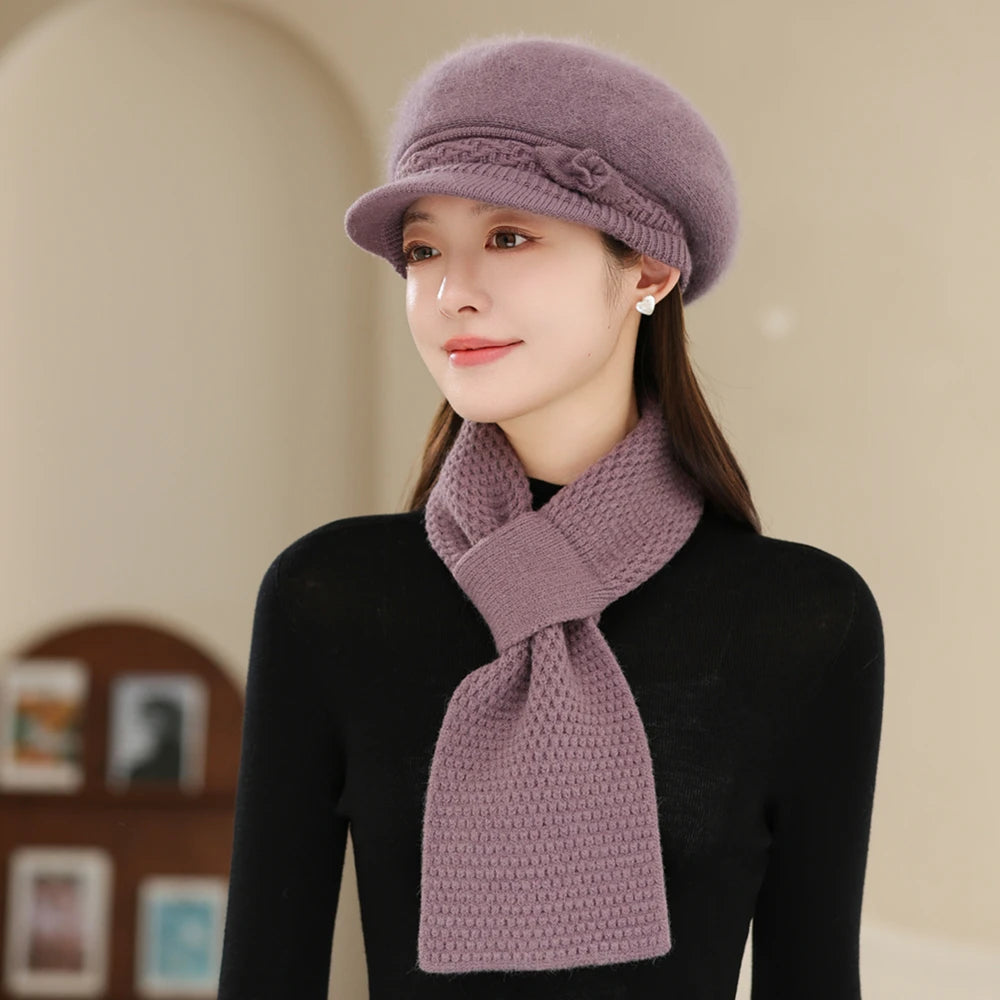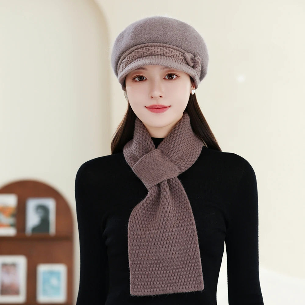 Women Fashion Winter Warm Suit Plush Fur Lined Warm Hats For Women Casual Rab...