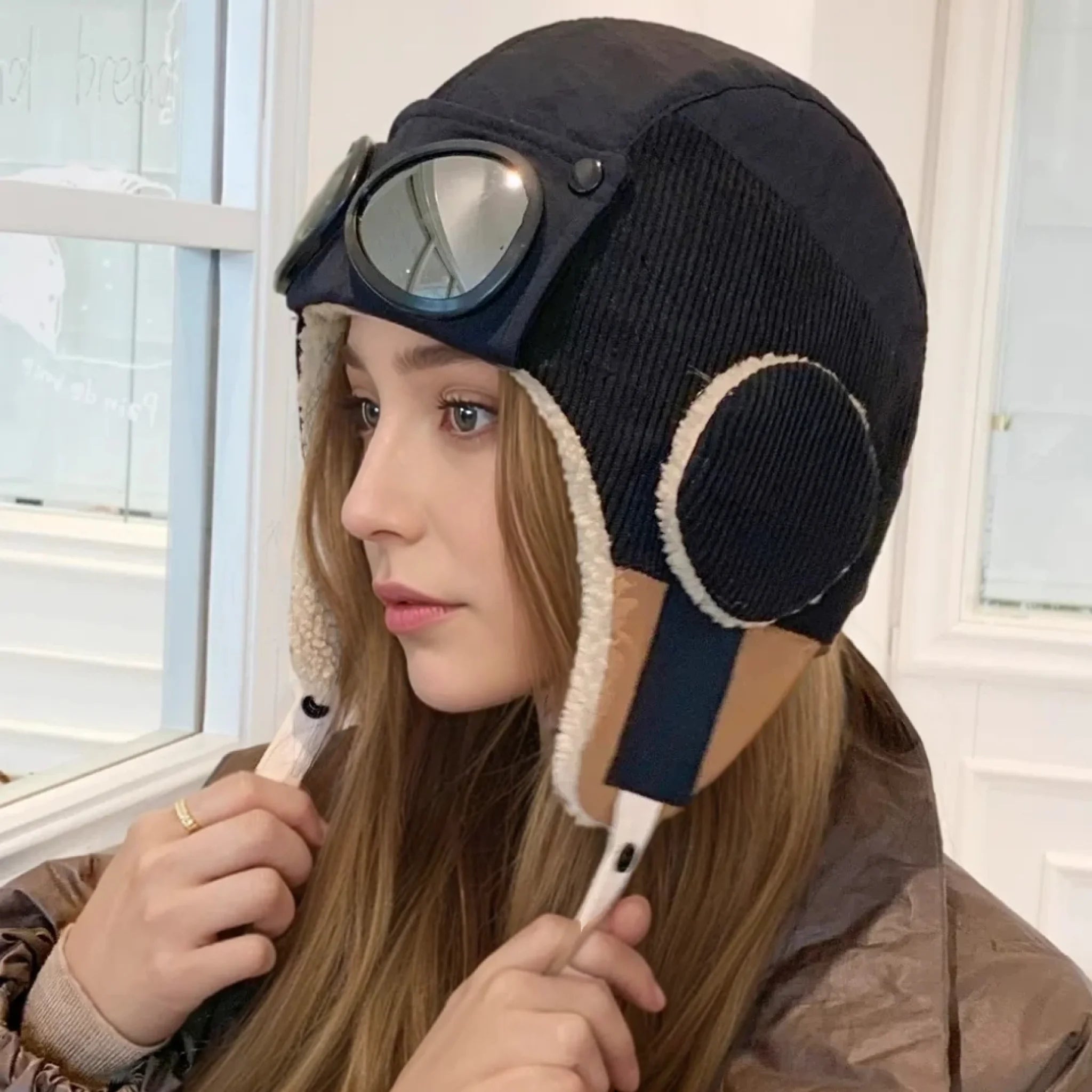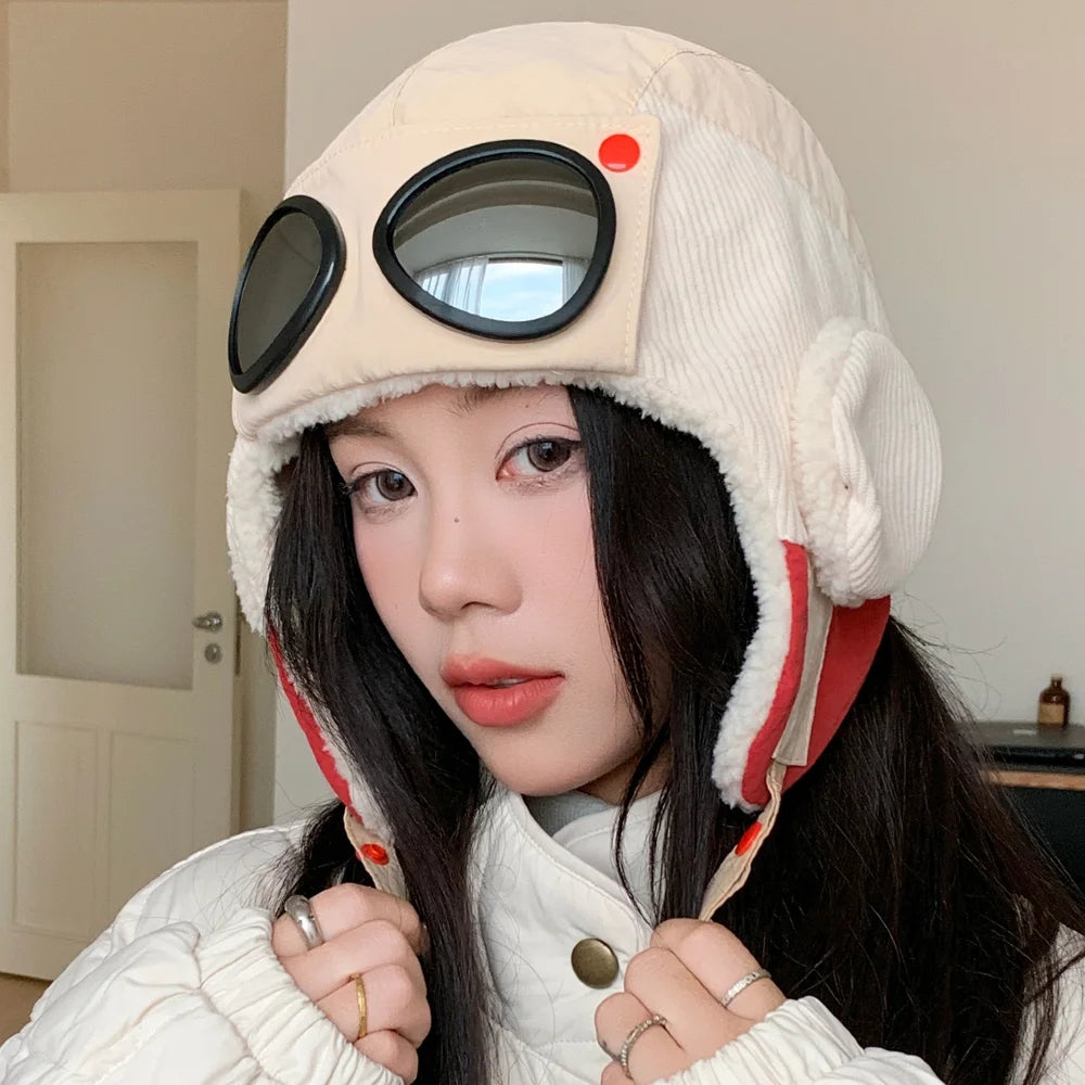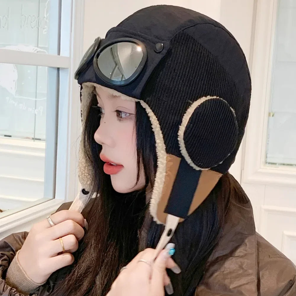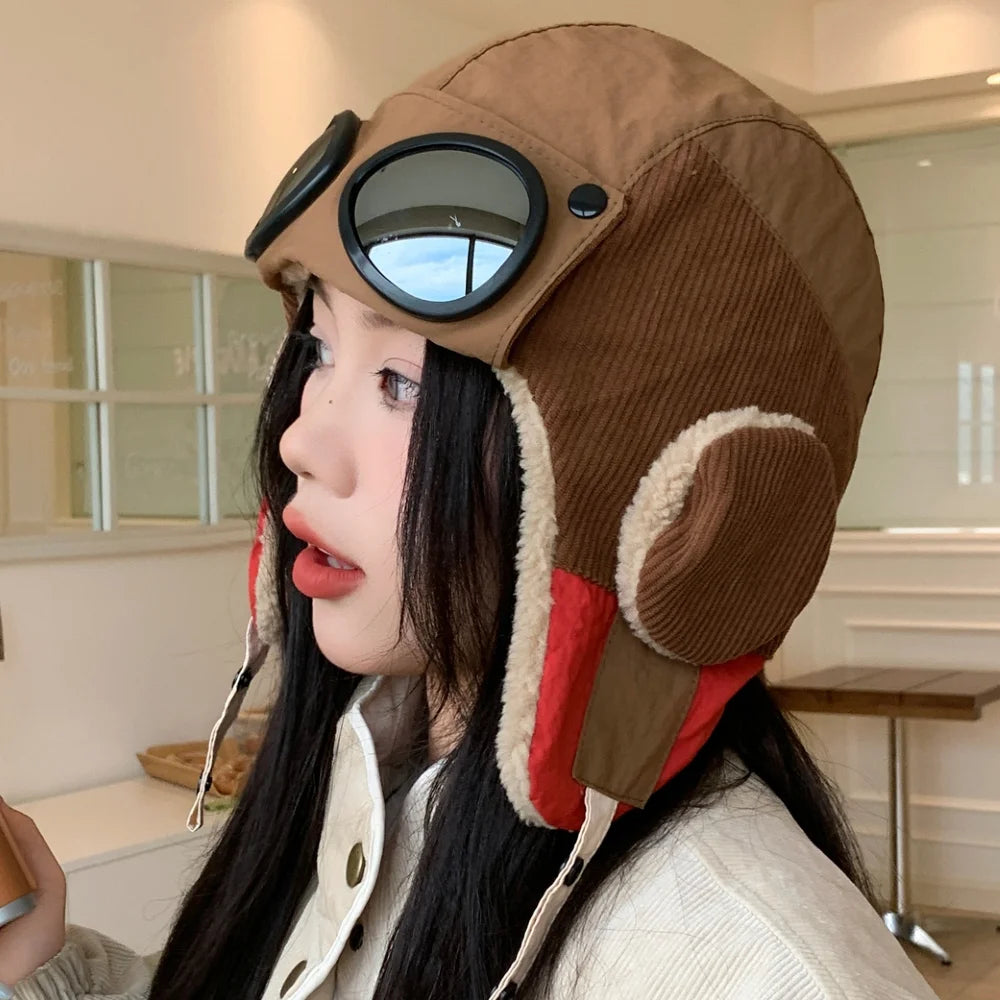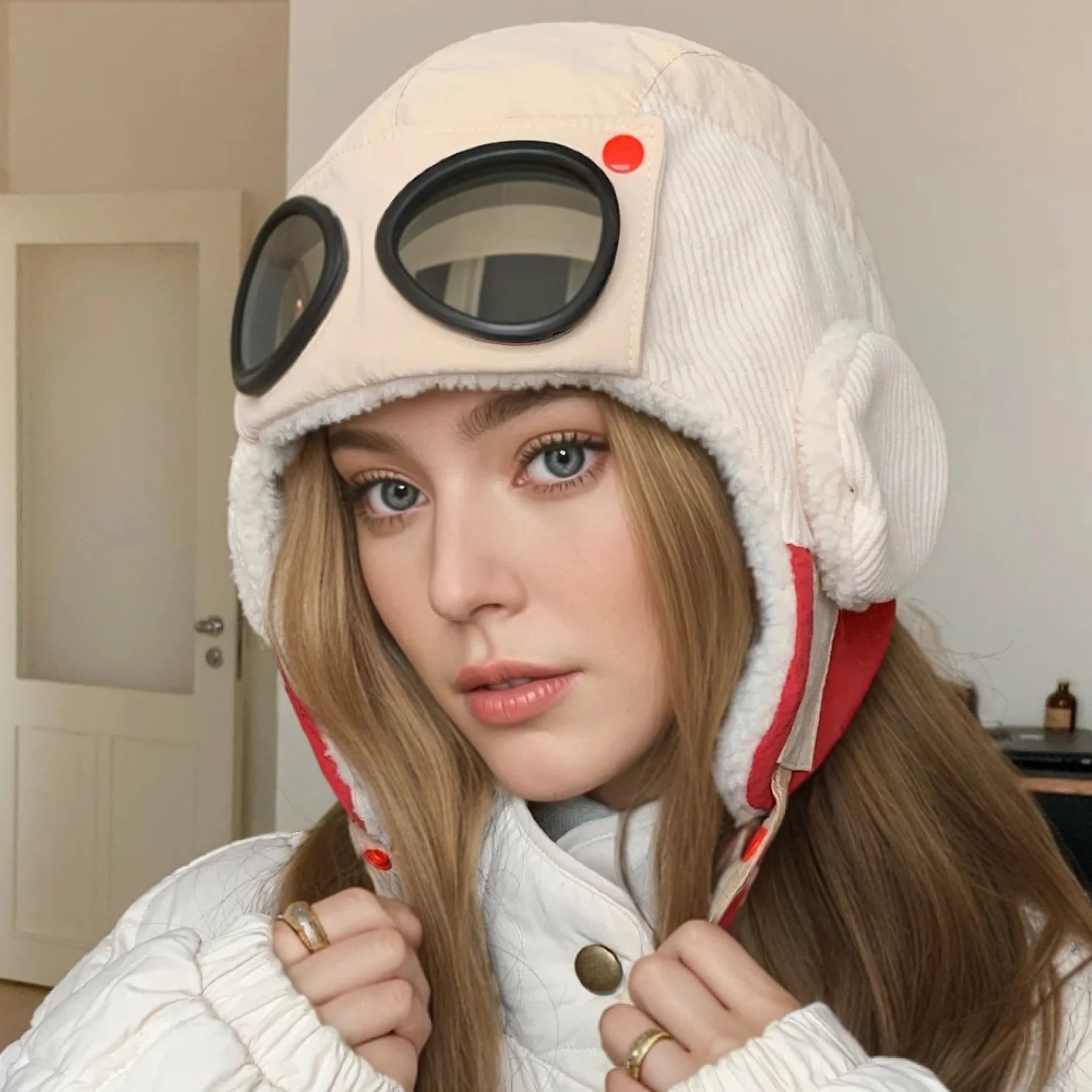 Women Warm Bomber Hats With Goggles Plush Fur Winter Hat With Earflap Winter ...