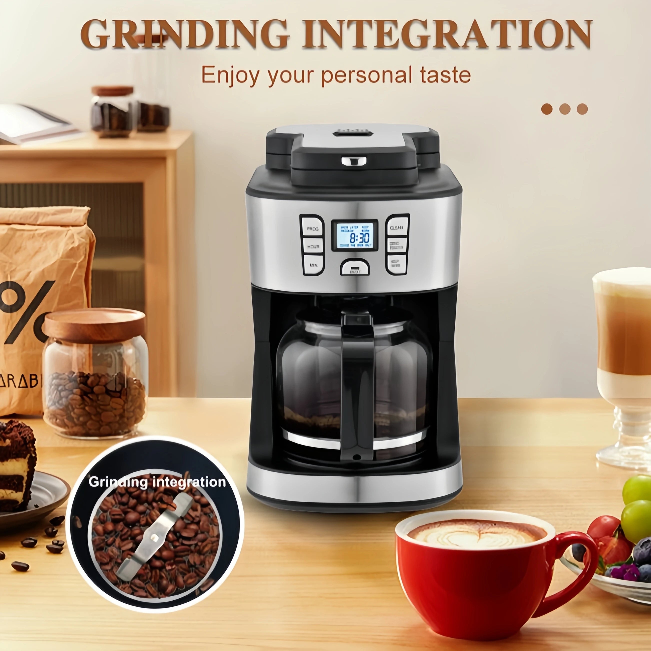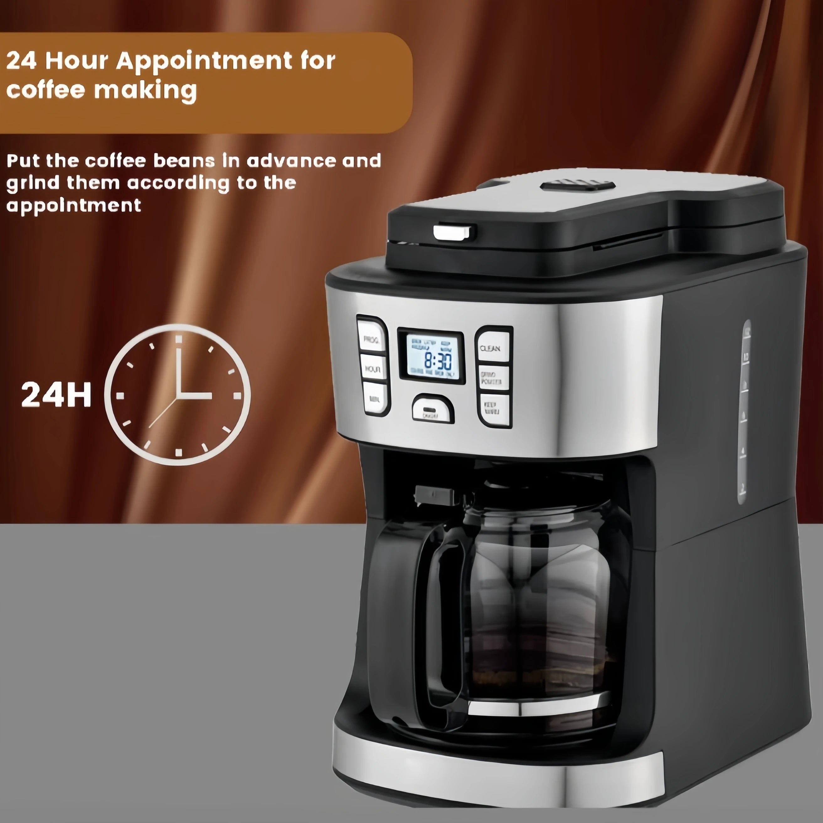 Automatic coffee maker with grinder and timer 220V drip coffee maker for home and office