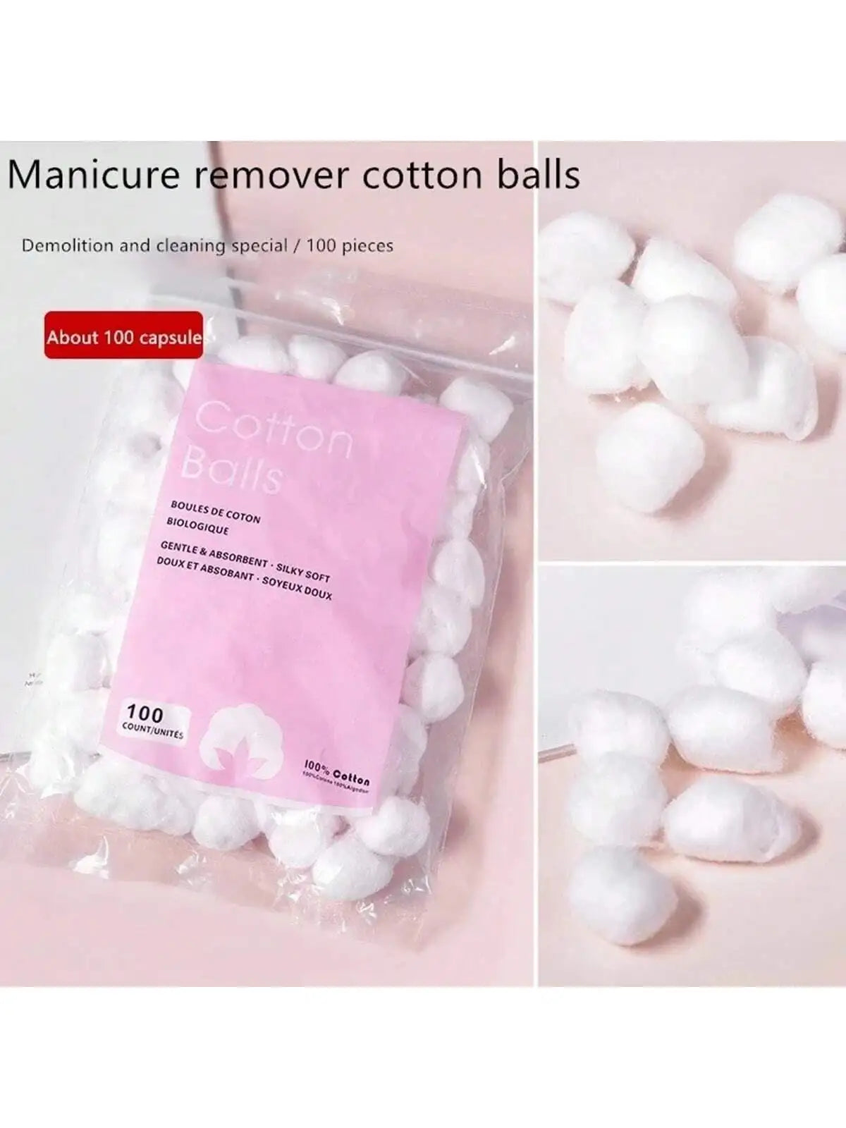50/100/200 Pcs Nail Polish Remover Cotton Wool Balls Cleaning Tool Nail Art C...