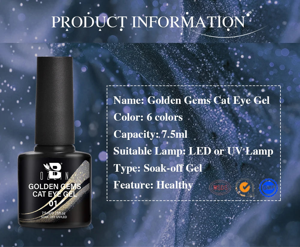 7.5ml Golden Light Magnetic Gel Golden Gems Magnetic Gel Nail Polish Cat Nail...
