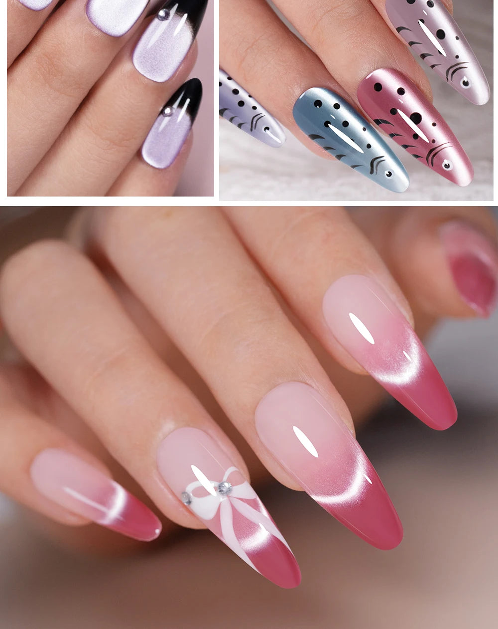 7.5ml Pink Blue Nail Gel Cat eye Semi Permanent Nail Art Soaking UV LED Nail ...