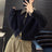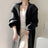 Double Zippers Knitted Cardigan Women Chic Patchwork Shor...