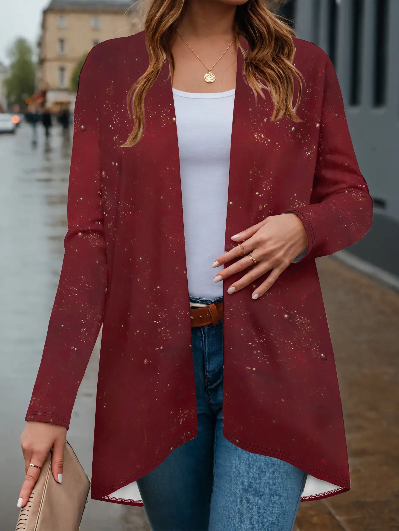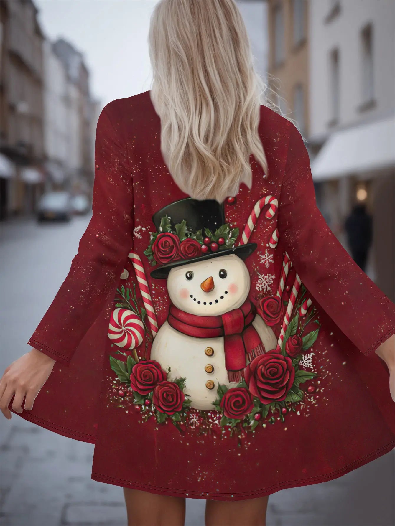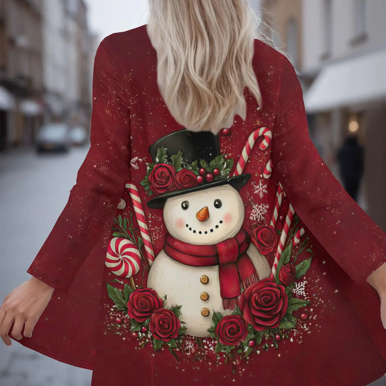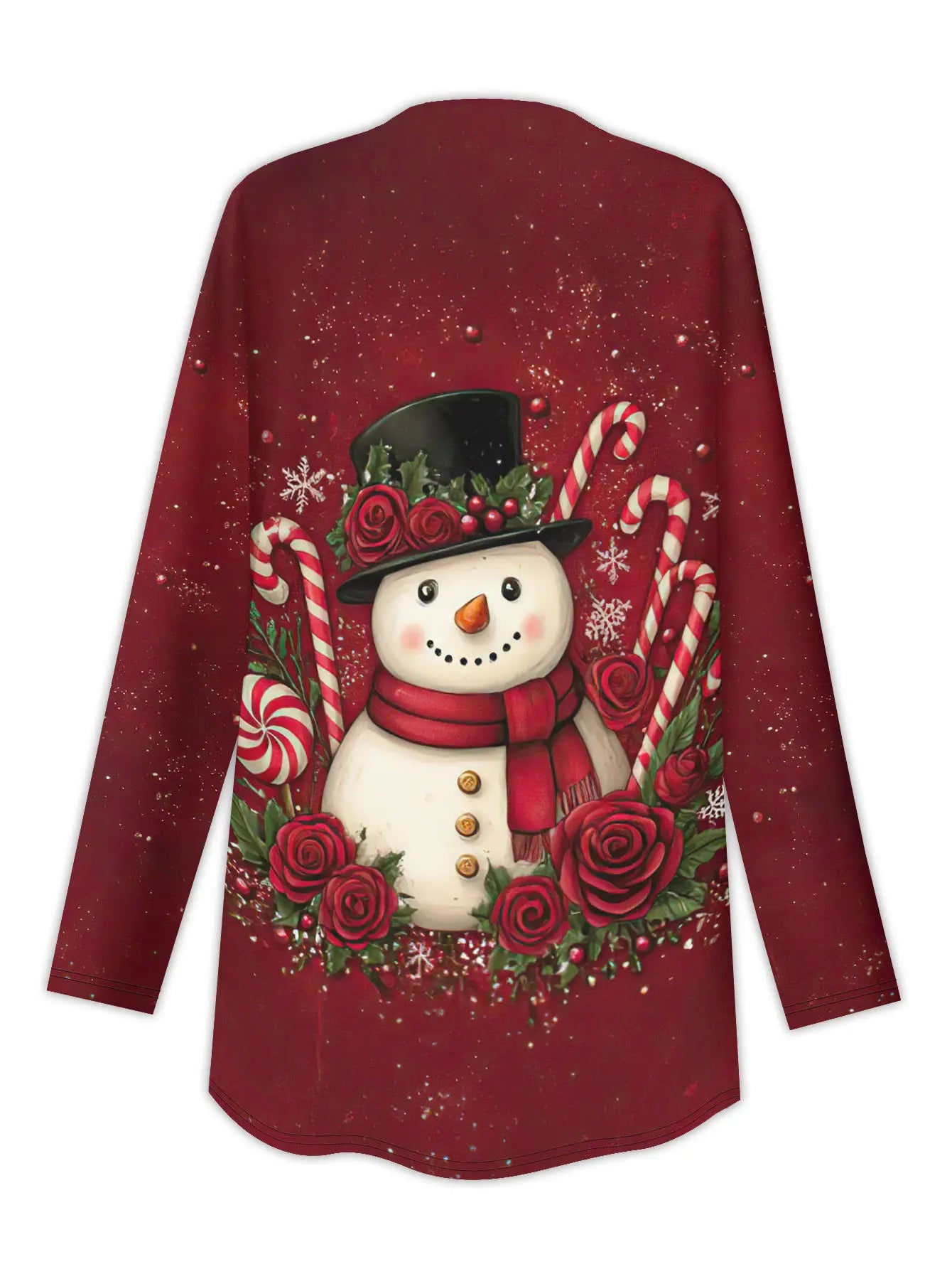christmas theme Women s Snowman Rose Cardigan, Burgundy Red 3D Print, Open Fr...