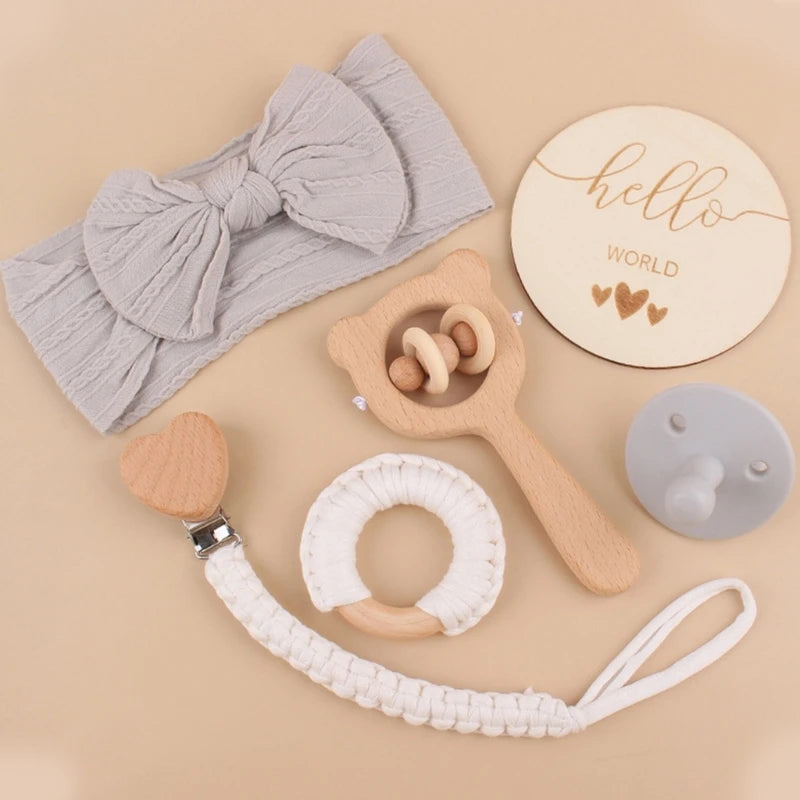 BaBy Photography Props Newborn Milestone Cards Pacifier Chain Bowknot Headban...