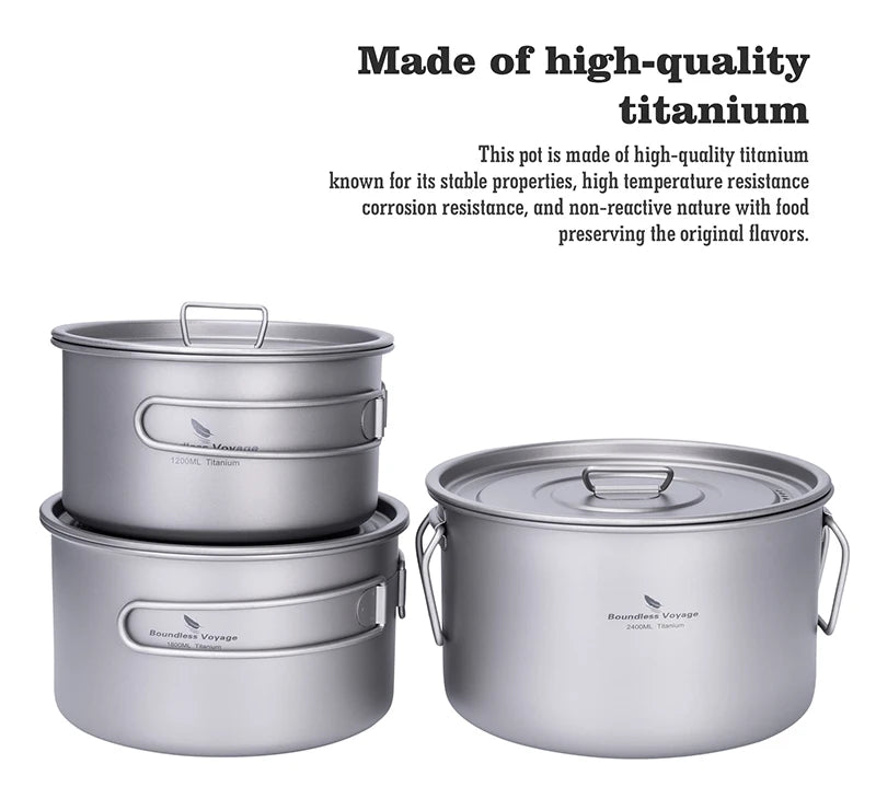 Boundless Voyage 1.2l 1.8l 2.4l Titanium Pot 0.7l Camping Kettle Cookware Out...