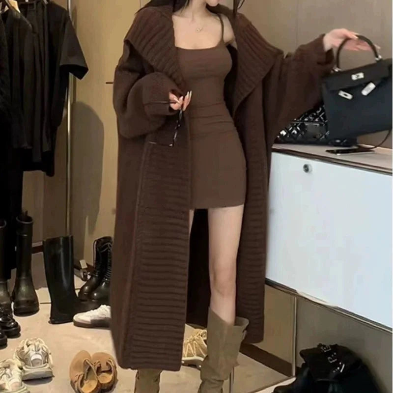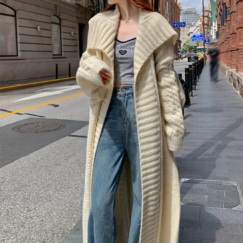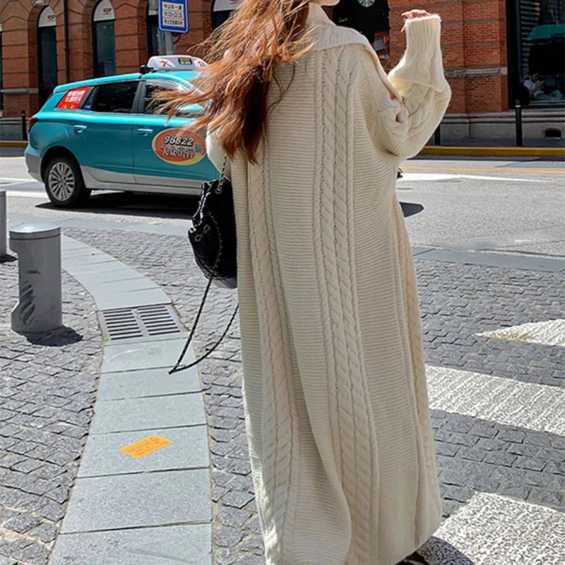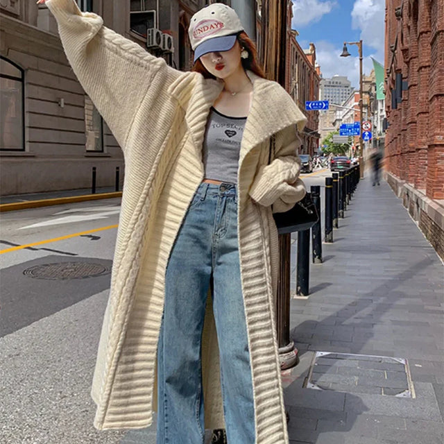 Casual Turn Down Collar Cardigan Women Autumn Winter Loose Ribbed Long Knitted Cardigan Woman Thicken War...