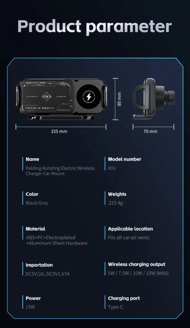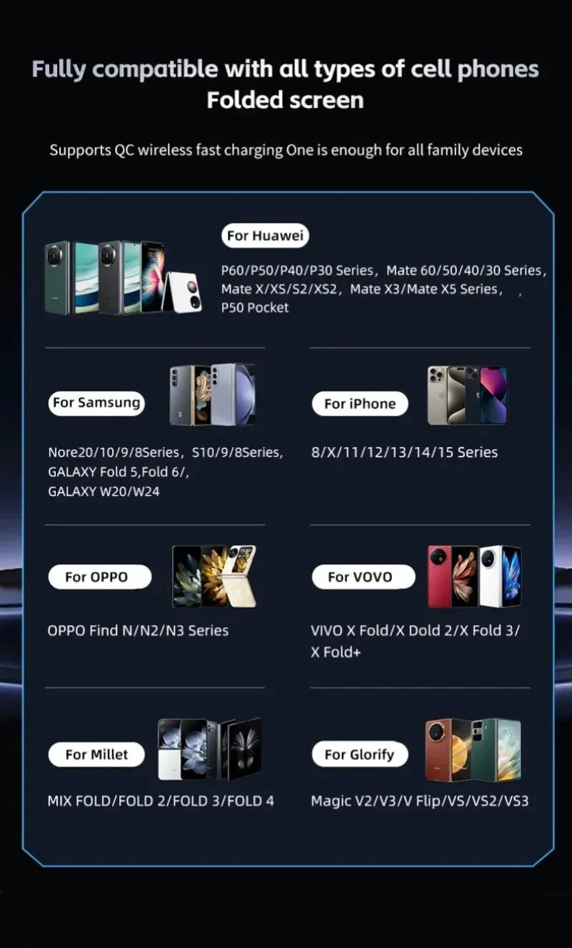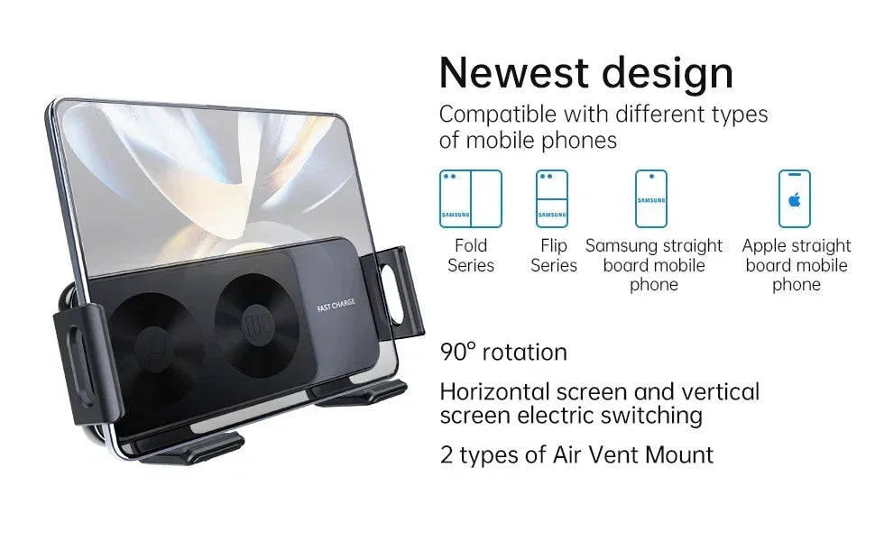 Dual Coil Fold Screen Car Fast Wireless Charger Stand For Samsung Galaxy Z
