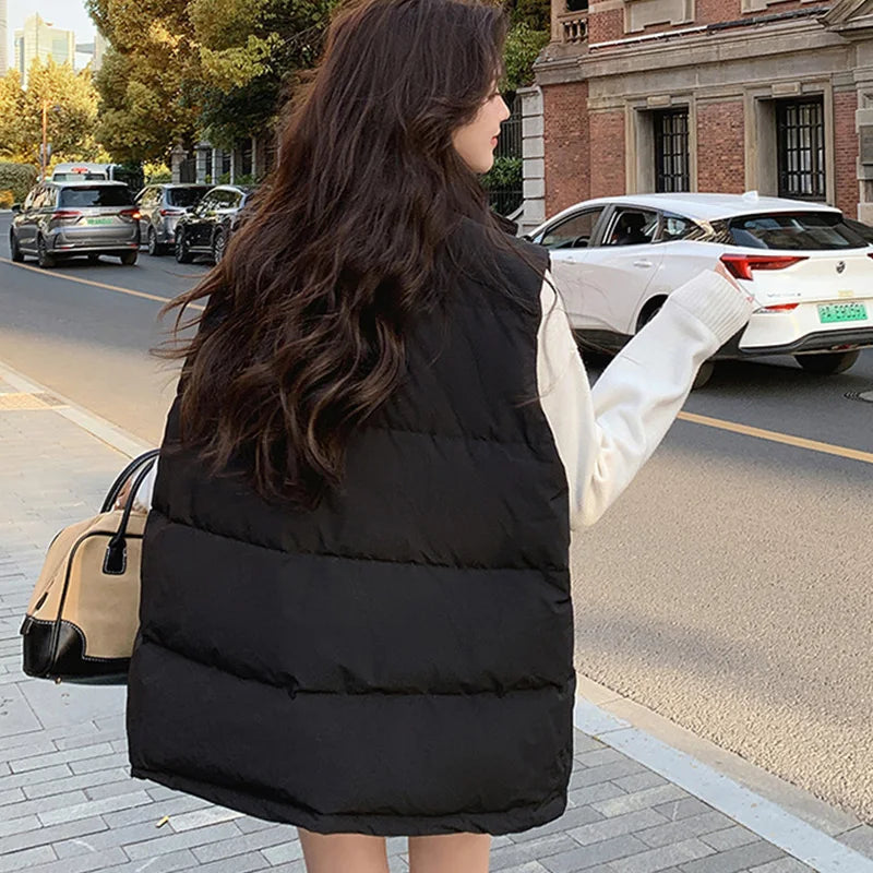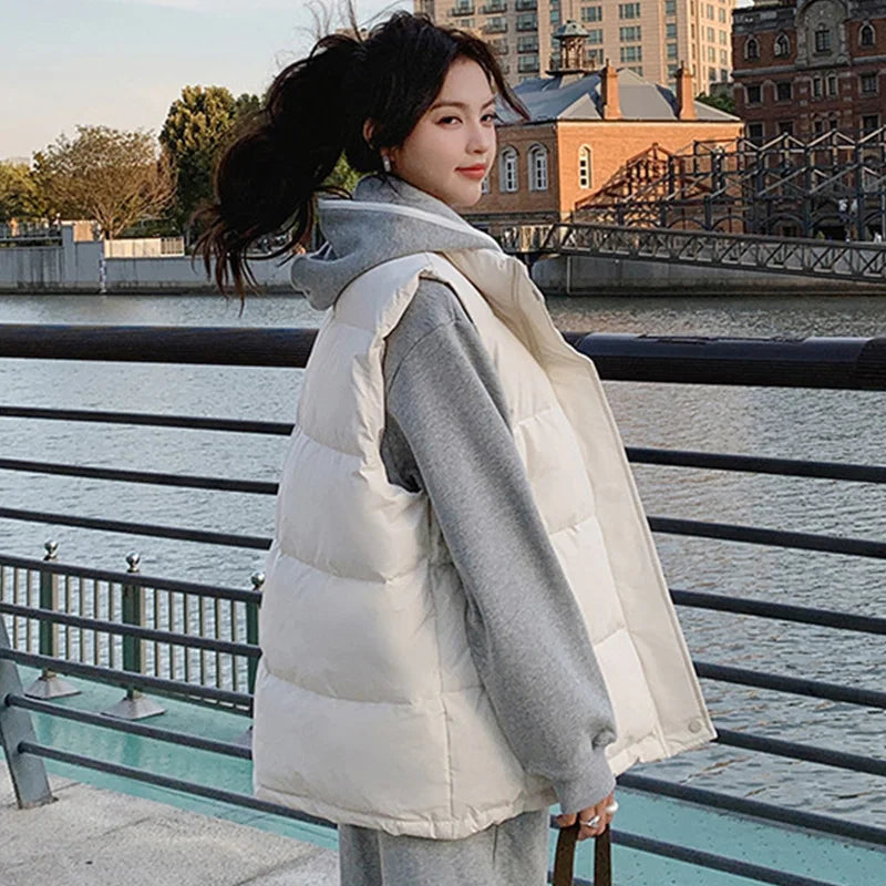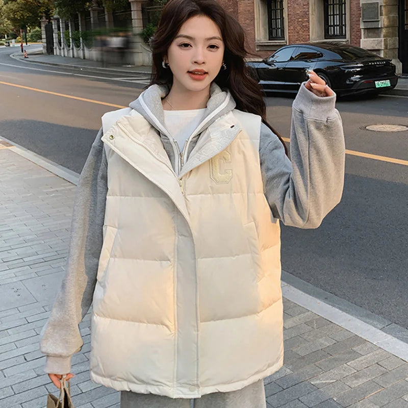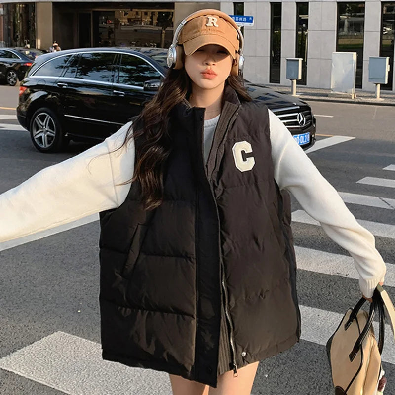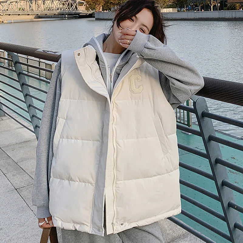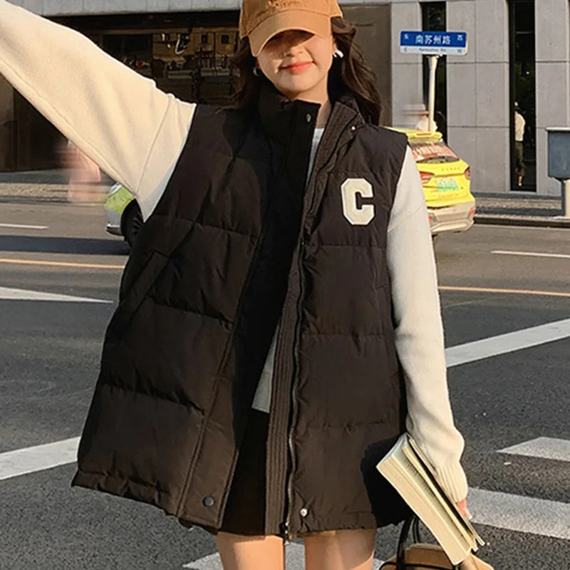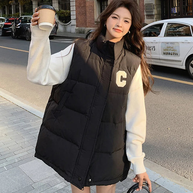 Fashion Letter Detor Cotton Vest Women Autumn Winter Stand Collar Sleeveless Parkas Woman Loose Thicken W...