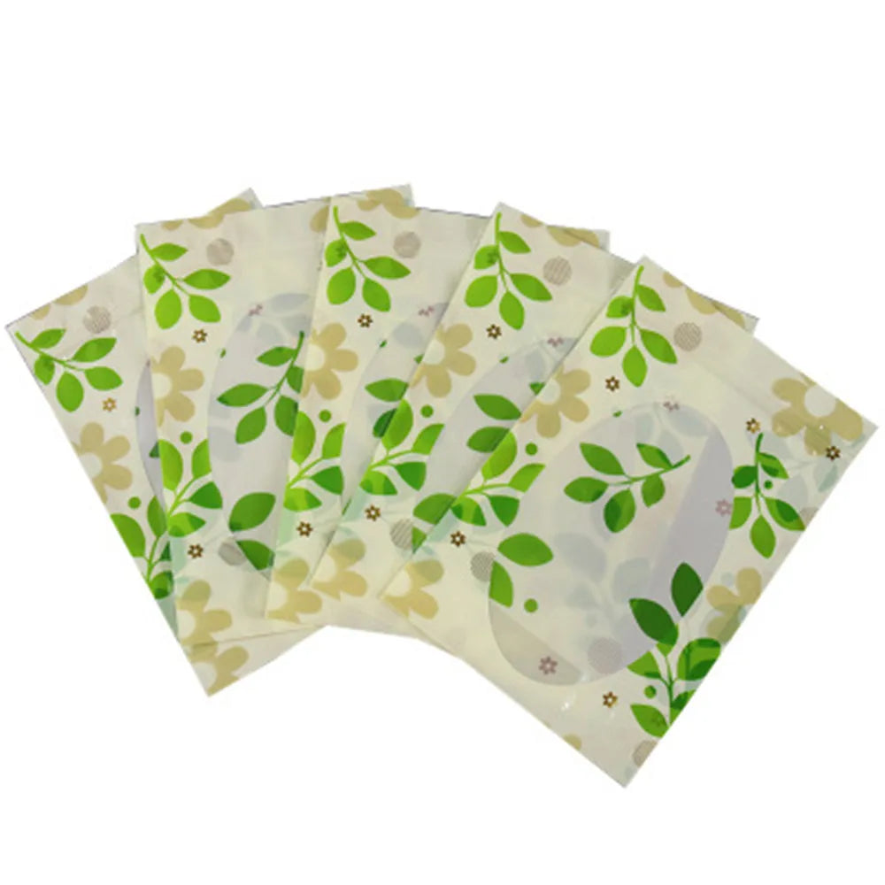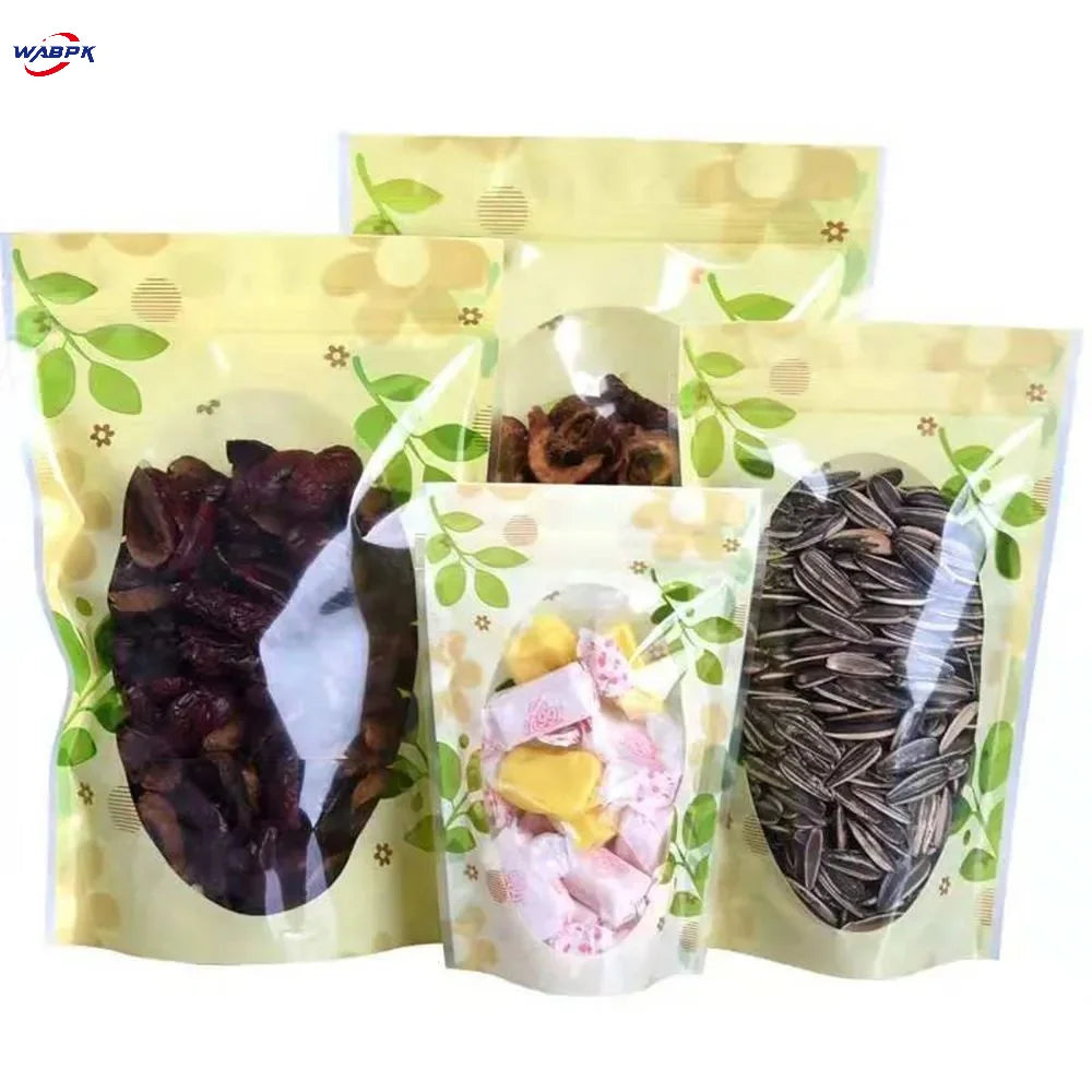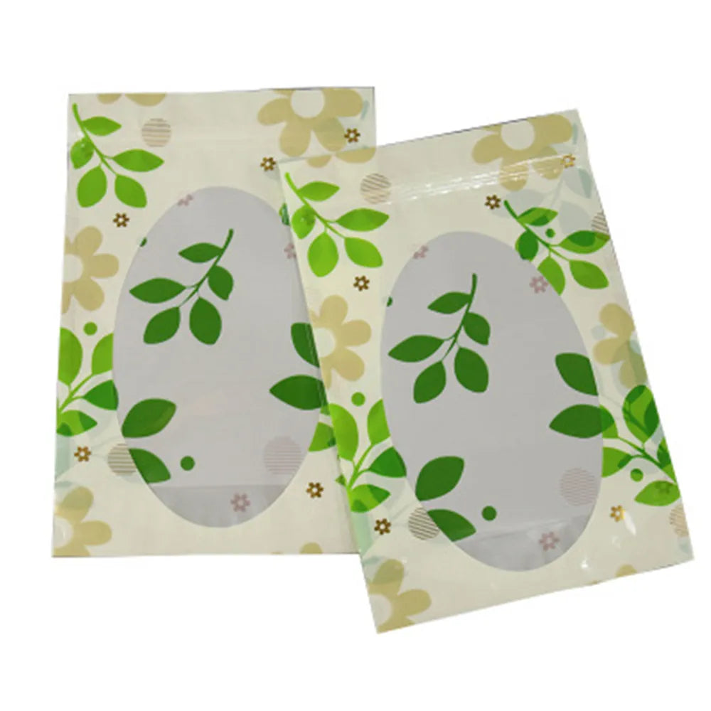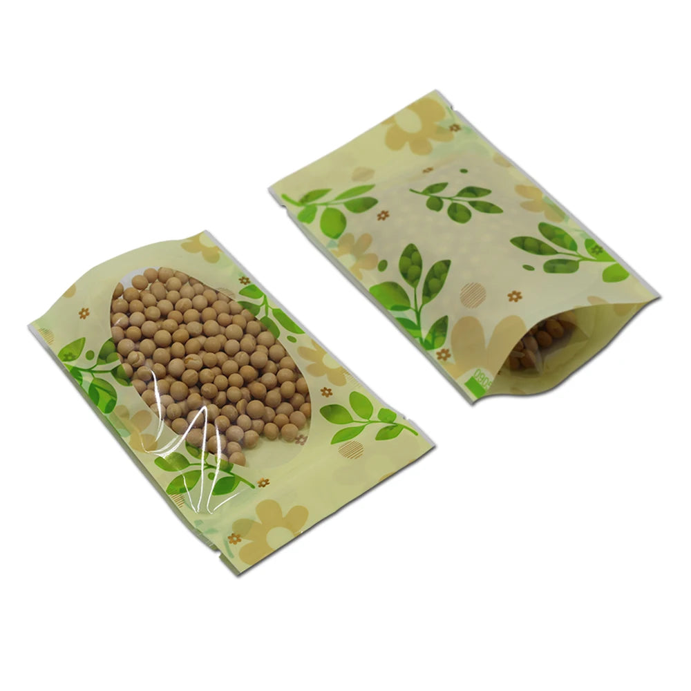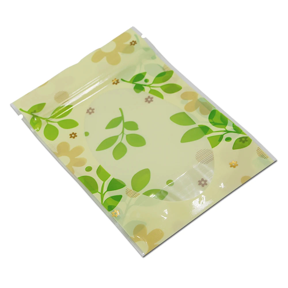 Green Leaf Printed Zip Lock Stand Up Bag, Clear Window, Self Seal, Tear Note,...
