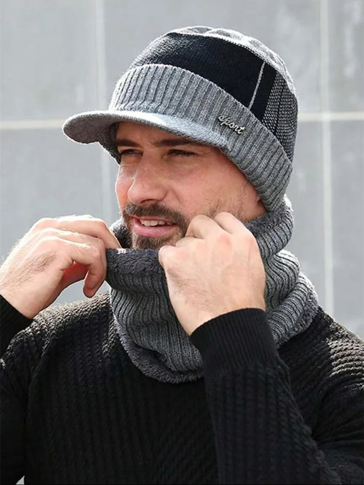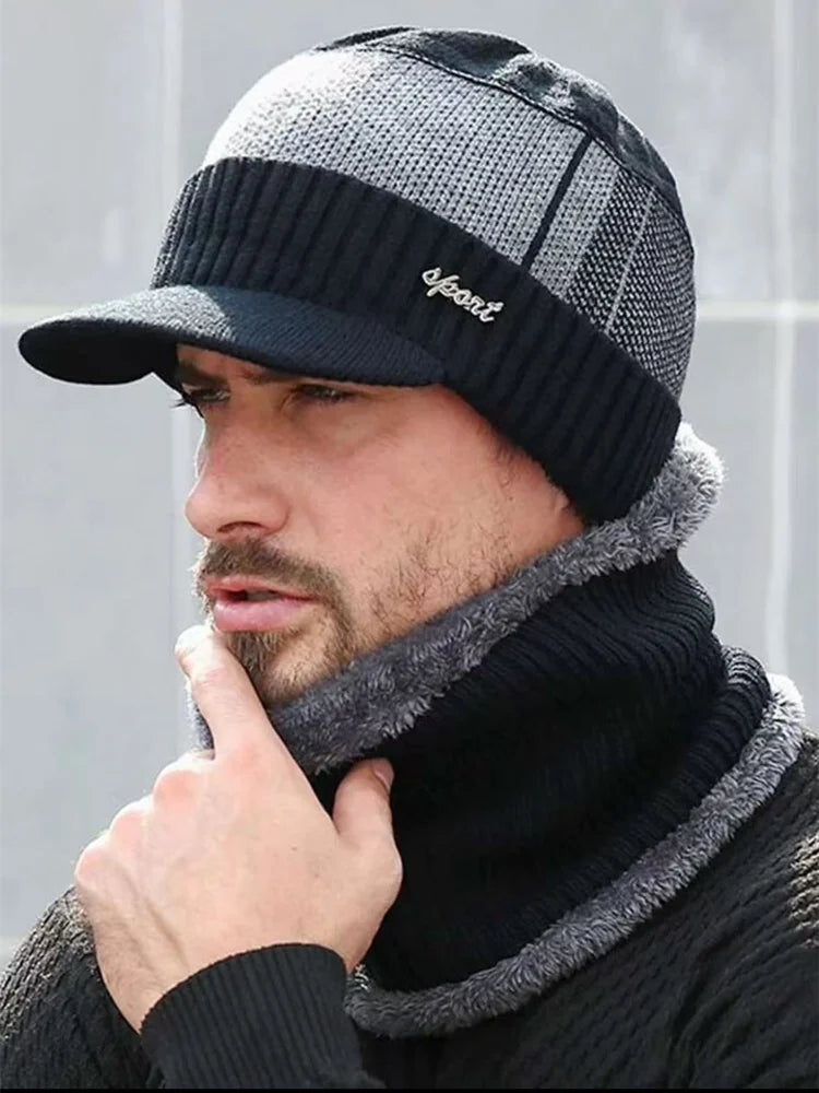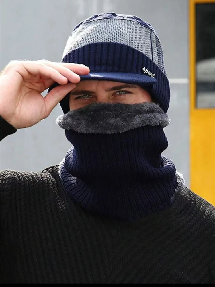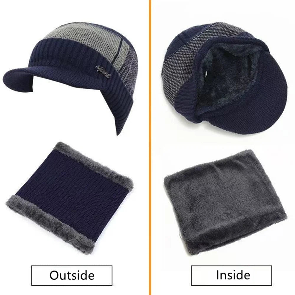 Men Winter Warm Suit Classic Plush Fur Lined Winter Hat Male Outdoor Keep War...