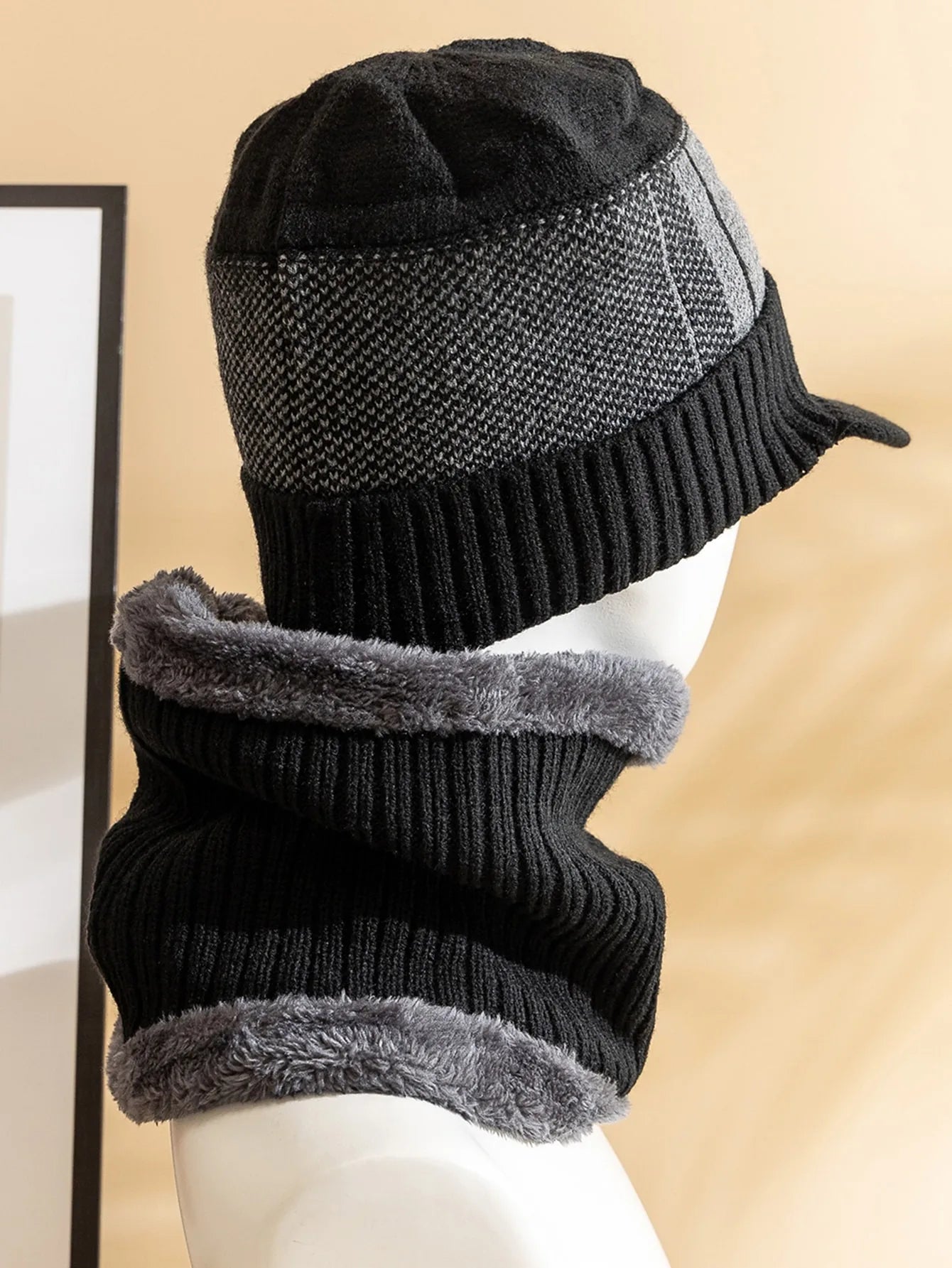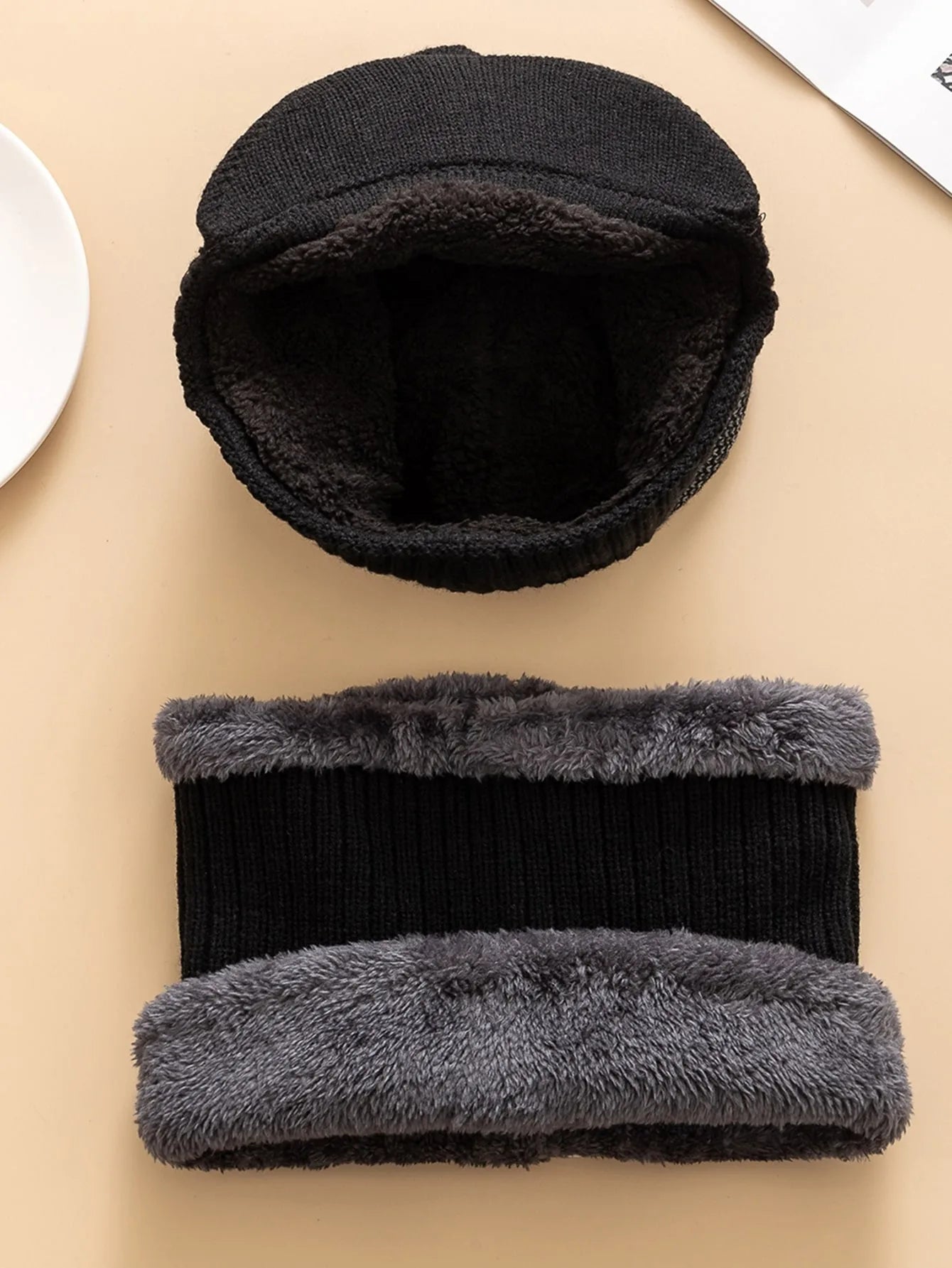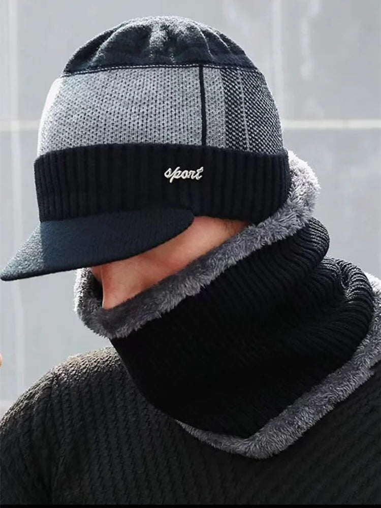Men Winter Warm Suit Classic Plush Fur Lined Winter Hat Male Outdoor Keep War...