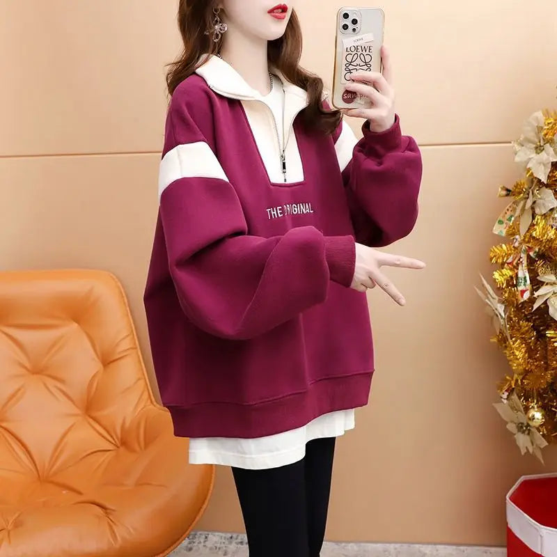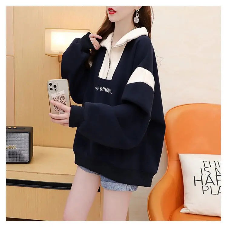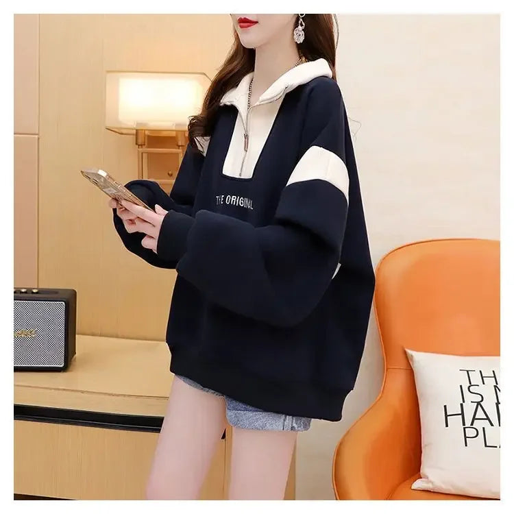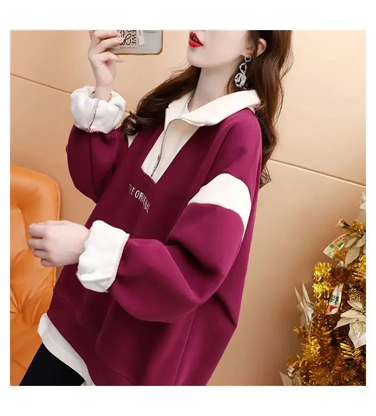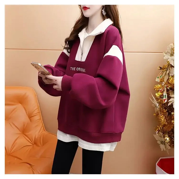 Large Size Velvet Sweatshirt Loose Western Style Top Jacket