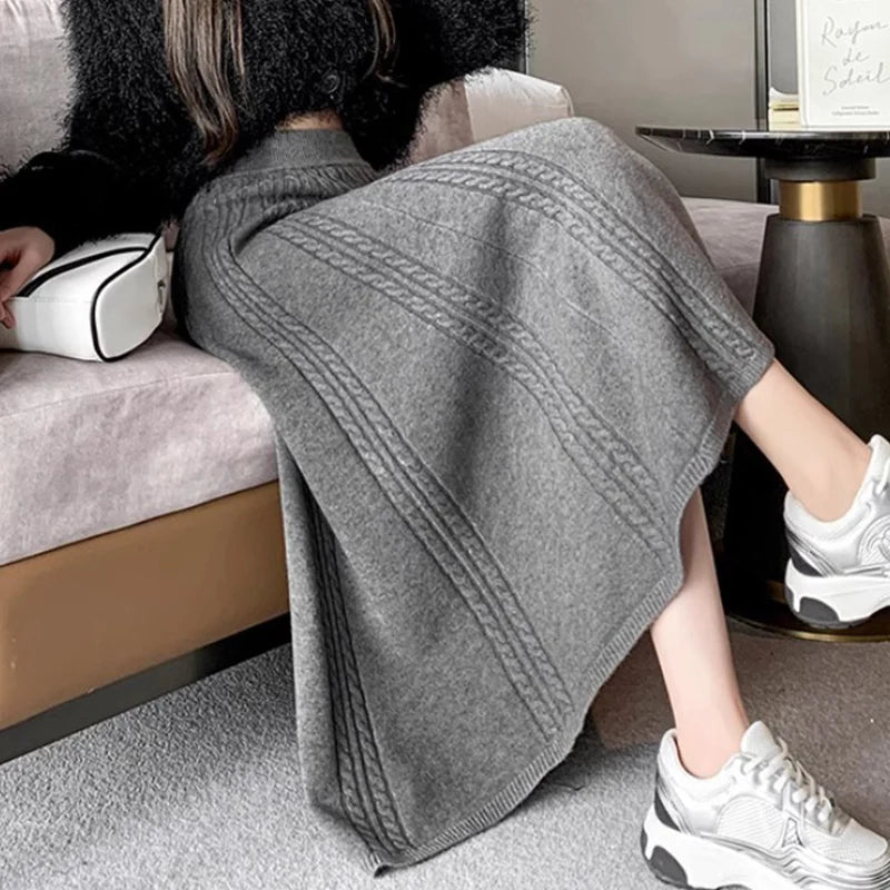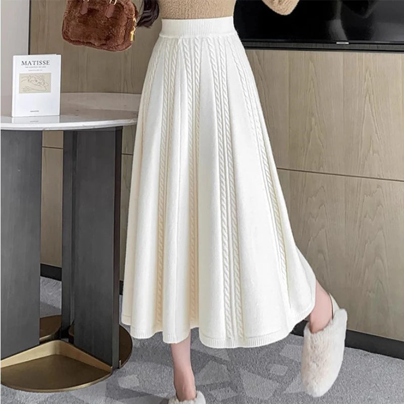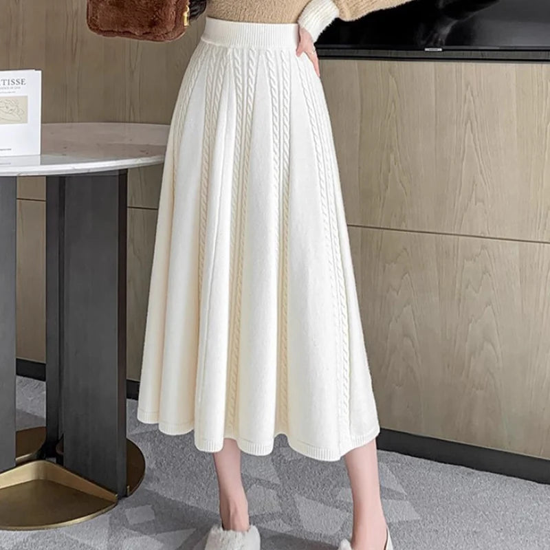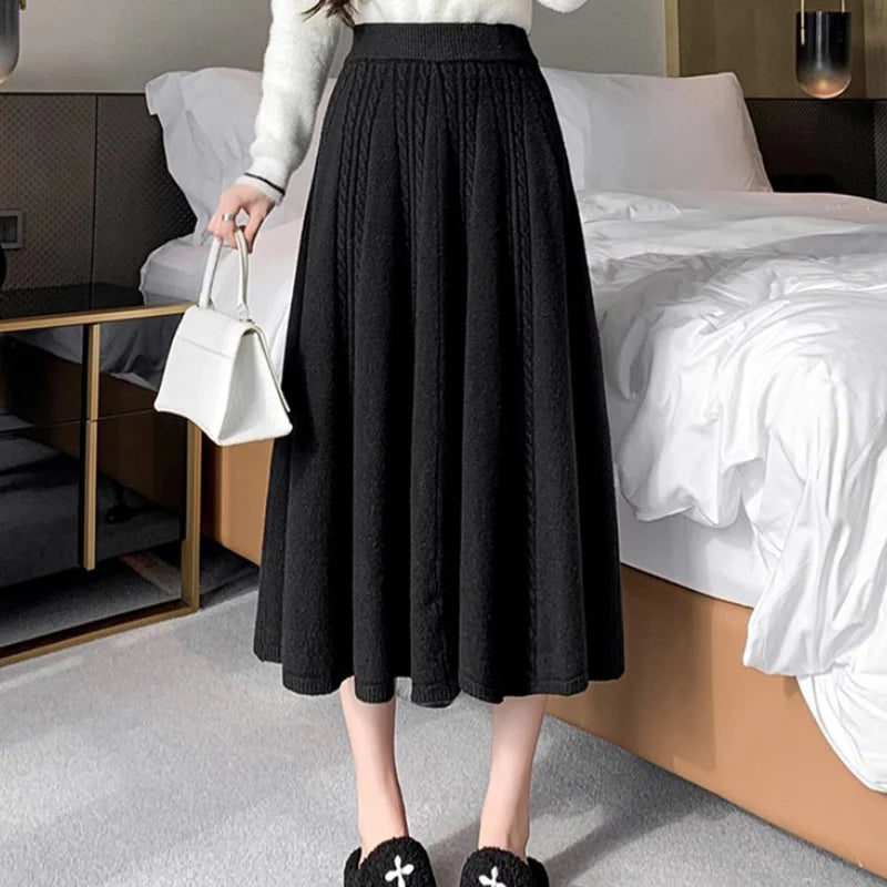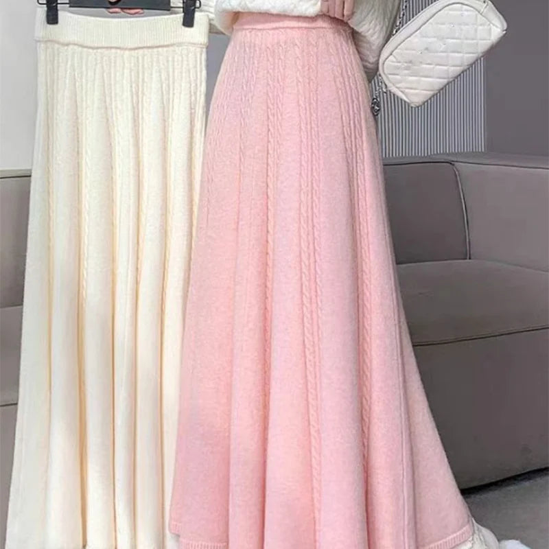 Loose Elastic Waist A-Line Skirts Women High Waist Pleated Sweater Skirts Woman Casual Solid Color Ribbed...