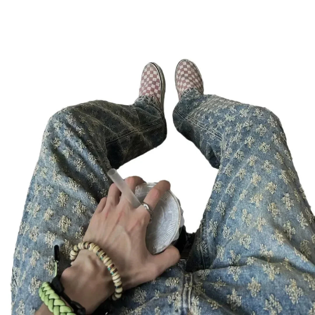 Trendy Streetwear Jeans Men s Straight Leg Loose Fit Denim Pants Design Sensa...