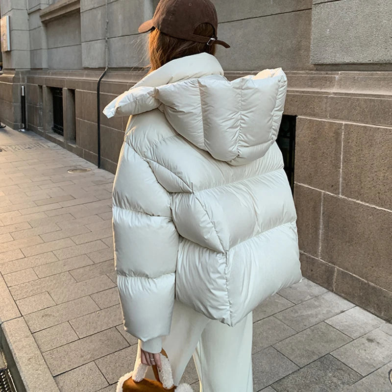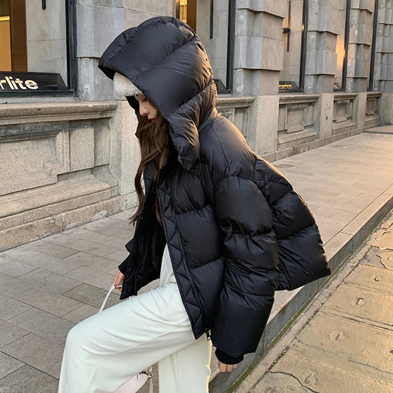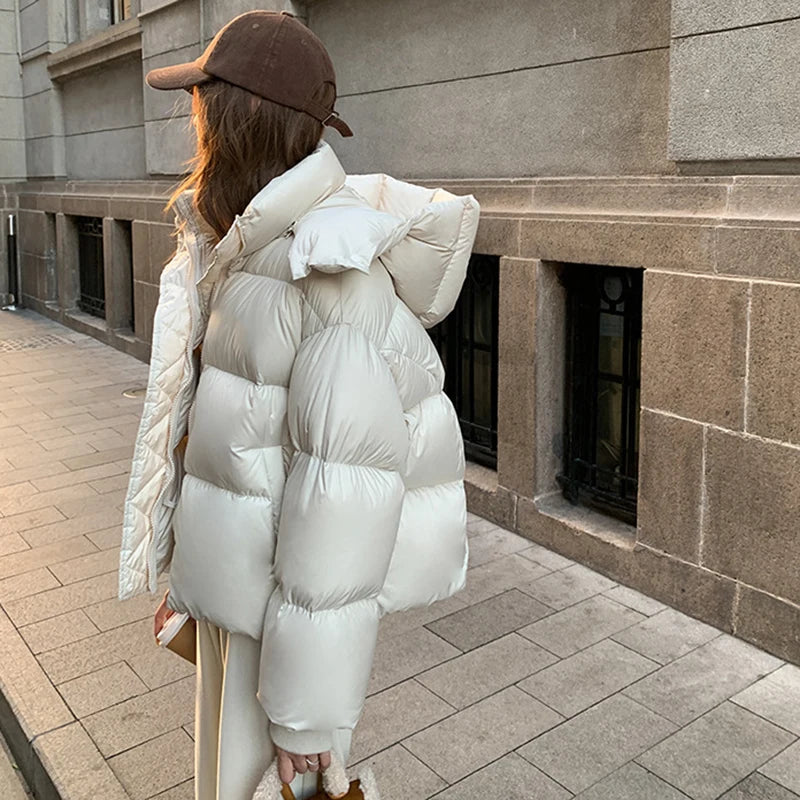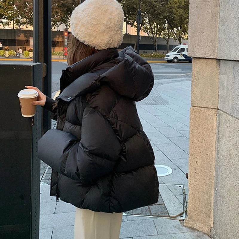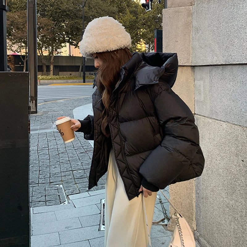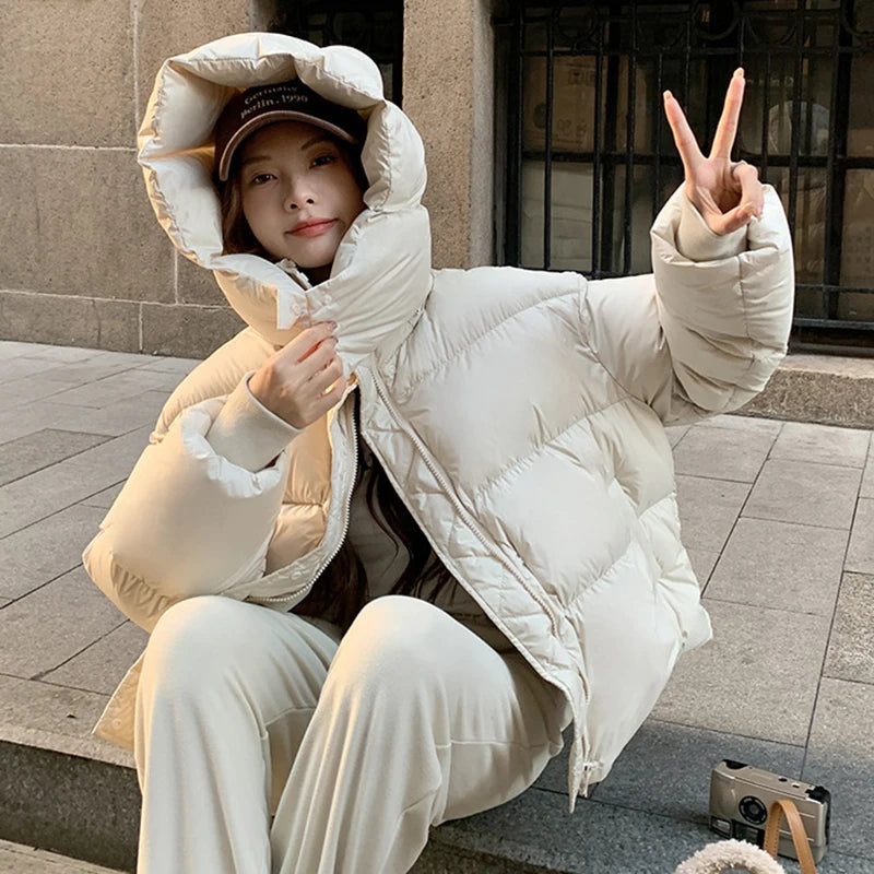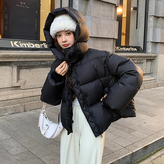 Winter Zipper Up Puff Hooded Parkas Women Korean Stand Collar Short Down Cotton Jacket Woman Long Sleeve ...