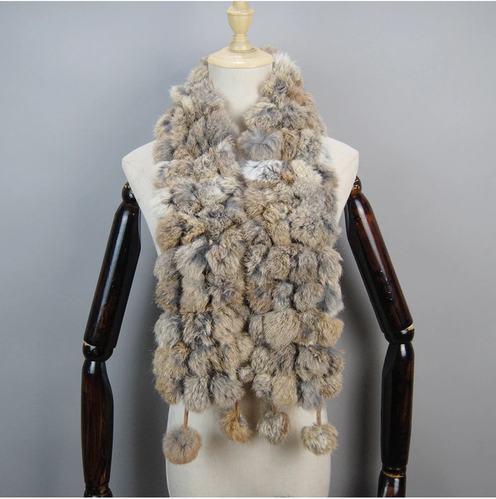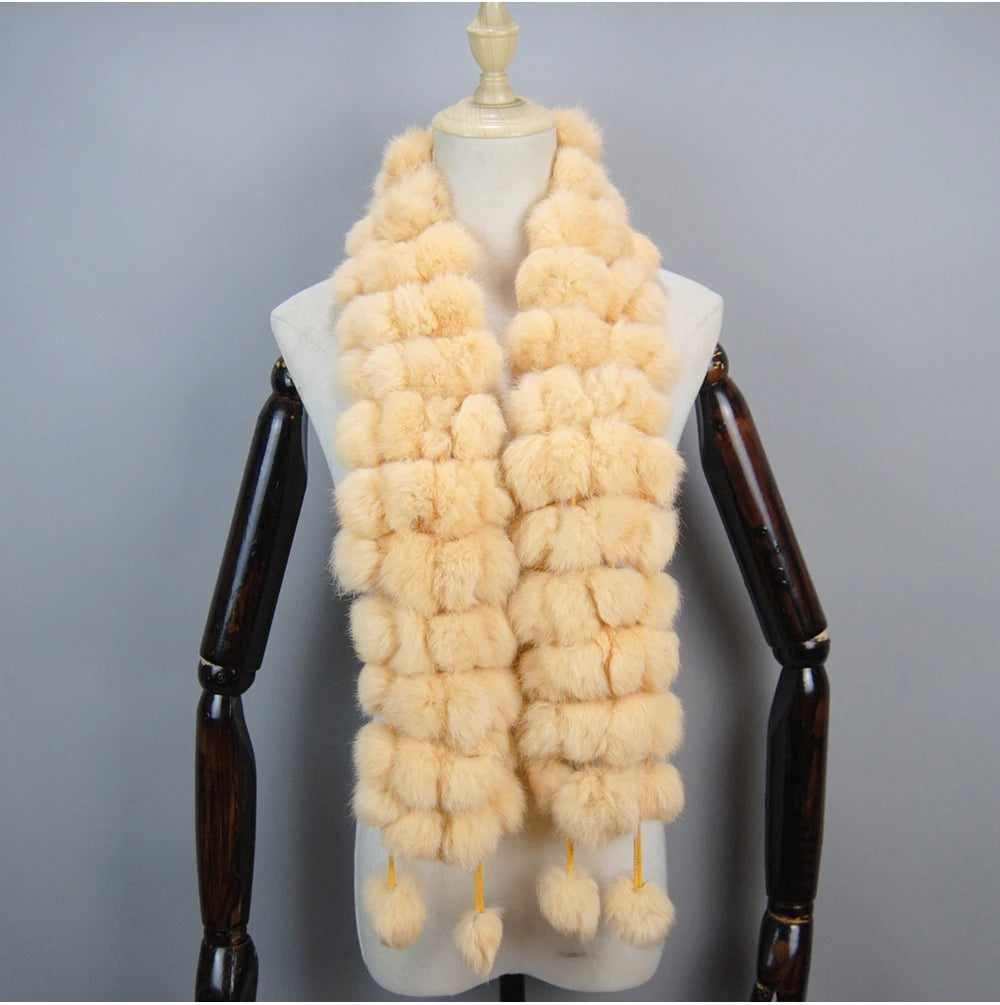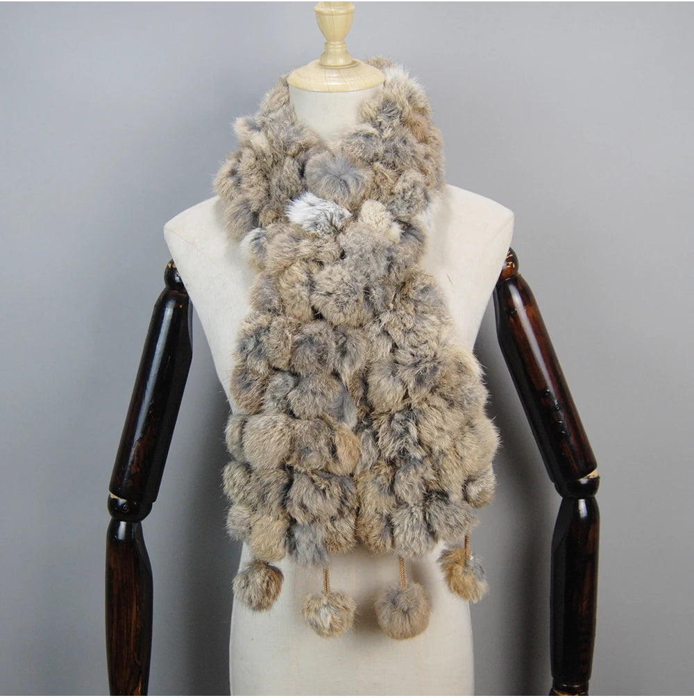Women Winter Warm Real Rabbit Fur Scarf Natural Rabbit Fur Muffler Lady 100 F...