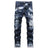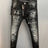 Washed Denim Jeans Men s Trendy Brand Patched Black Hole ...