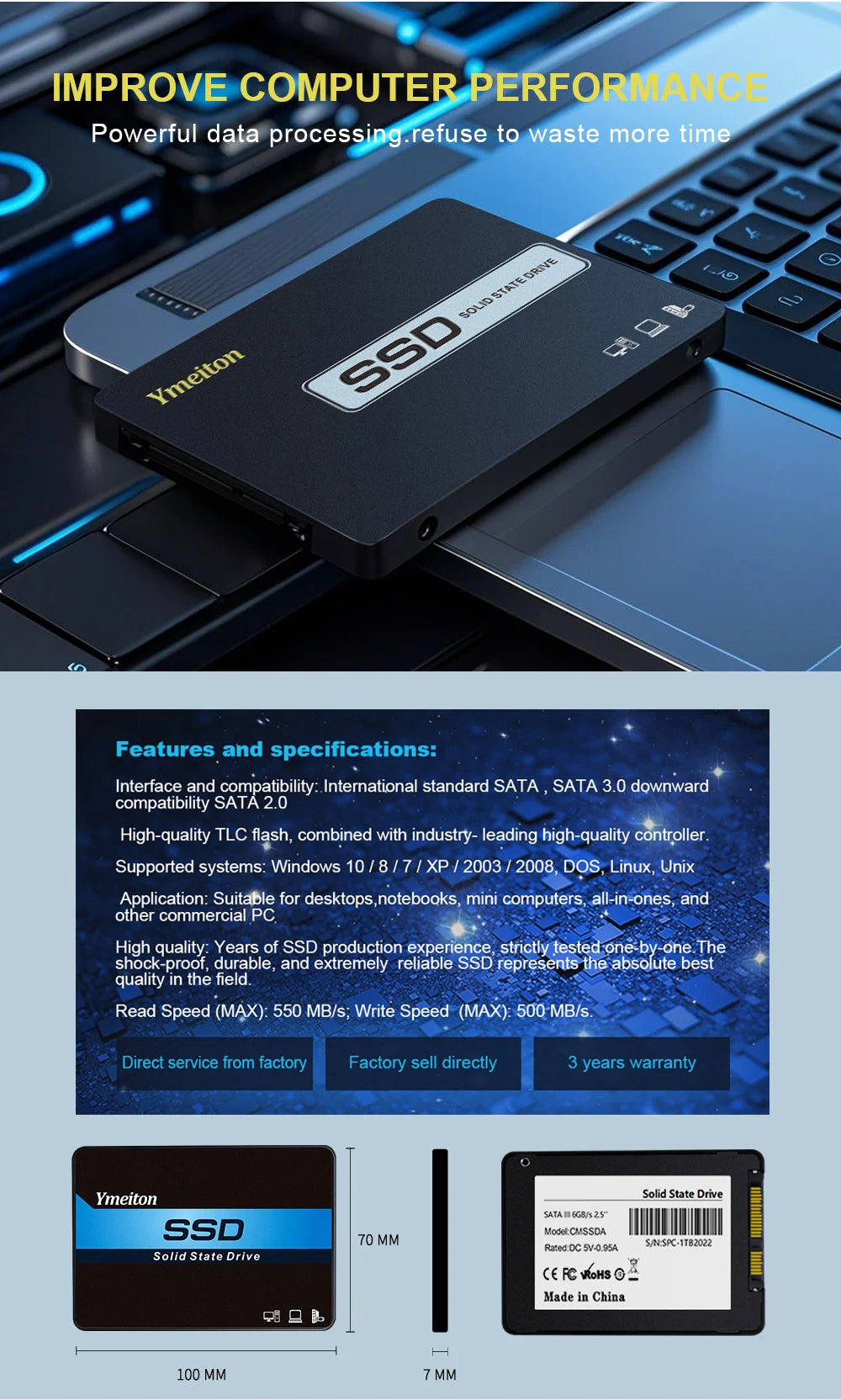 Ymeiton SSD 5pcs SSD Custom 128 Go 256 Go Disque dur 2,5" Disque SSD interne ...
