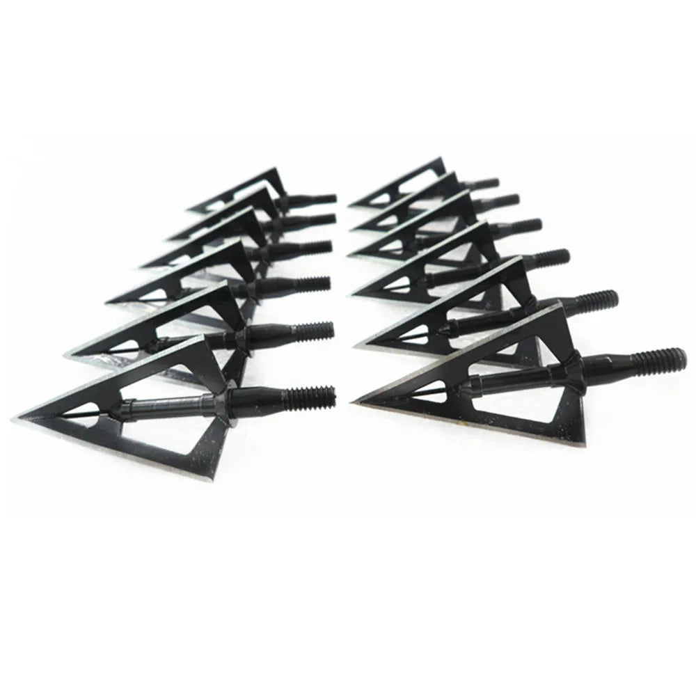 3 6 12 24 60pcs Broadheads Hunting 3 Blades Arrowheads Black Tip Steel For Bow