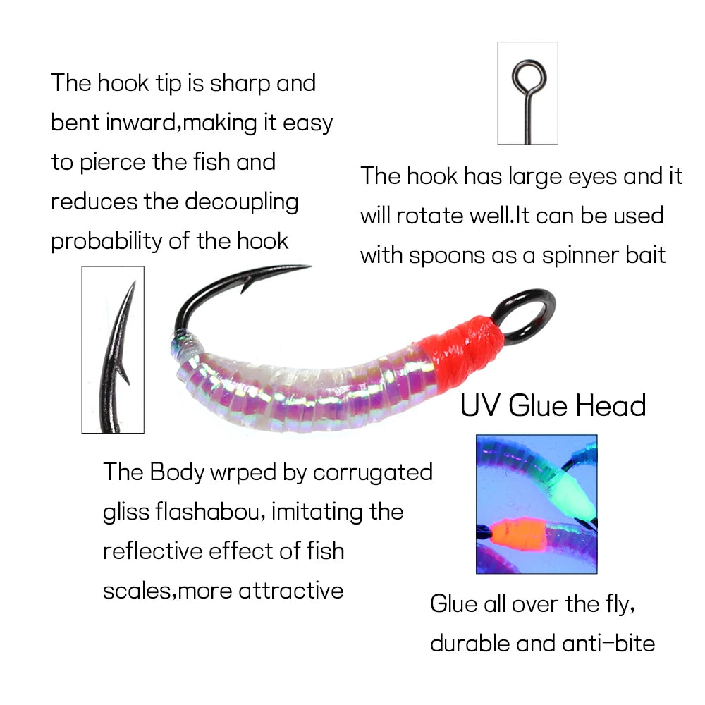 Bimoo 9pcs 8# 10# 12# UV Flashabou Gliss Body Nymphs with Big Eye Hook