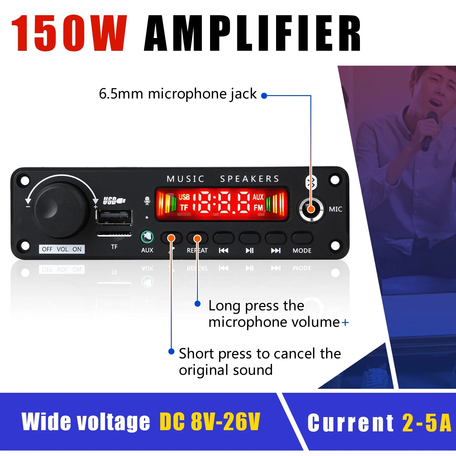 Bluetooth 5.0 MP3 Decoder Board 160w 150w Amplifier Audio Player 12V DIY MP3