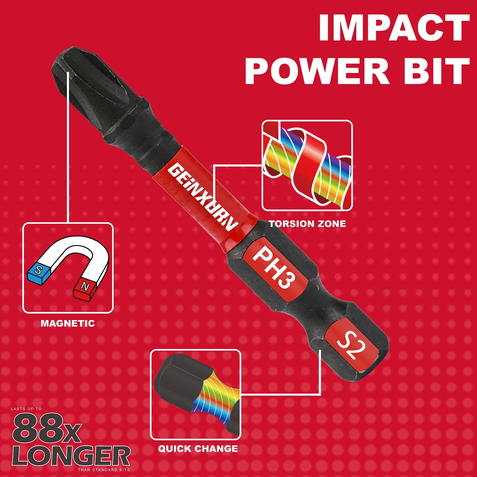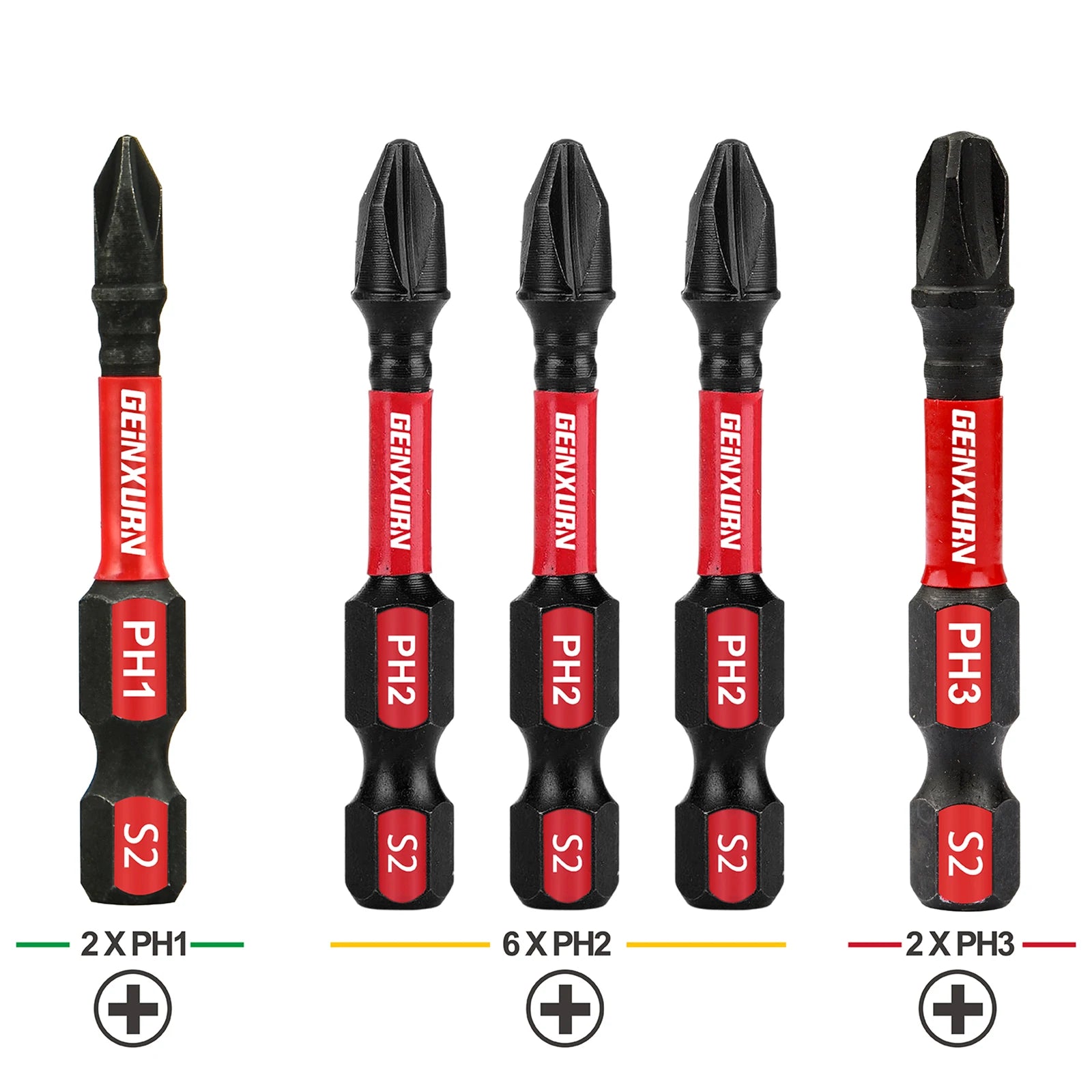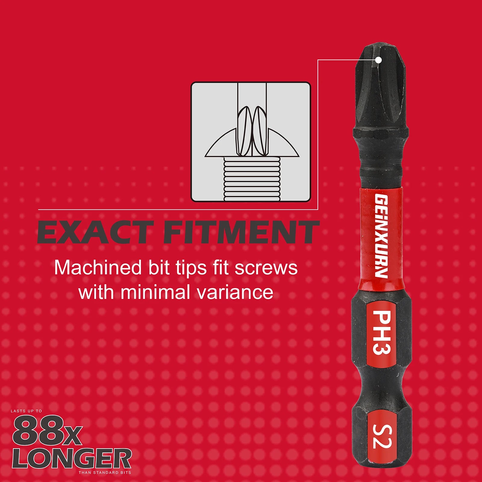 Geinxurn 2 in. Impact Tough #1#2 #3 Phillips Screwdriver Bits Set, S2 Alloy
