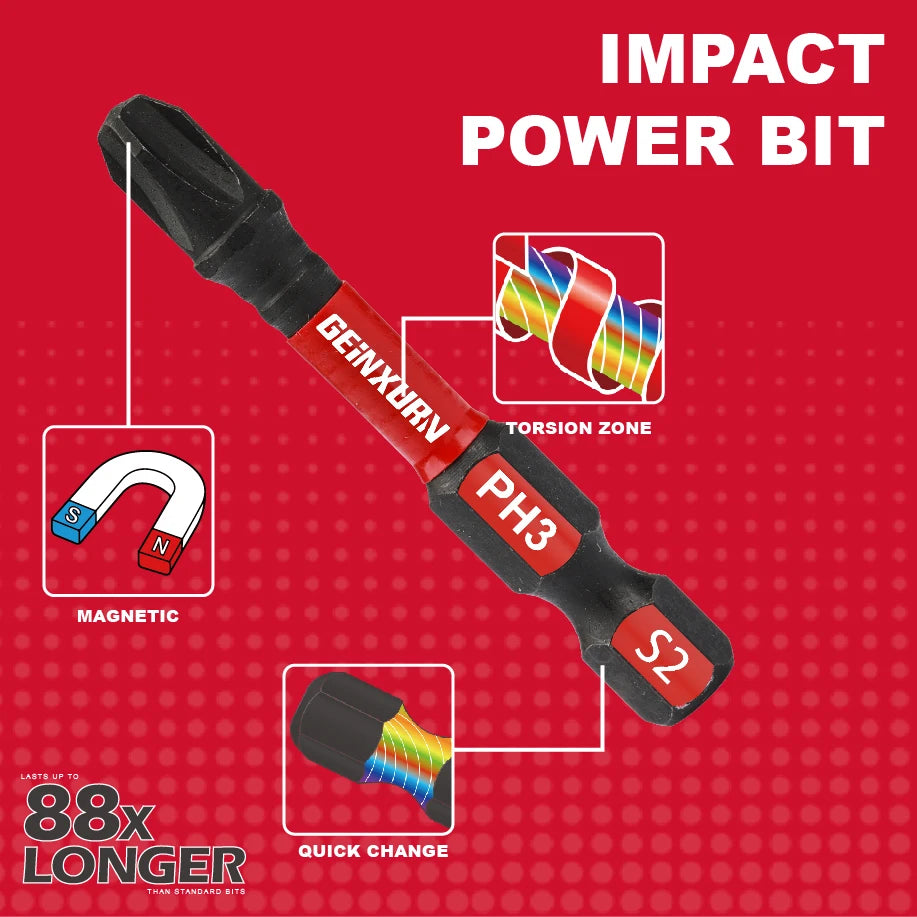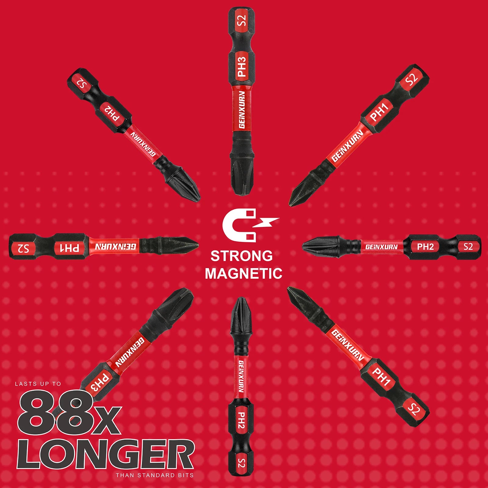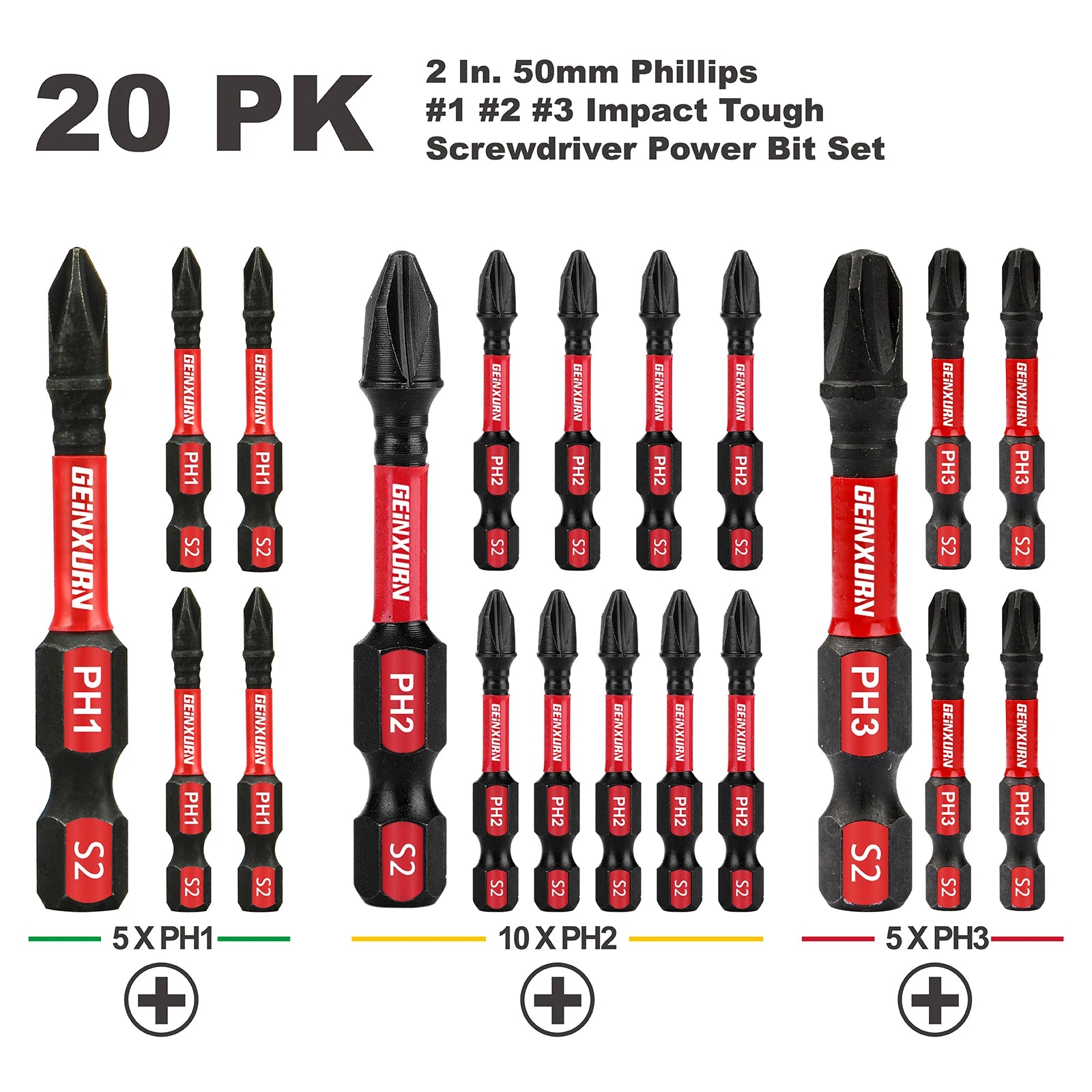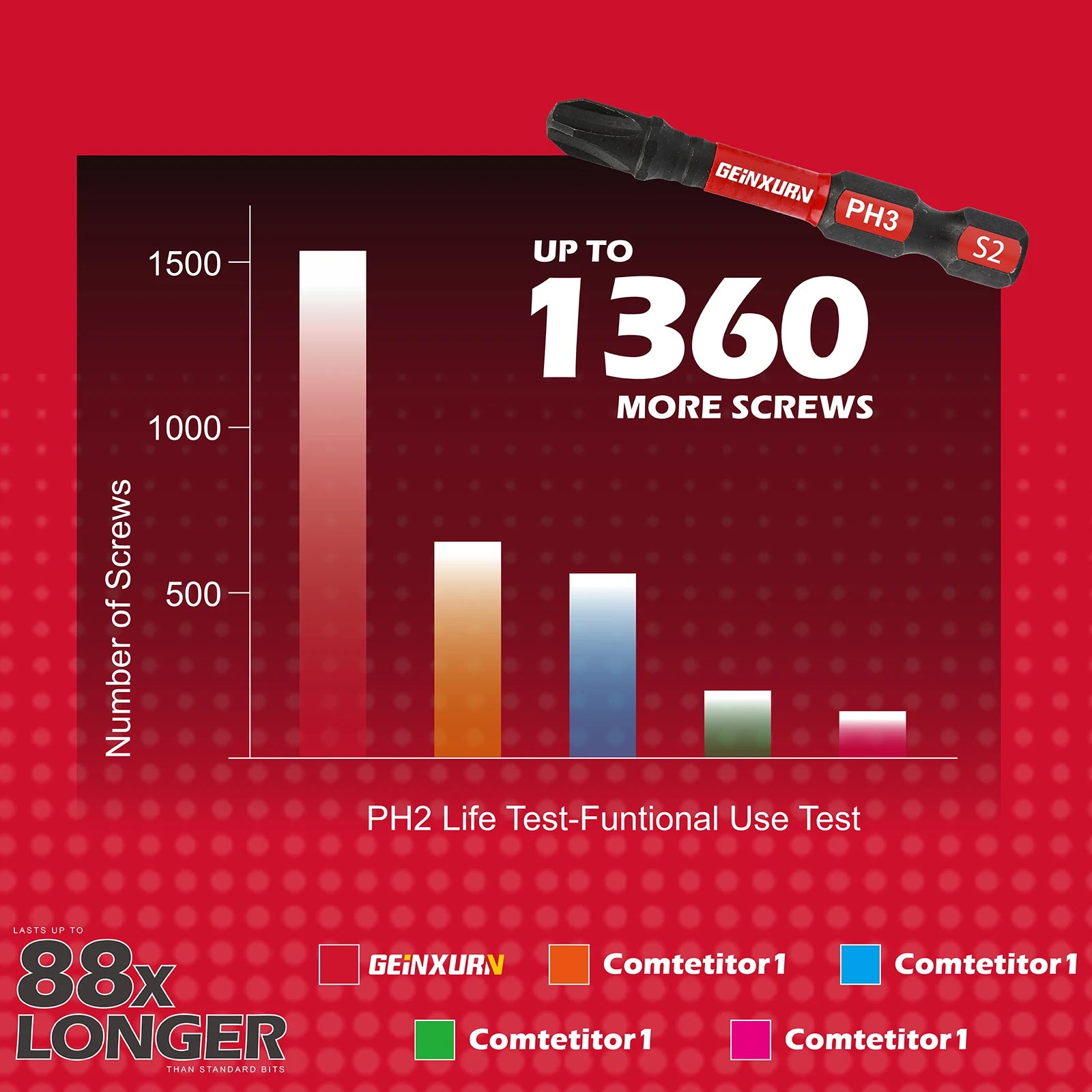 Geinxurn 2 in. Impact Tough #1#2 #3 Phillips Screwdriver Bits Set, S2 Alloy