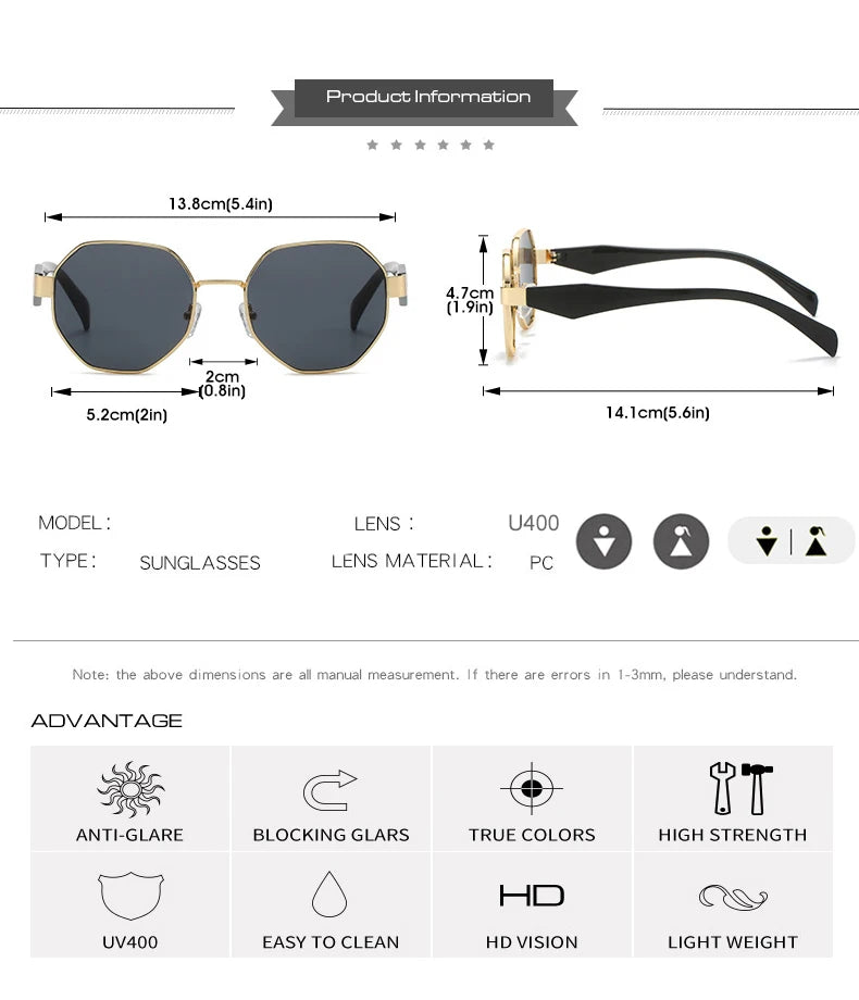 Punk Fashion Square Sunglasses Women Men Trends Metal Shades Black Trending