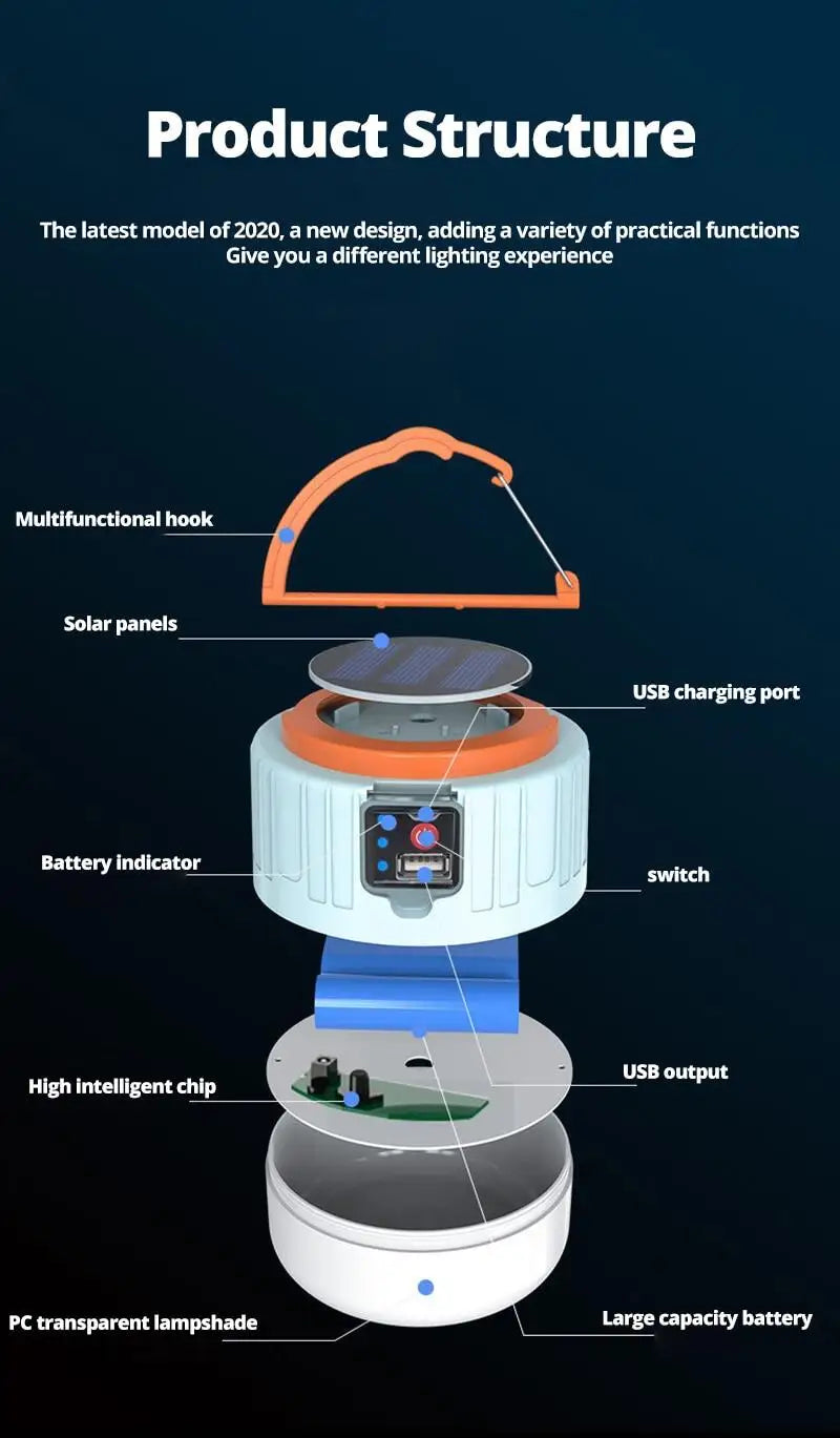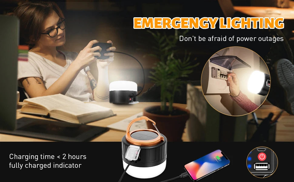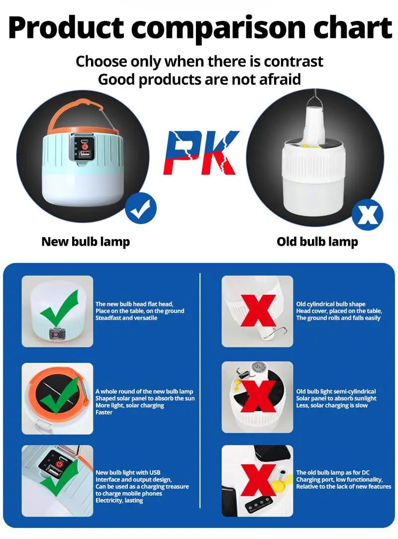 Rechargeable LED Light Camping Light Outdoor Solar Light Bulb 3 Mode Tent Lamp