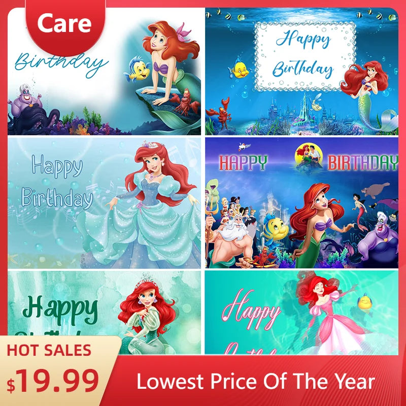 The Little Mermaid Ariel Princess Theme Birthday Party Vinyl Background Baby