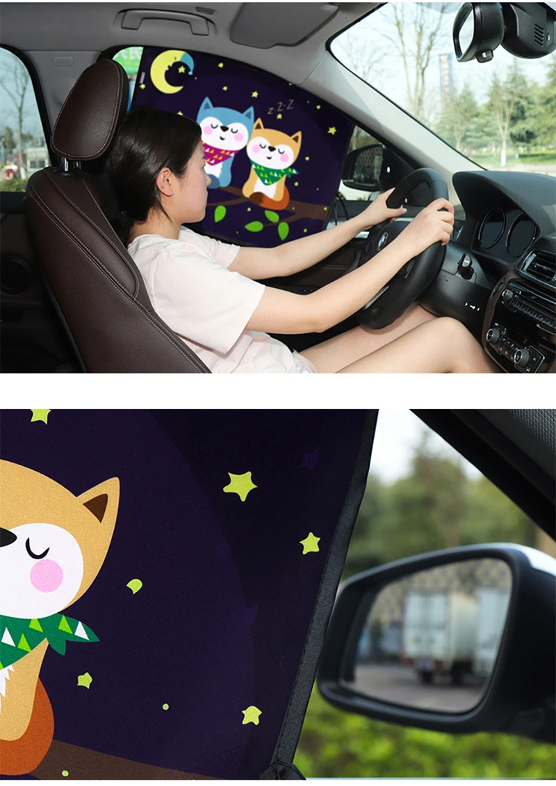 Universal Car Sun Shade Cover UV Protect Curtain Side Window Sunshade Cover For Baby Kids Cute Cartoon Car Accessories Styling