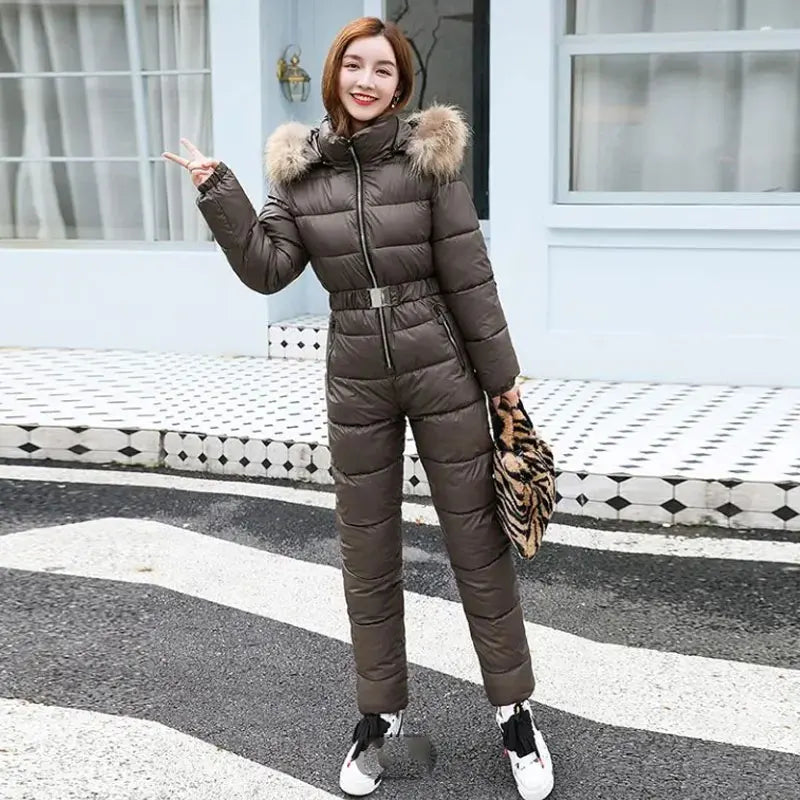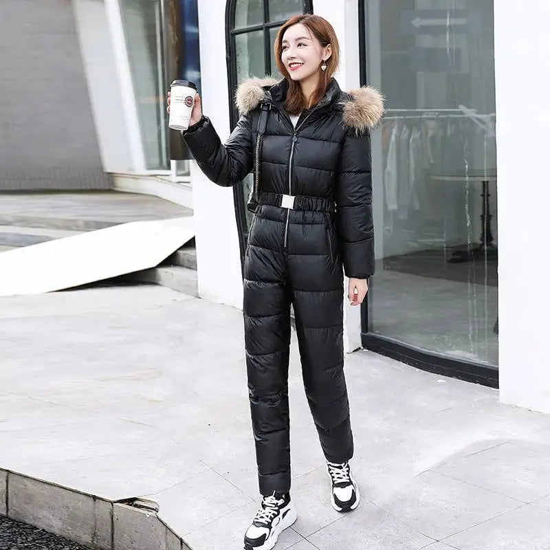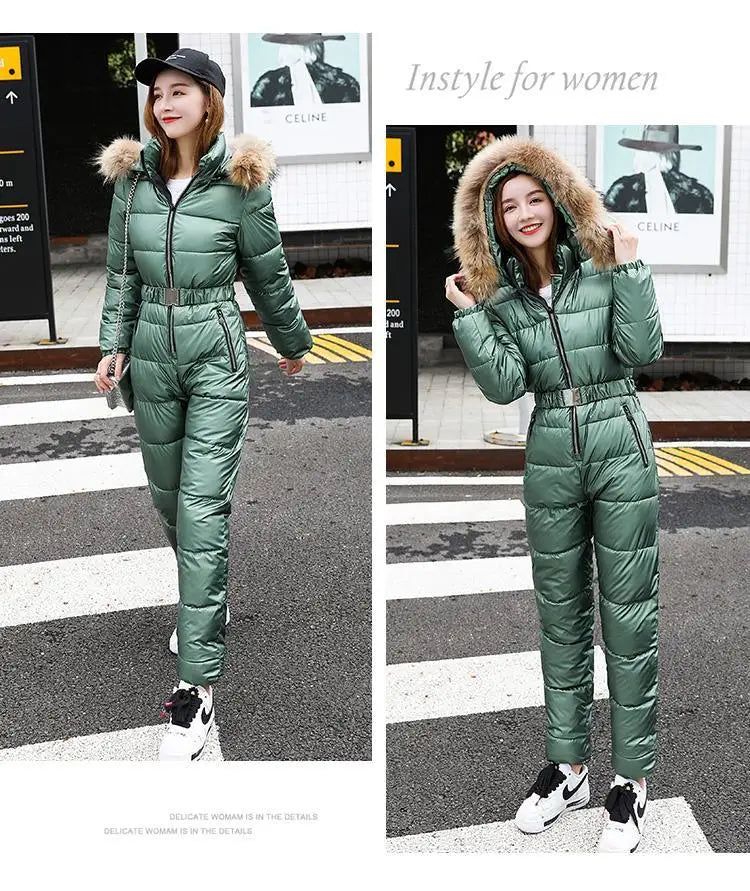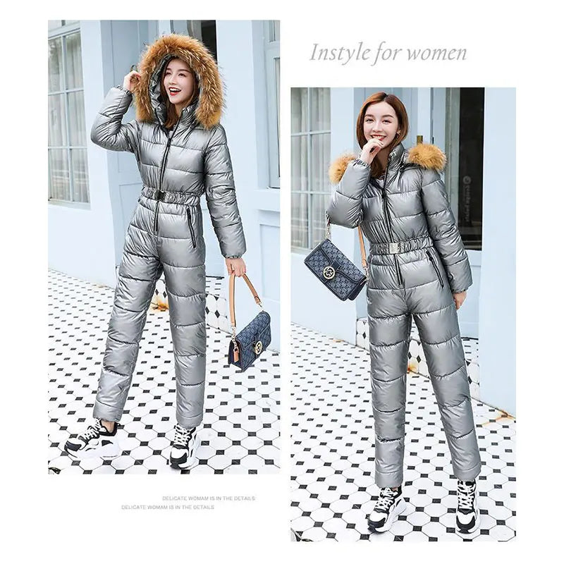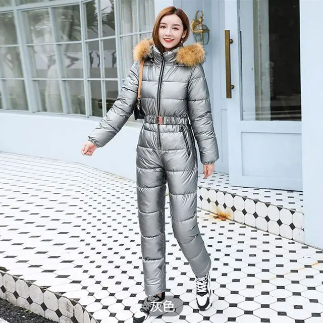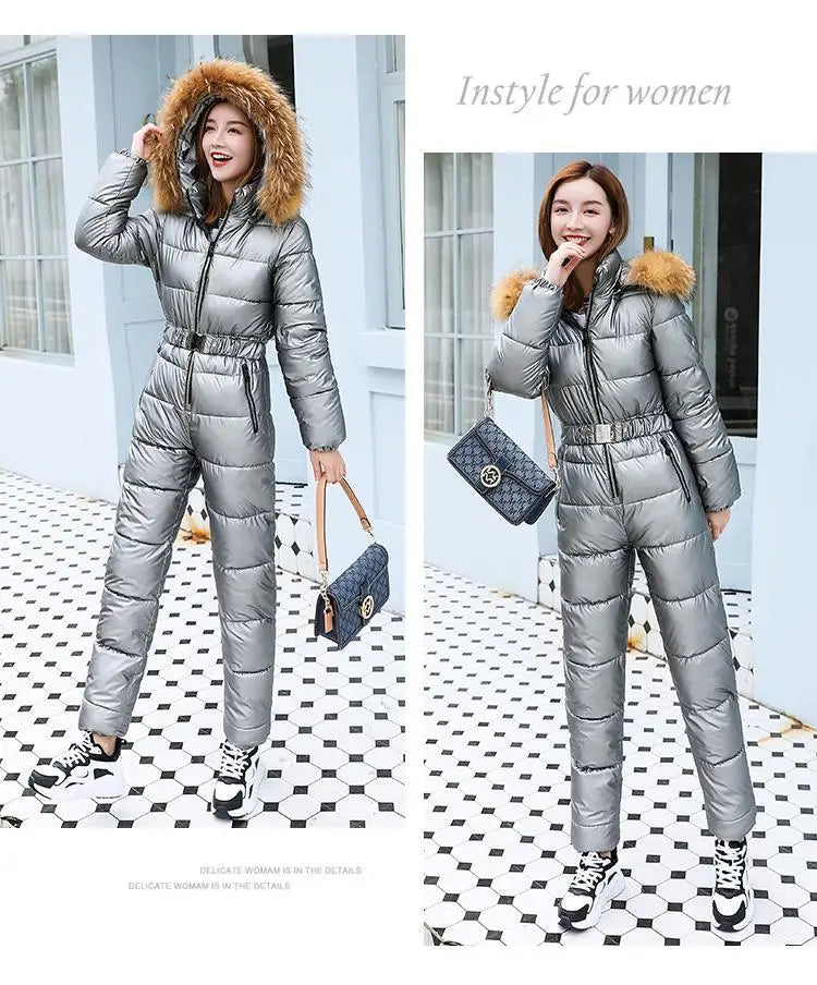 2025 Winter New Women Cotton Jumpsuit Women Thick Warm Slimming Bright Padded Coat And Pants Two-Piece En...